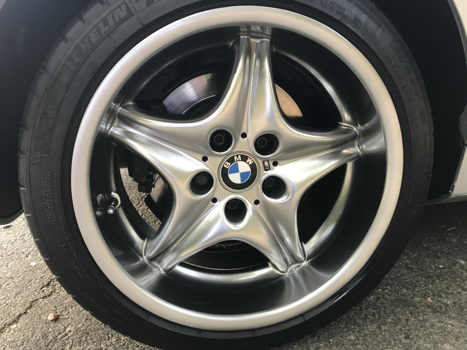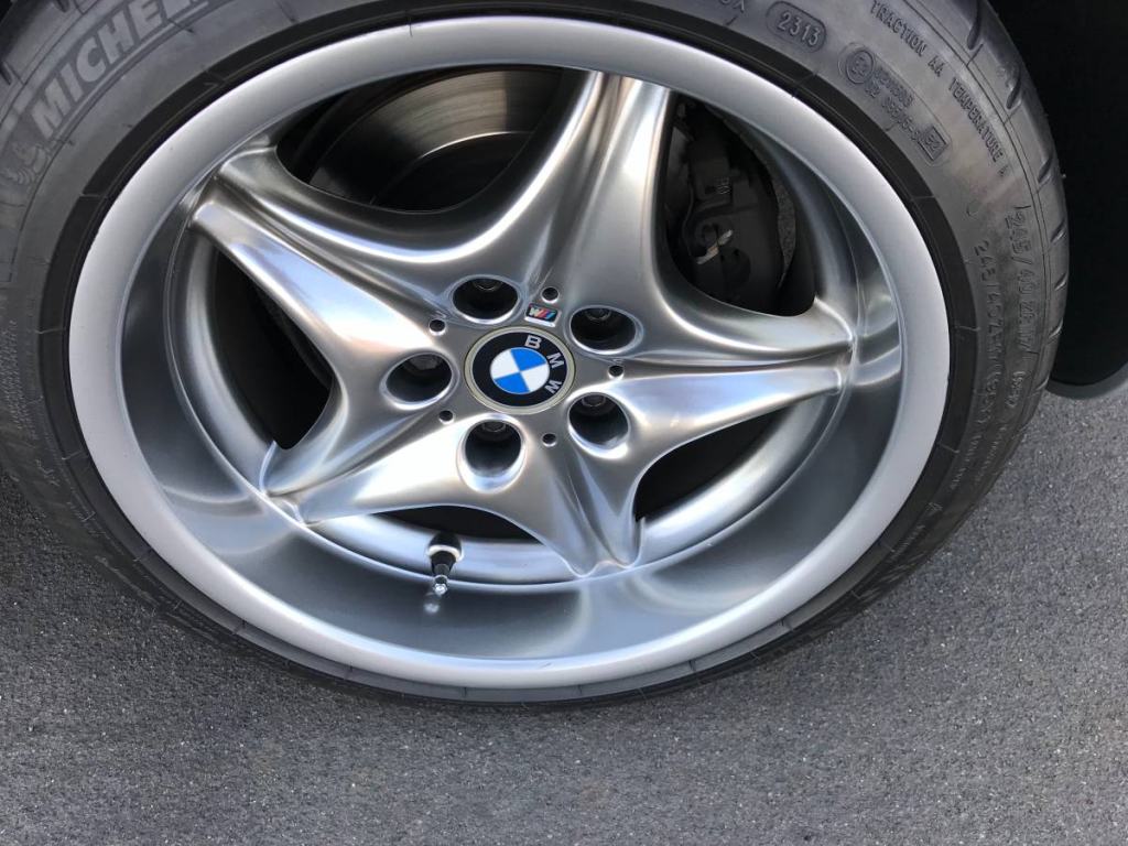 Staggered-width 17″ Style 40 alloys were finished in a satin chrome from the factory. A walk-around video is shown above.