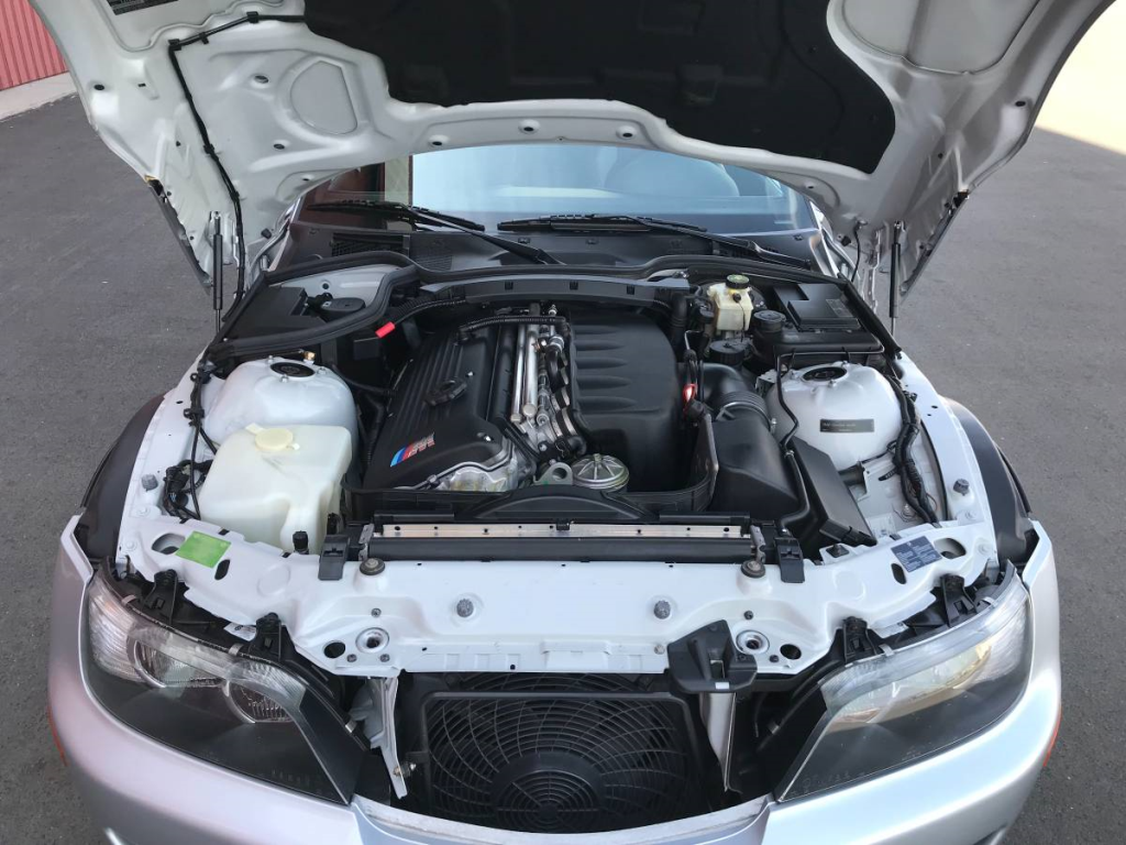 The 3.2-liter S54 inline-six is paired with a ZF 5-speed manual gearbox and described by the seller as unmodified. Less than 65 miles have been driven since the last service, which occurred in September 2017. Work included an oil change and brake fluid flush. Videos of a start-up and the engine idling have been provided.