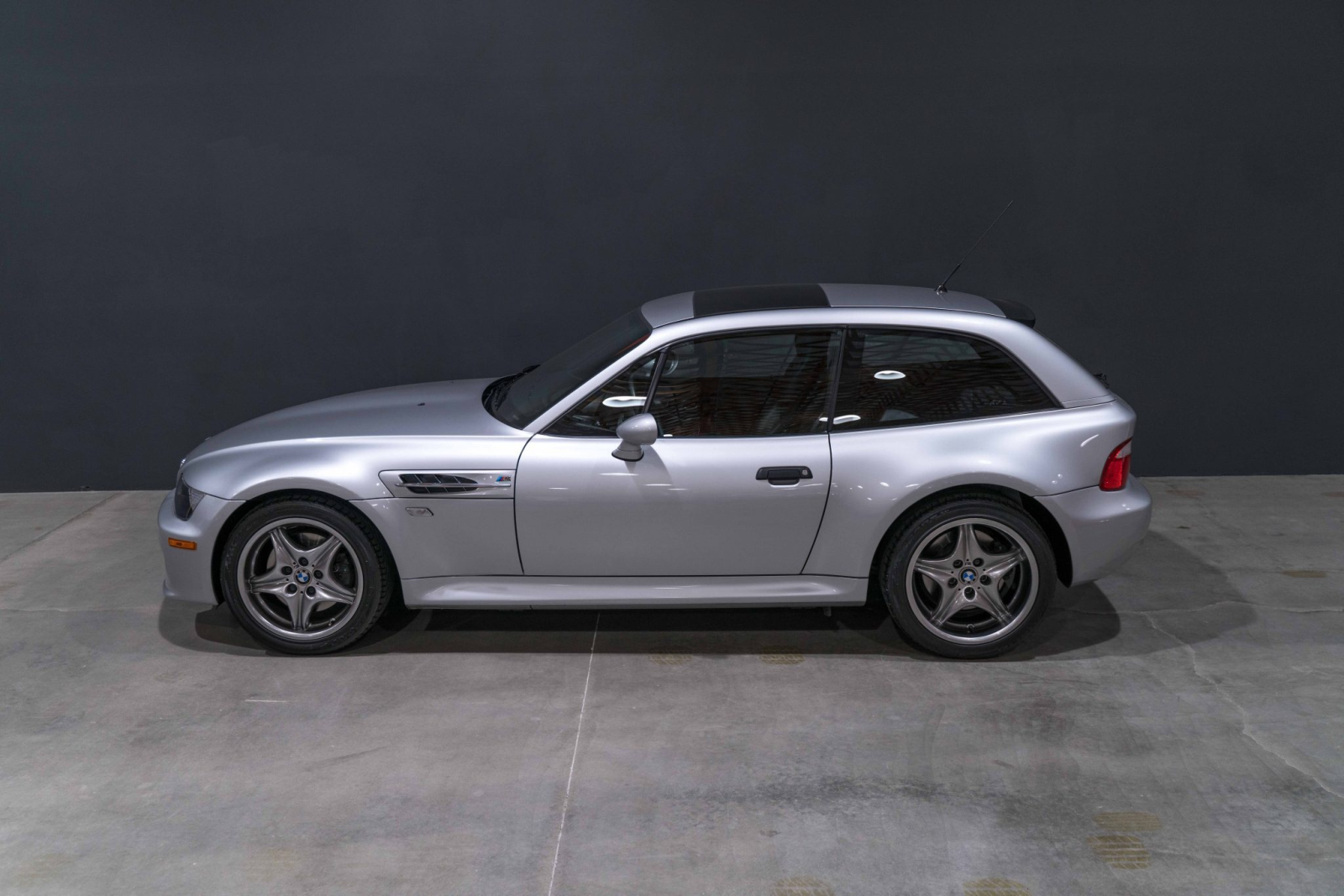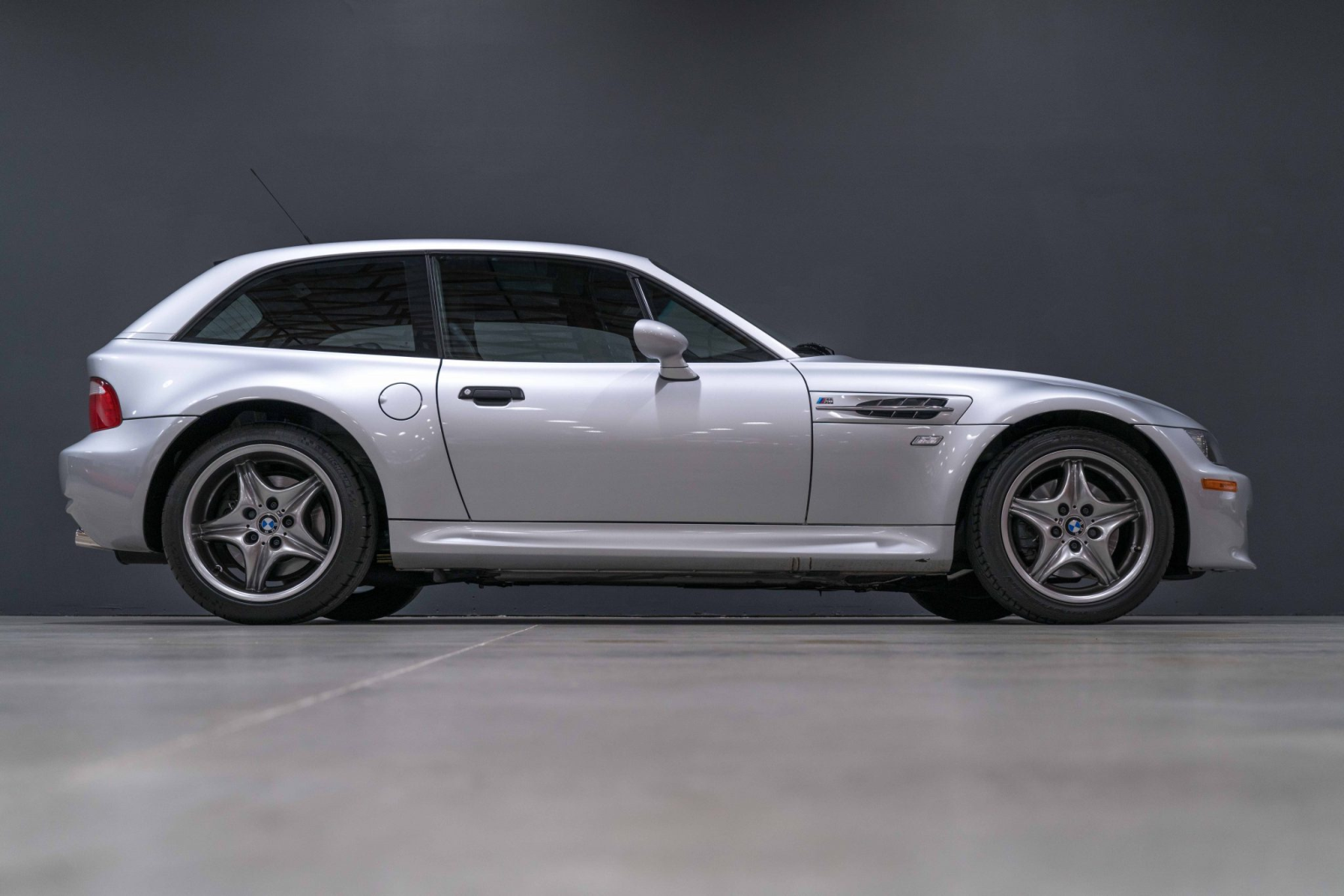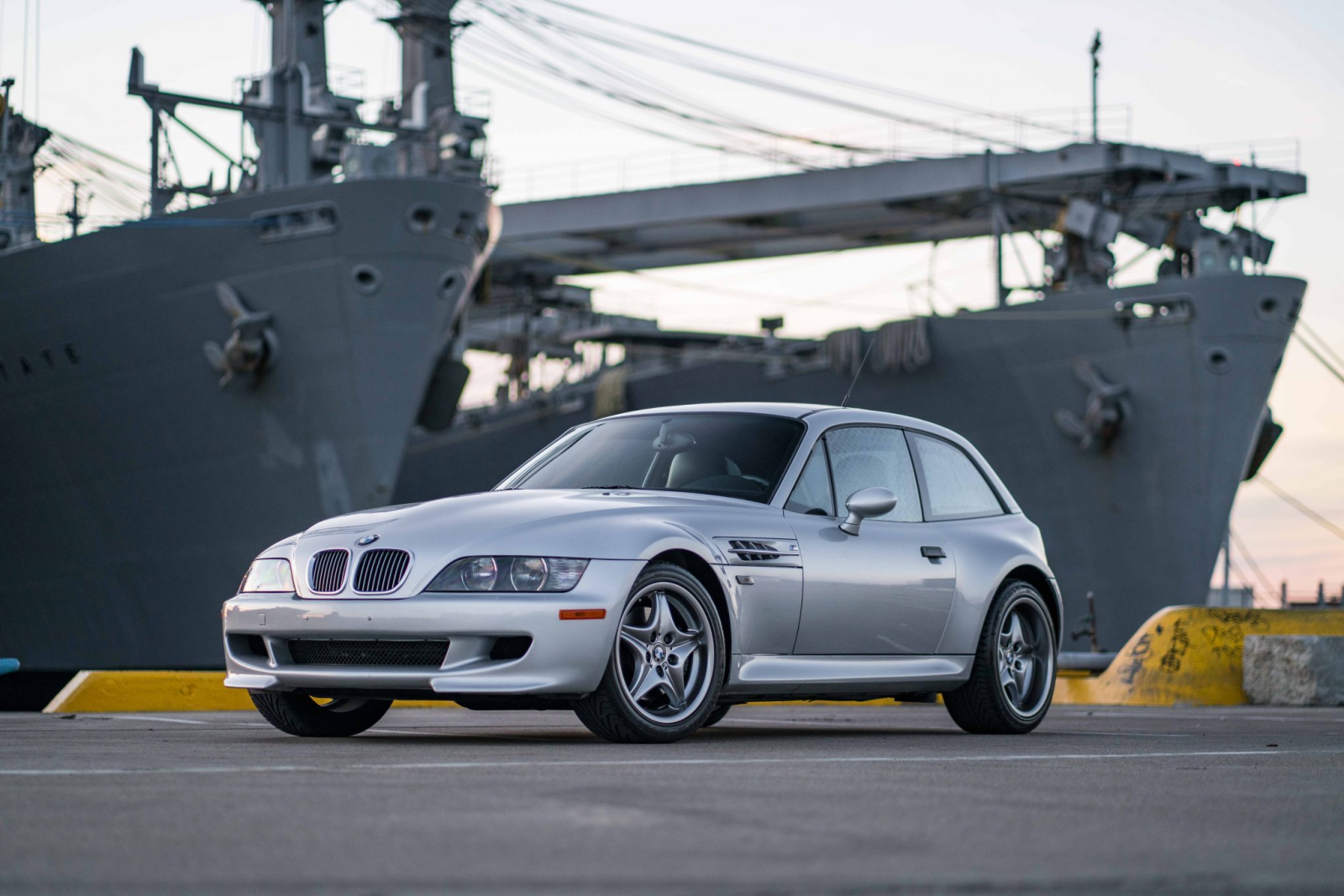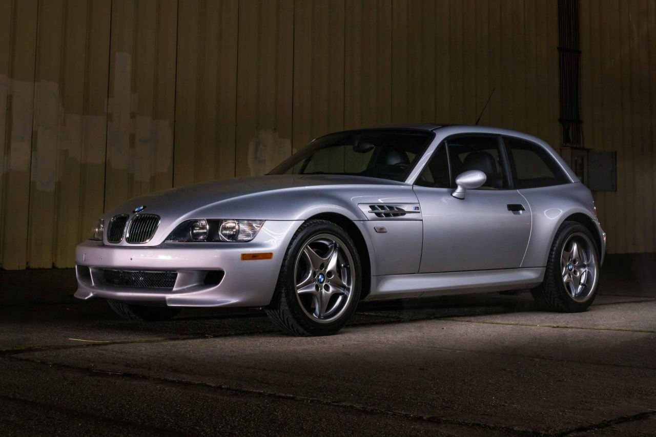 This 2002 BMW M Coupe was acquired new by the seller from Allison BMW of Mountain View, California, and has traveled just 16k miles. The car is finished in Titanium Silver Metallic over black leather and powered by a 3.2-liter S54 inline-six paired with a five-speed manual transmission and a limited-slip differential. Equipment includes a sunroof, staggered-width 17″ Style 40 wheels, cruise control, heated seats, a Harman Kardon audio system, and a CD player. This M Coupe is offered on behalf of the seller with factory literature, a window sticker, accessories, a clean Carfax report, and a clean California title.
