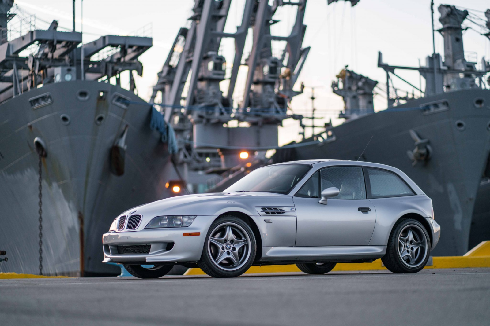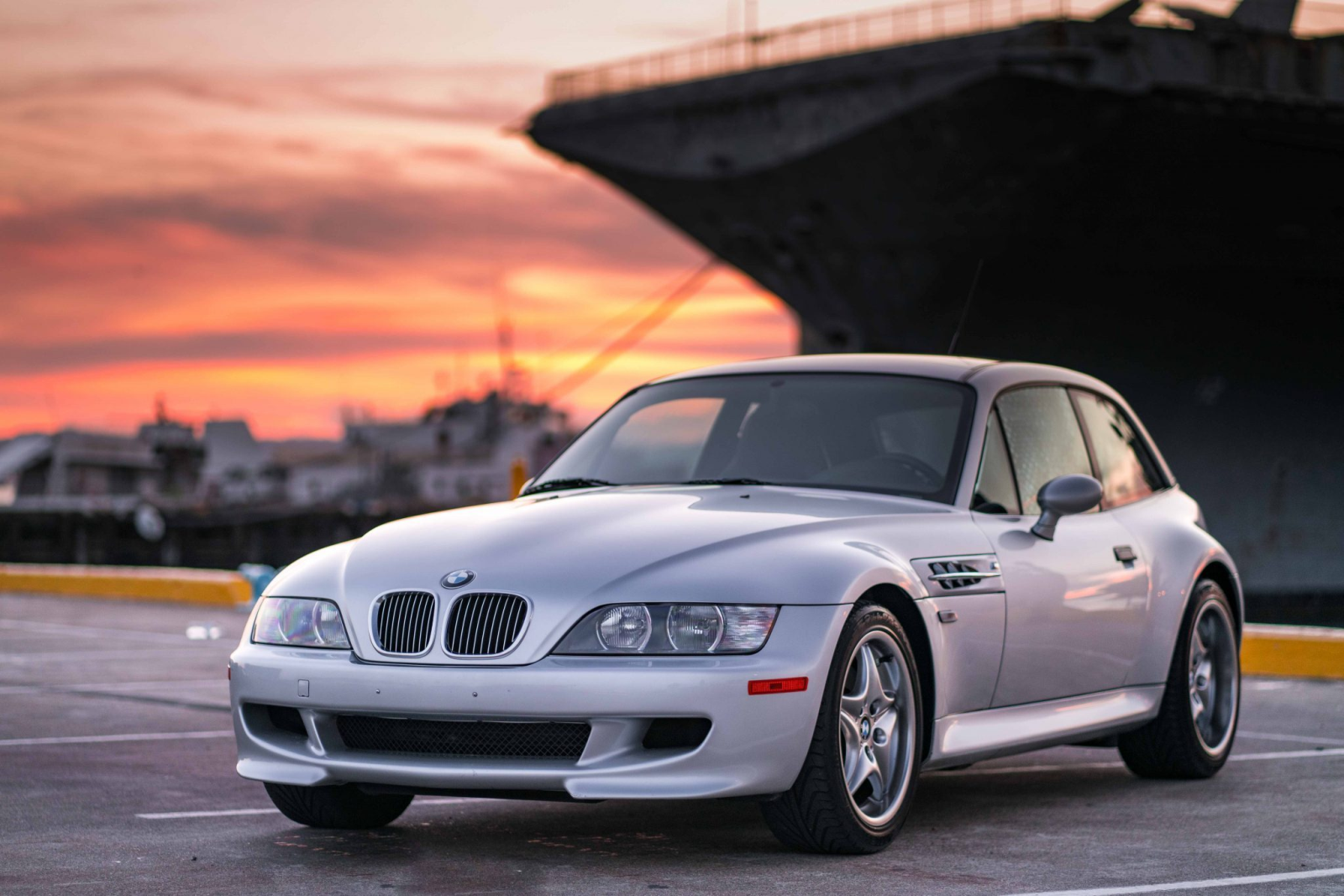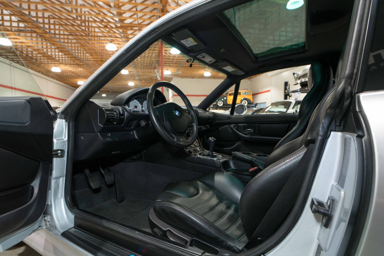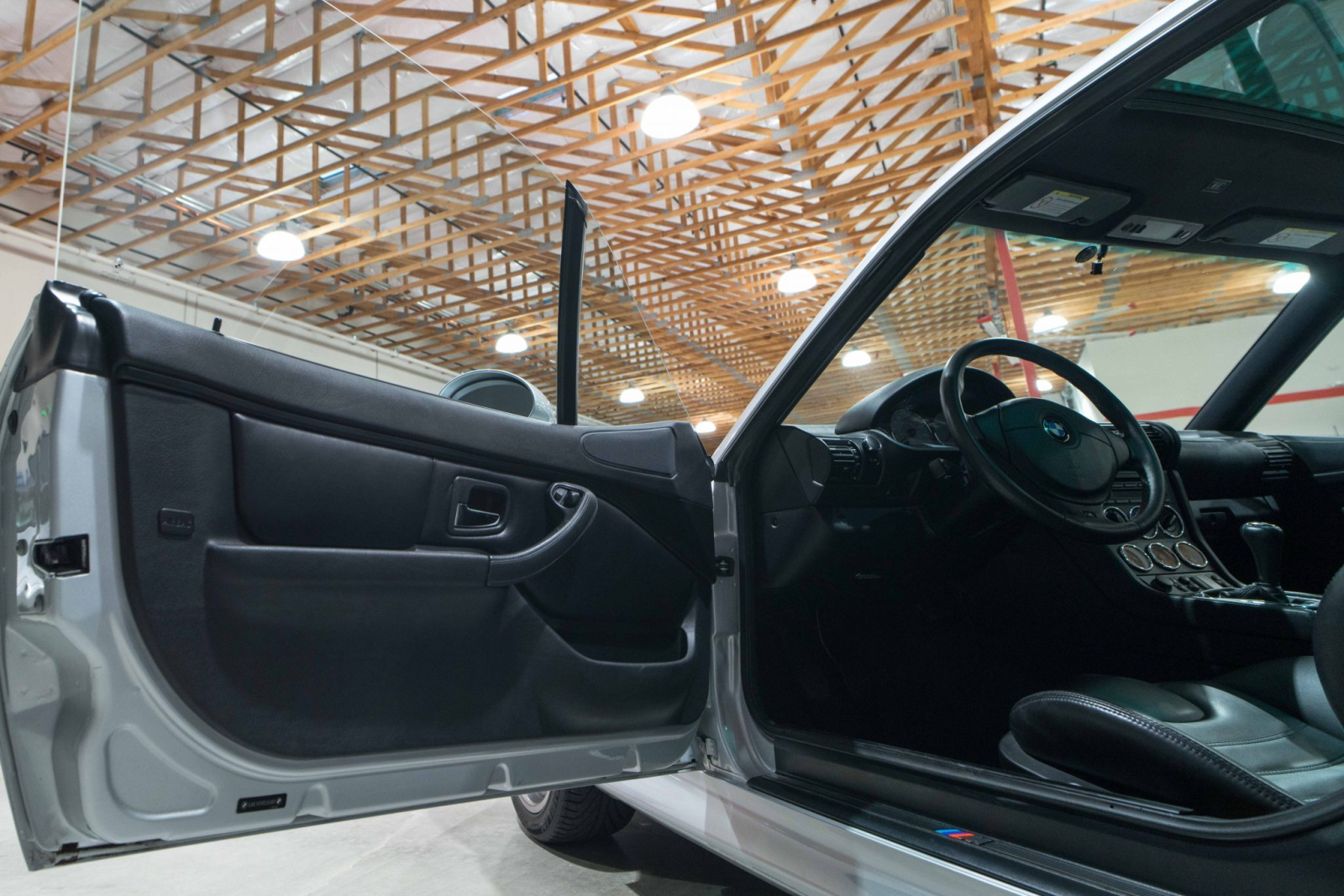 This 2002 BMW M Coupe was acquired new by the seller from Allison BMW of Mountain View, California, and has traveled just 16k miles. The car is finished in Titanium Silver Metallic over black leather and powered by a 3.2-liter S54 inline-six paired with a five-speed manual transmission and a limited-slip differential. Equipment includes a sunroof, staggered-width 17″ Style 40 wheels, cruise control, heated seats, a Harman Kardon audio system, and a CD player. This M Coupe is offered on behalf of the seller with factory literature, a window sticker, accessories, a clean Carfax report, and a clean California title.