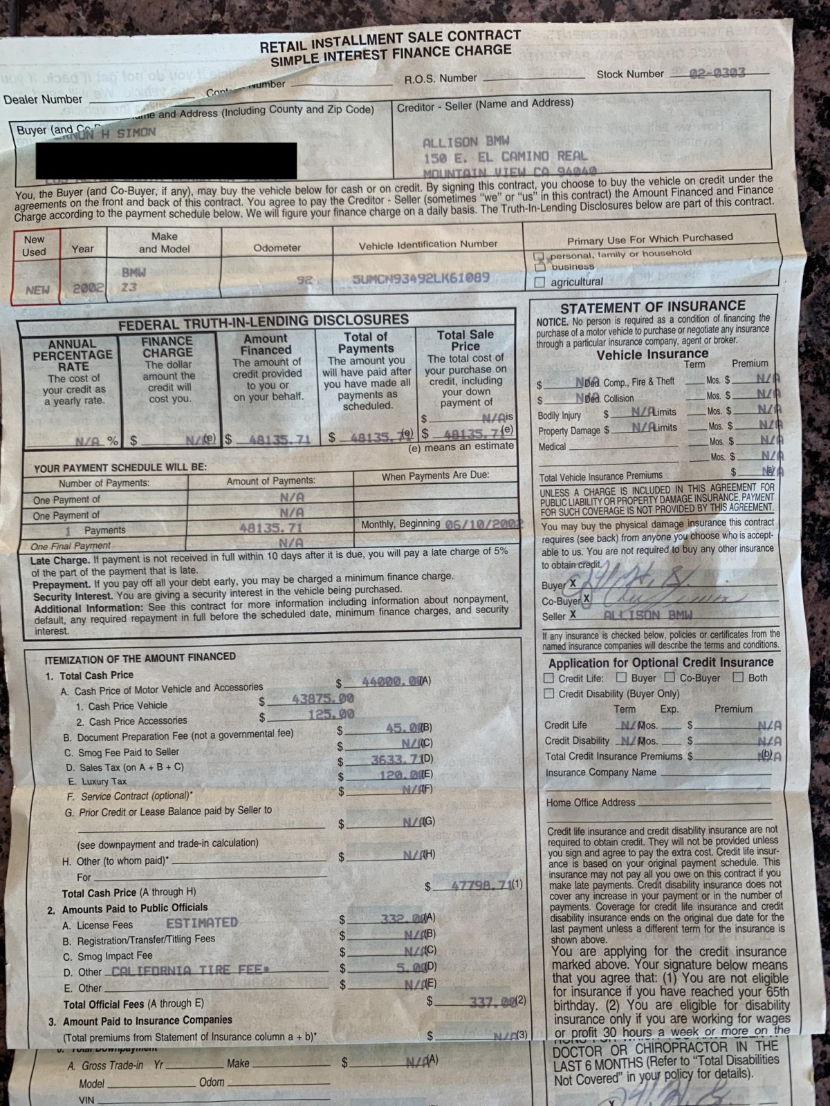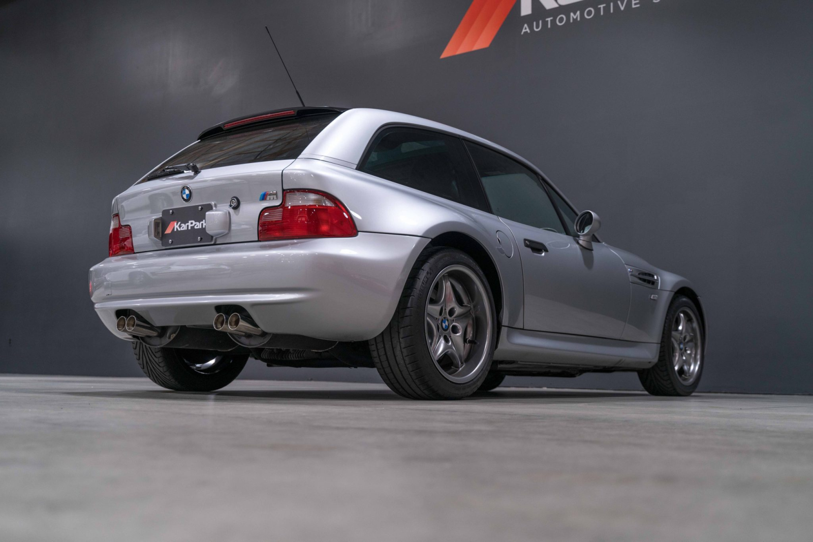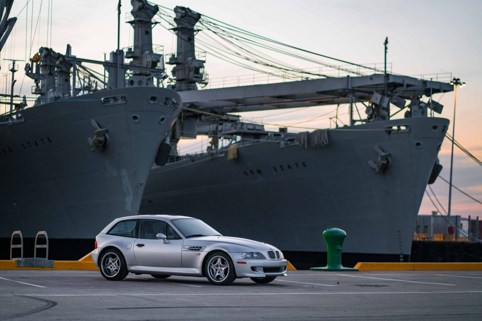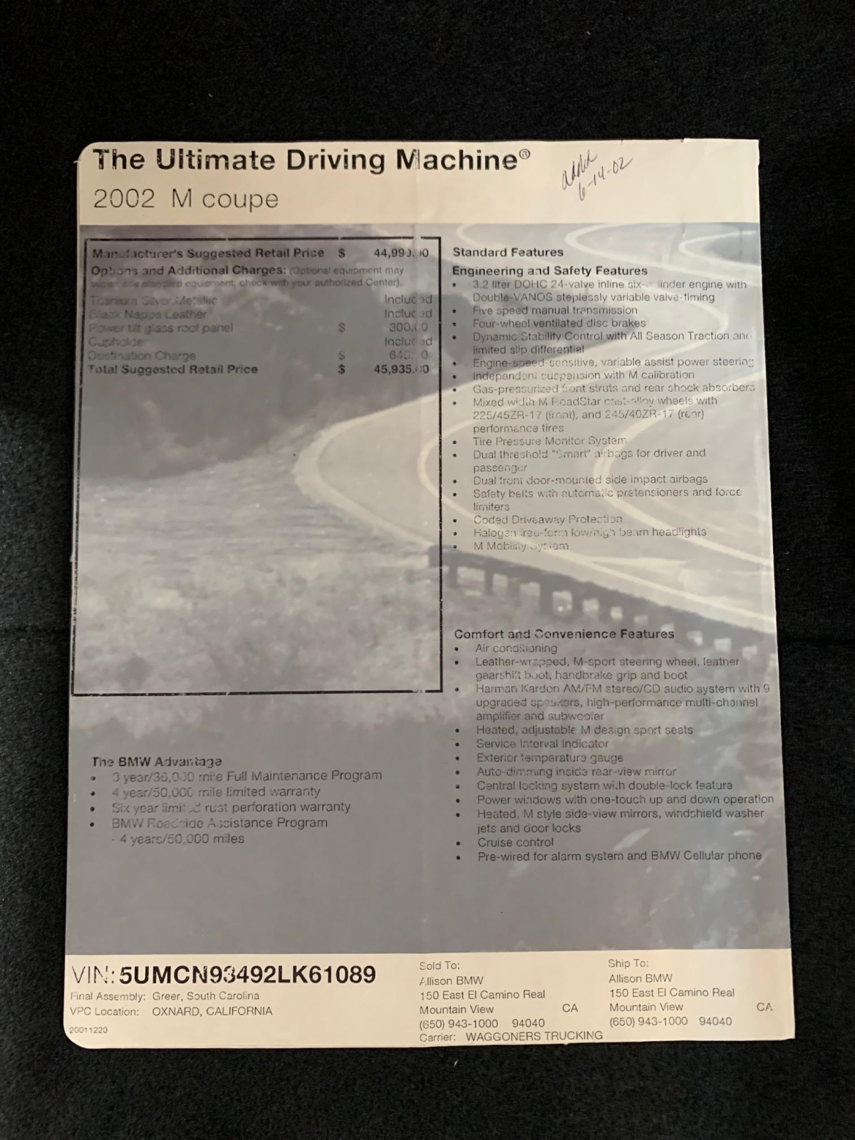This 2002 BMW M Coupe was acquired new by the seller from Allison BMW of Mountain View, California, and has traveled just 16k miles. The car is finished in Titanium Silver Metallic over black leather and powered by a 3.2-liter S54 inline-six paired with a five-speed manual transmission and a limited-slip differential. Equipment includes a sunroof, staggered-width 17″ Style 40 wheels, cruise control, heated seats, a Harman Kardon audio system, and a CD player. This M Coupe is offered on behalf of the seller with factory literature, a window sticker, accessories, a clean Carfax report, and a clean California title.