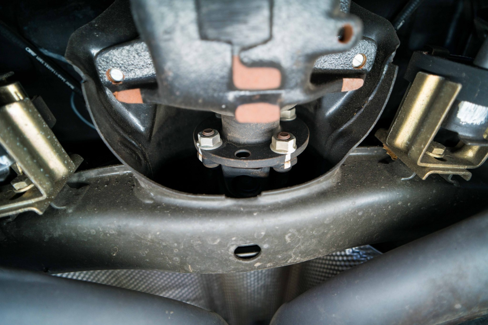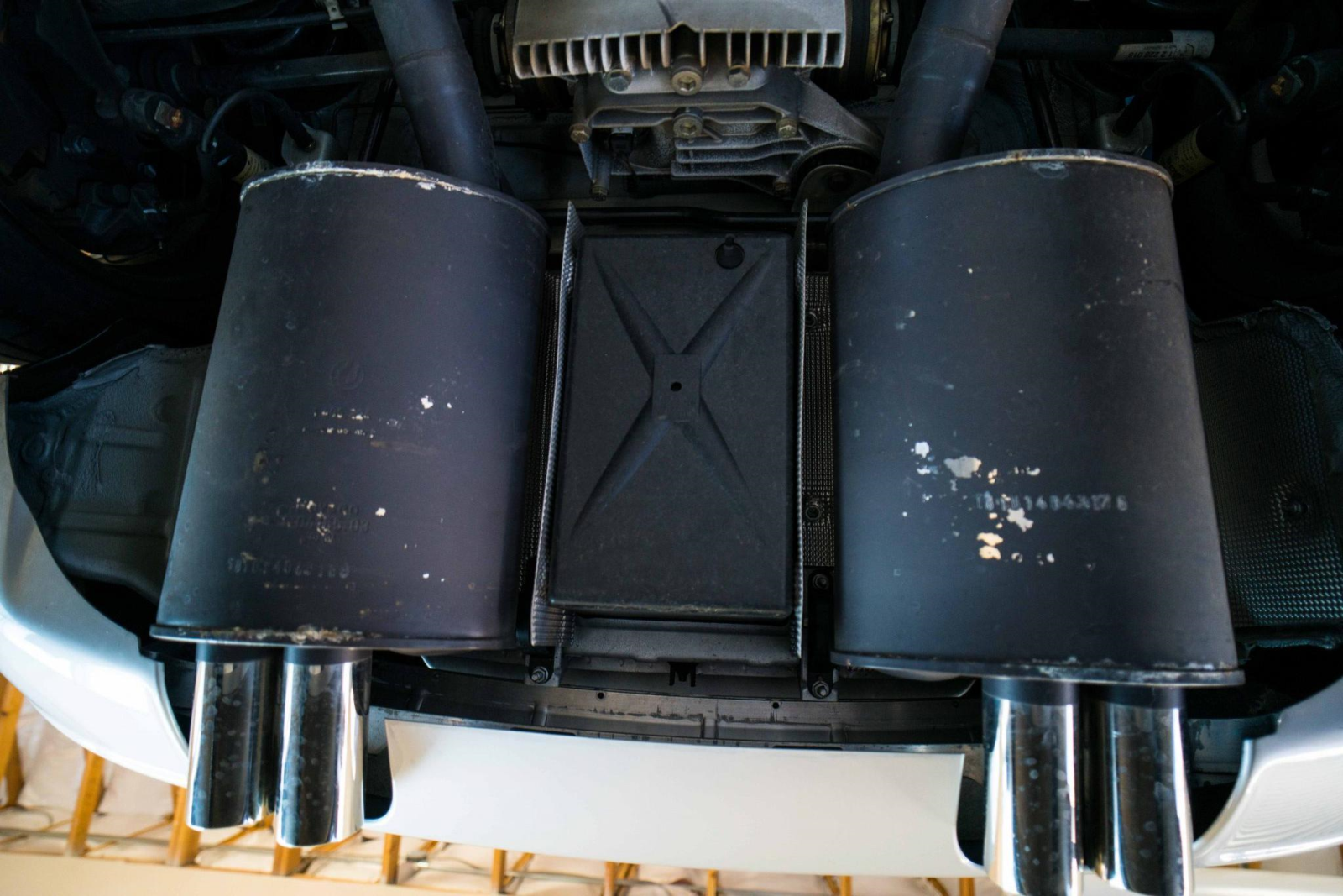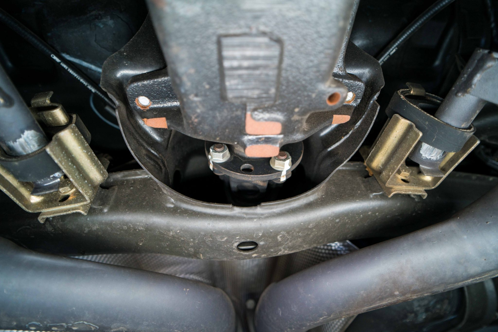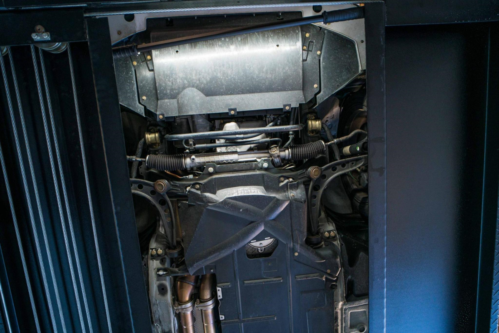 Power is sent to the rear wheels through a five-speed manual transmission and a limited-slip differential. Additional photos of the underside, suspension, and exhaust are viewable in the gallery.