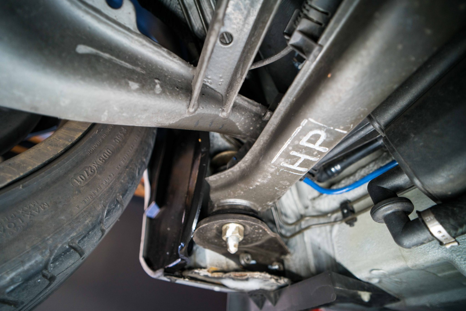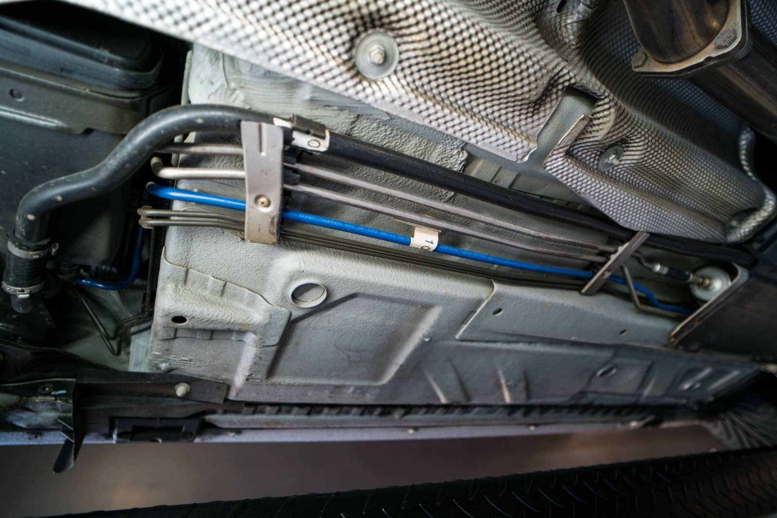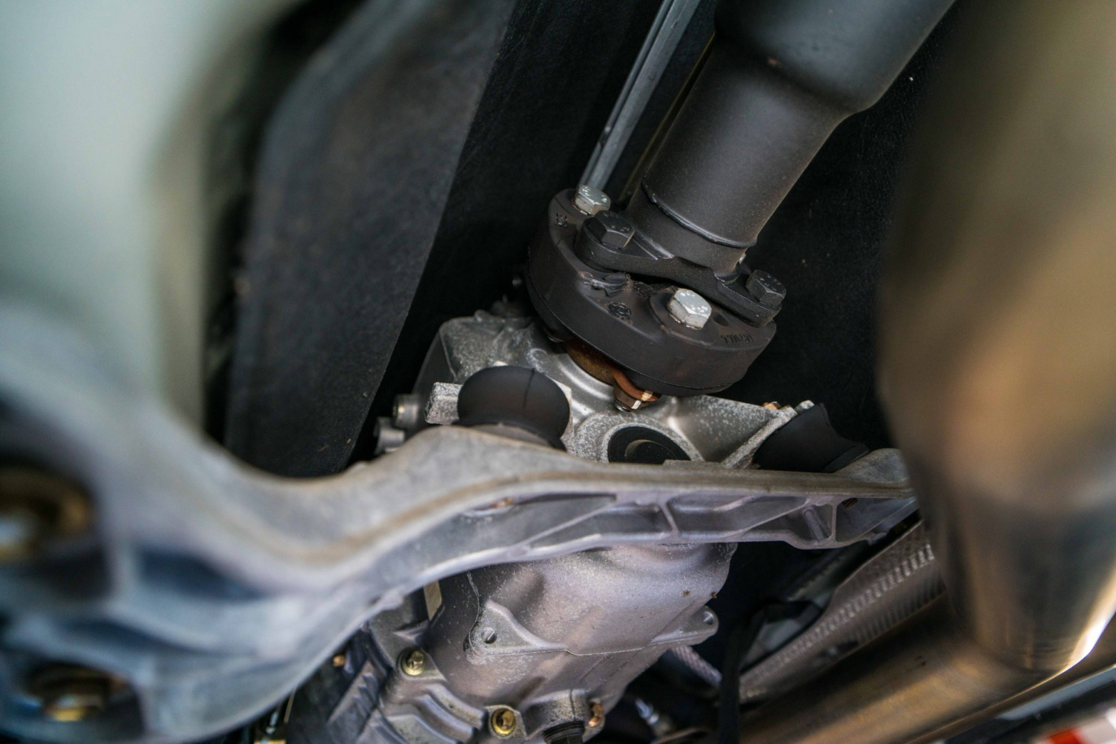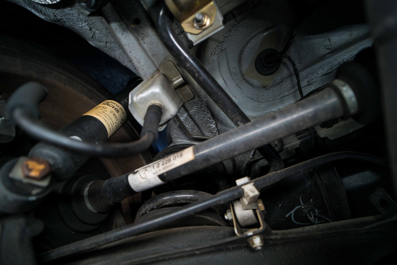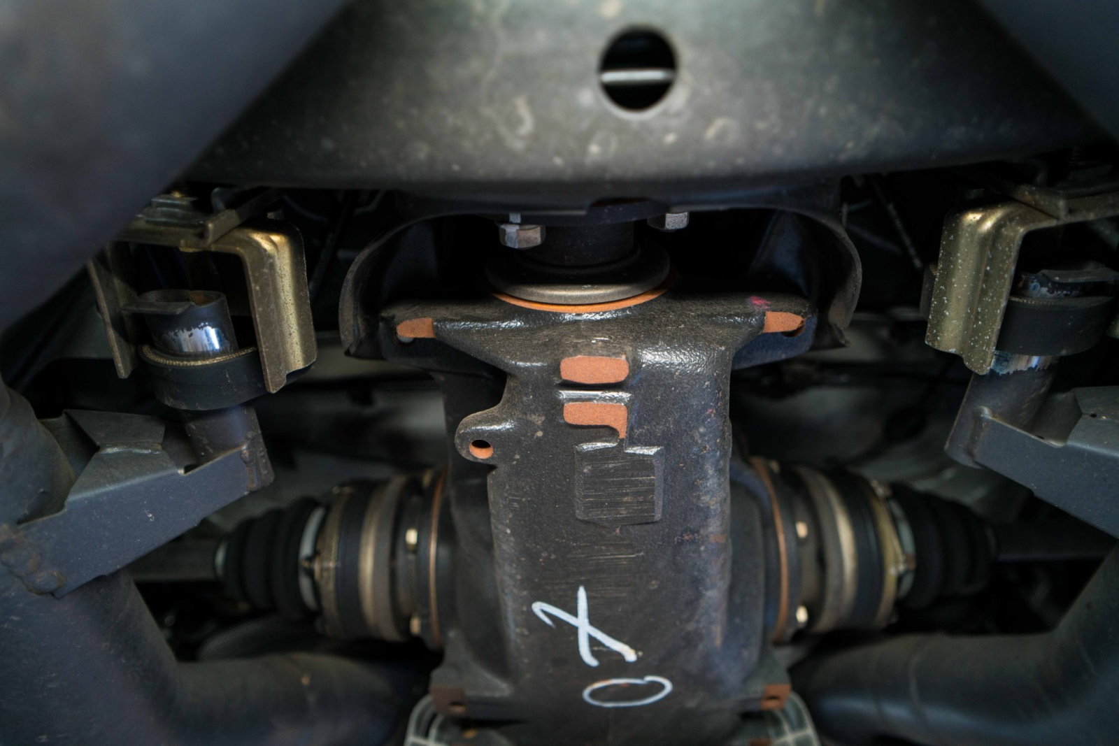 Power is sent to the rear wheels through a five-speed manual transmission and a limited-slip differential. Additional photos of the underside, suspension, and exhaust are viewable in the gallery.