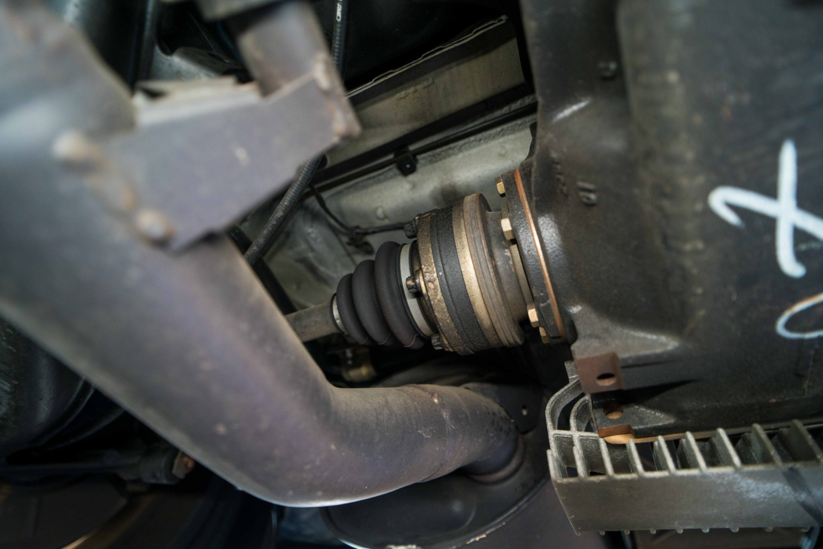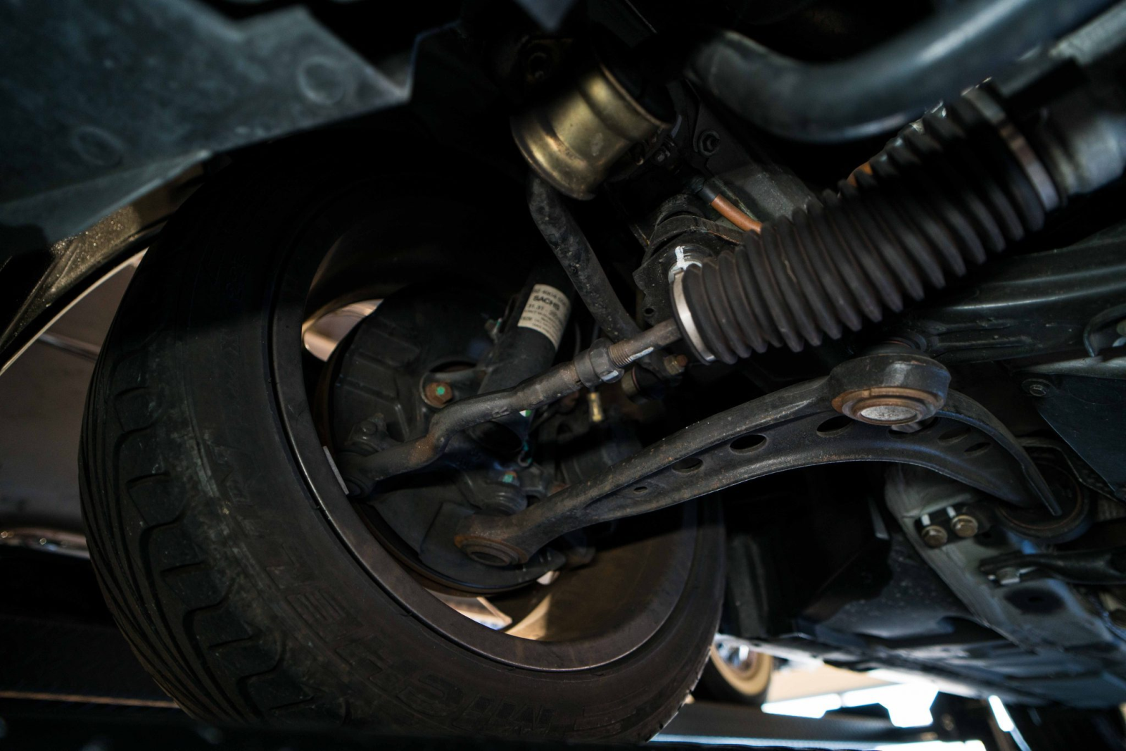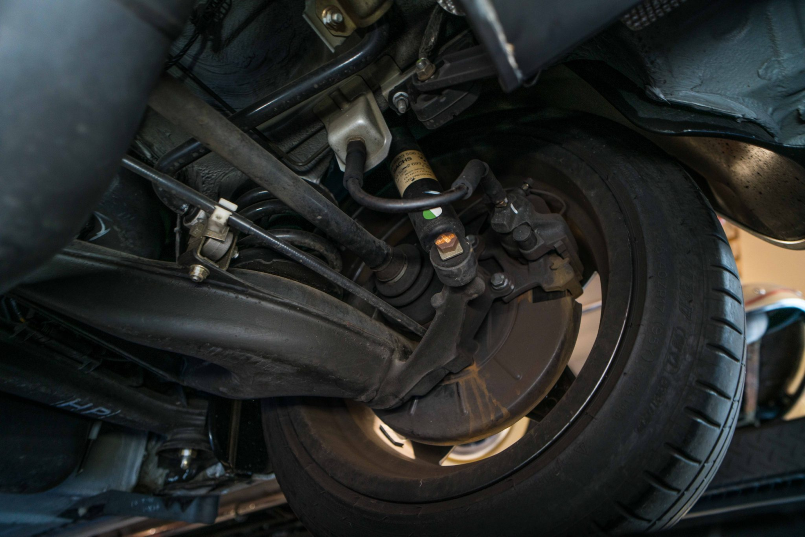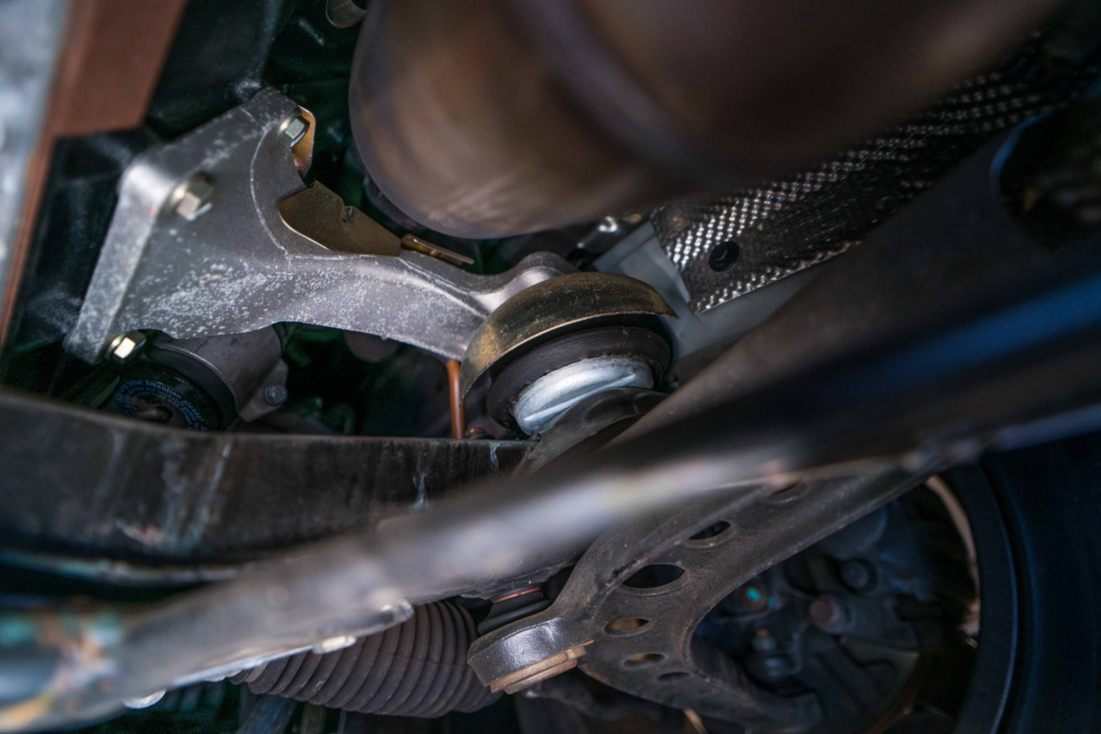 Power is sent to the rear wheels through a five-speed manual transmission and a limited-slip differential. Additional photos of the underside, suspension, and exhaust are viewable in the gallery.