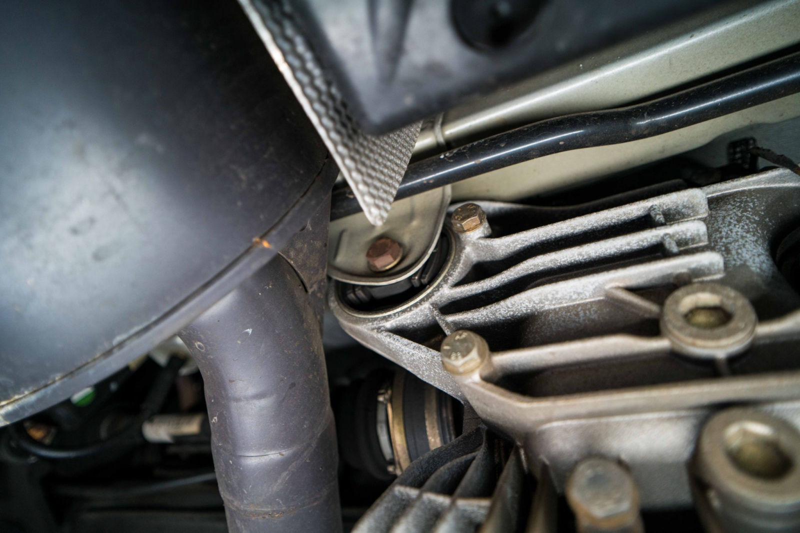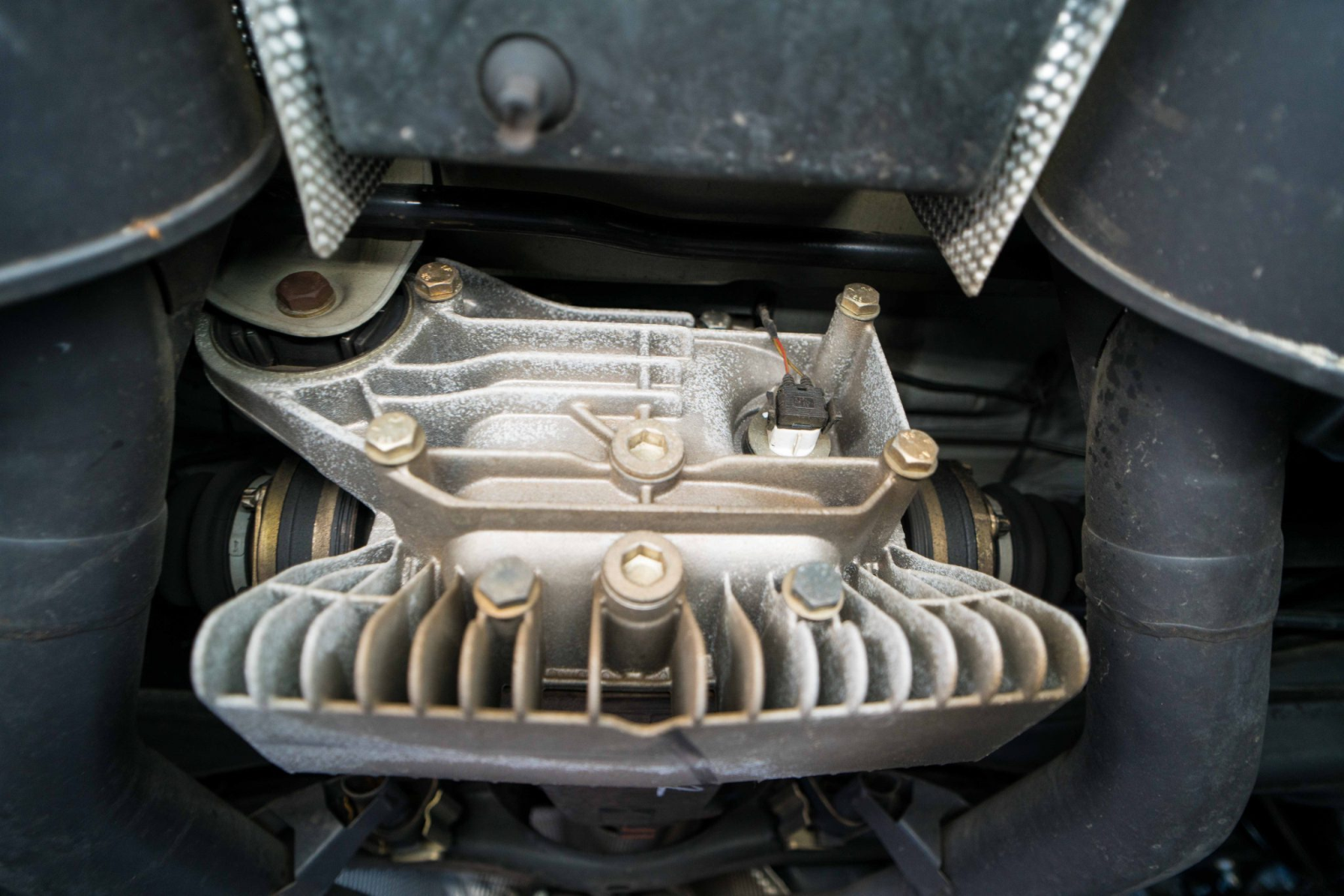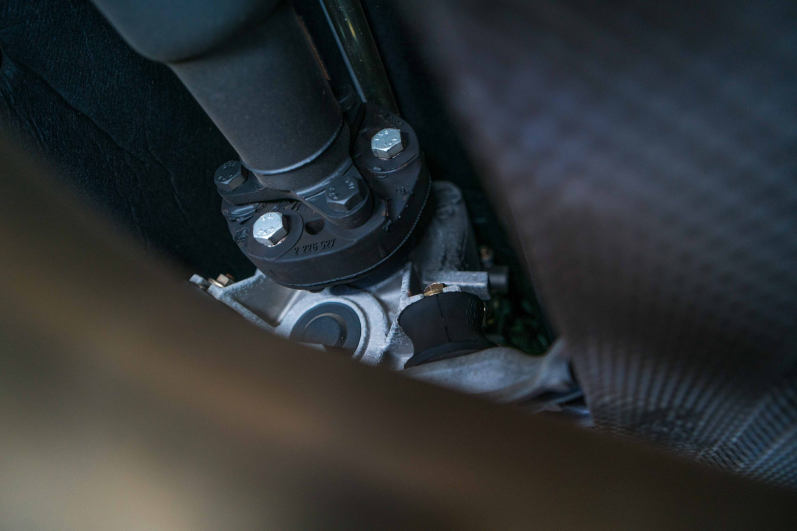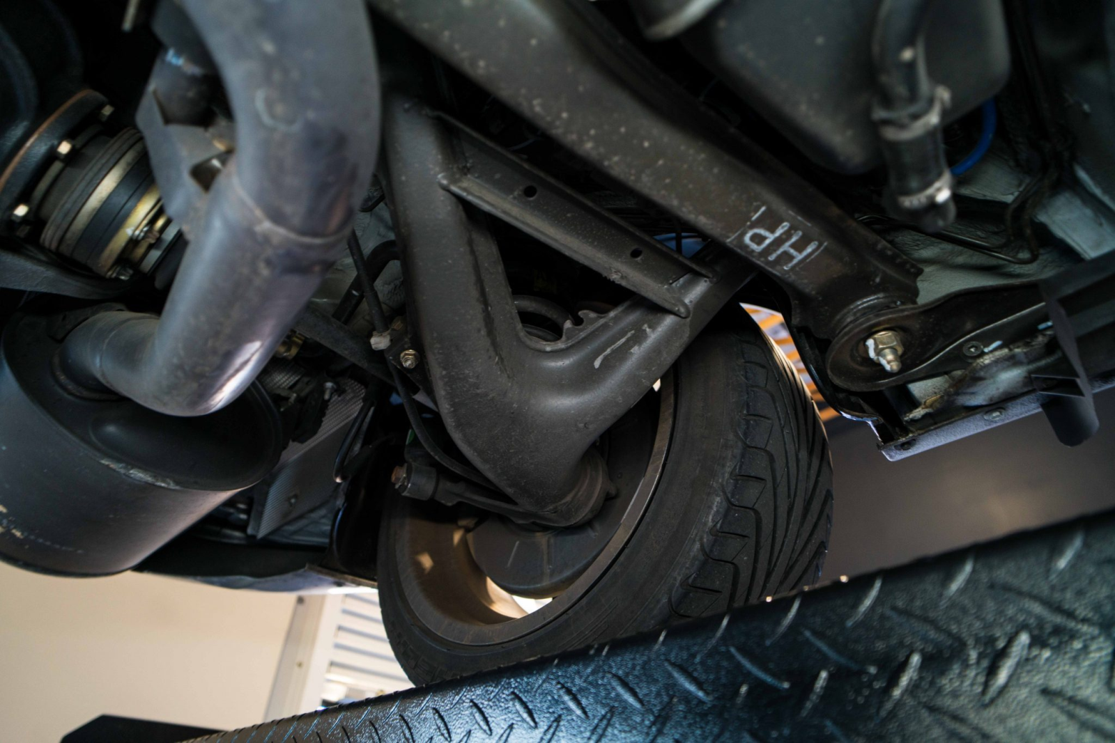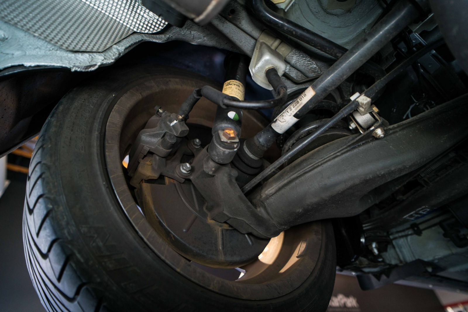 Power is sent to the rear wheels through a five-speed manual transmission and a limited-slip differential. Additional photos of the underside, suspension, and exhaust are viewable in the gallery.