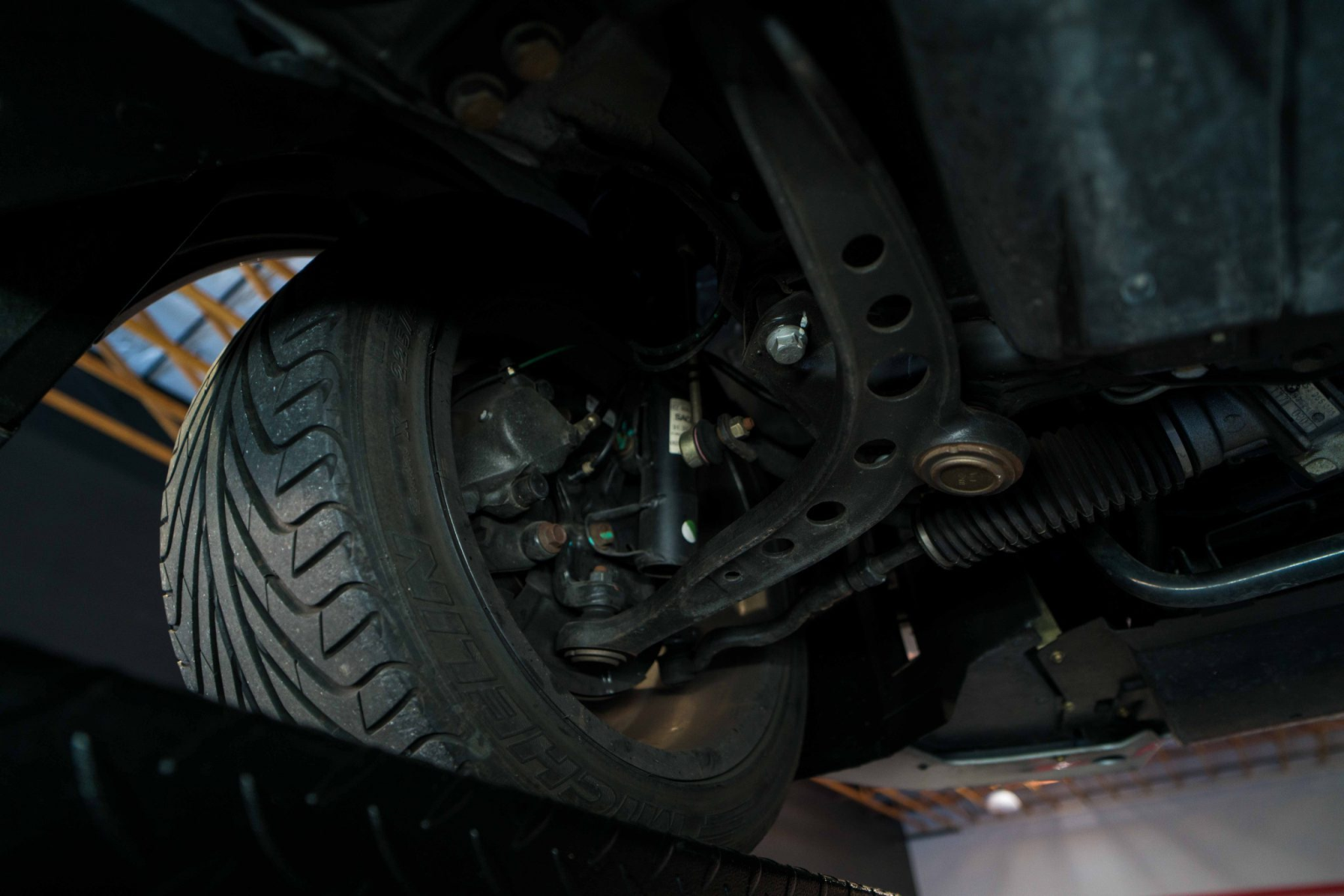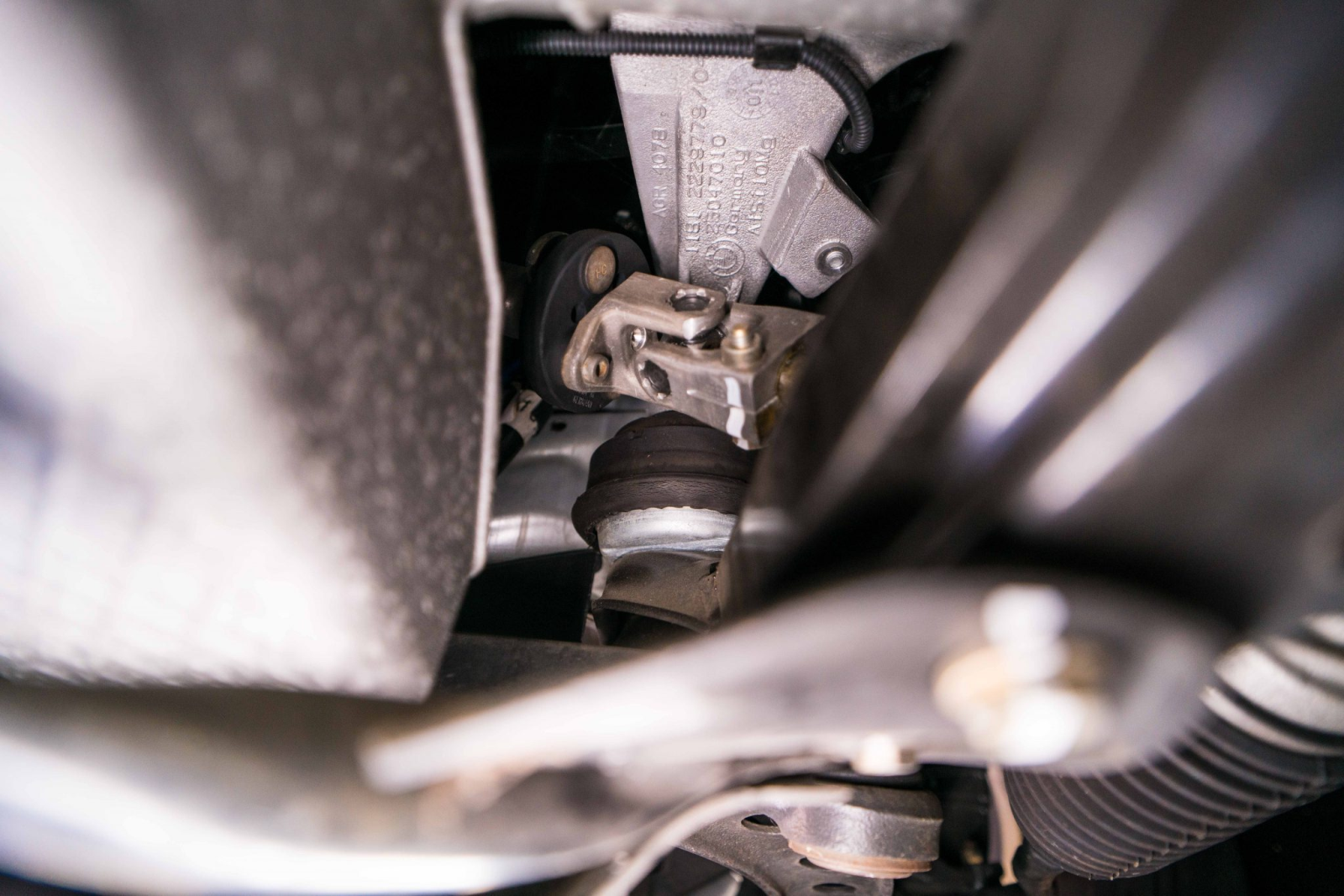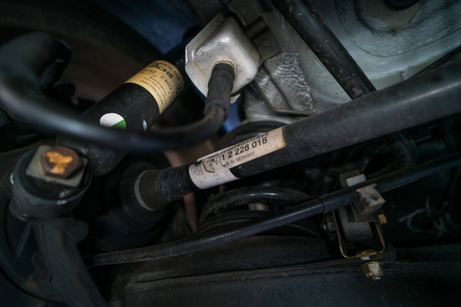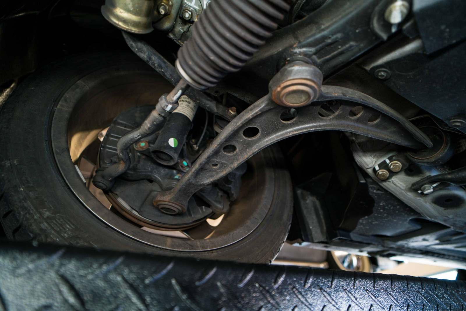 Power is sent to the rear wheels through a five-speed manual transmission and a limited-slip differential. Additional photos of the underside, suspension, and exhaust are viewable in the gallery.