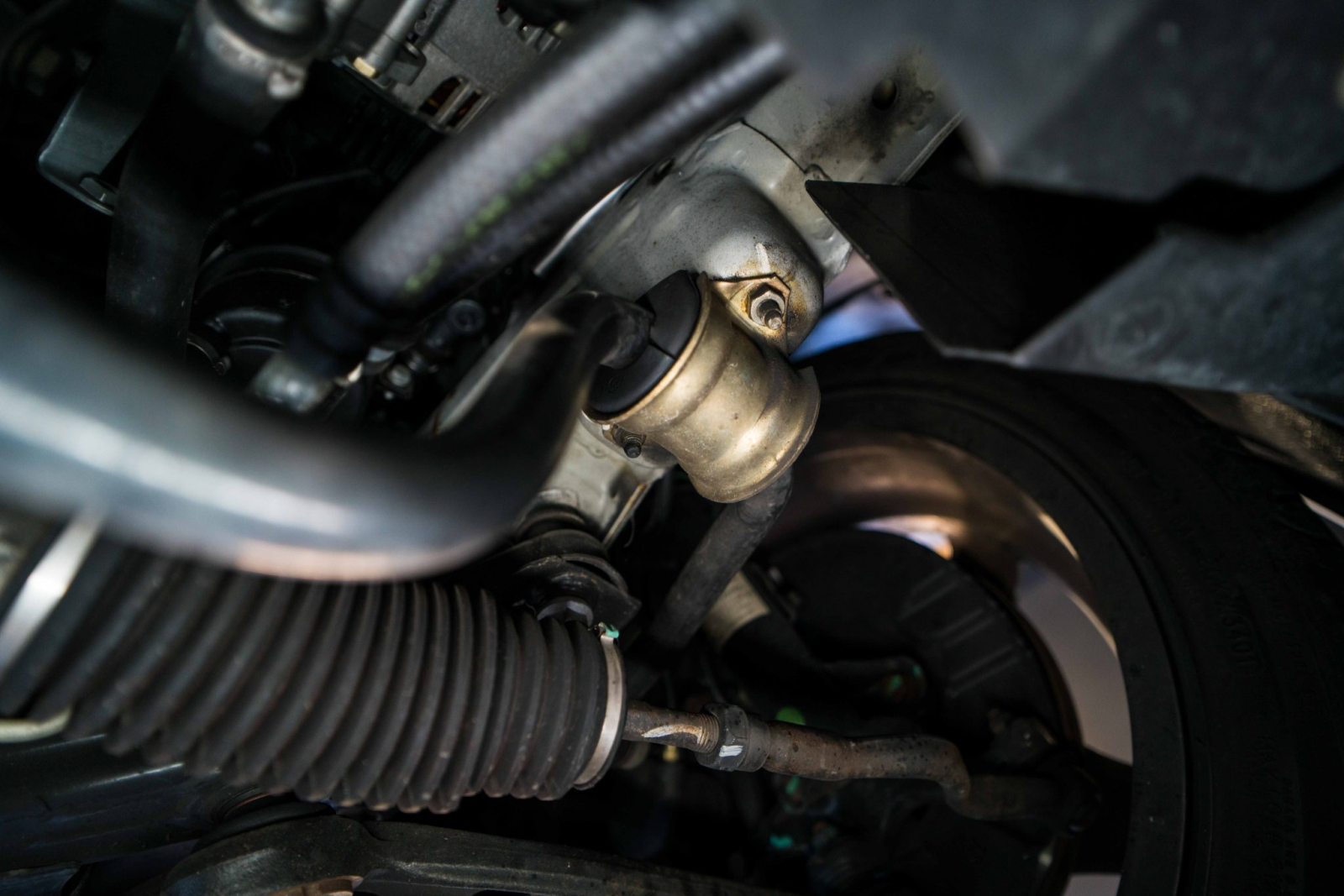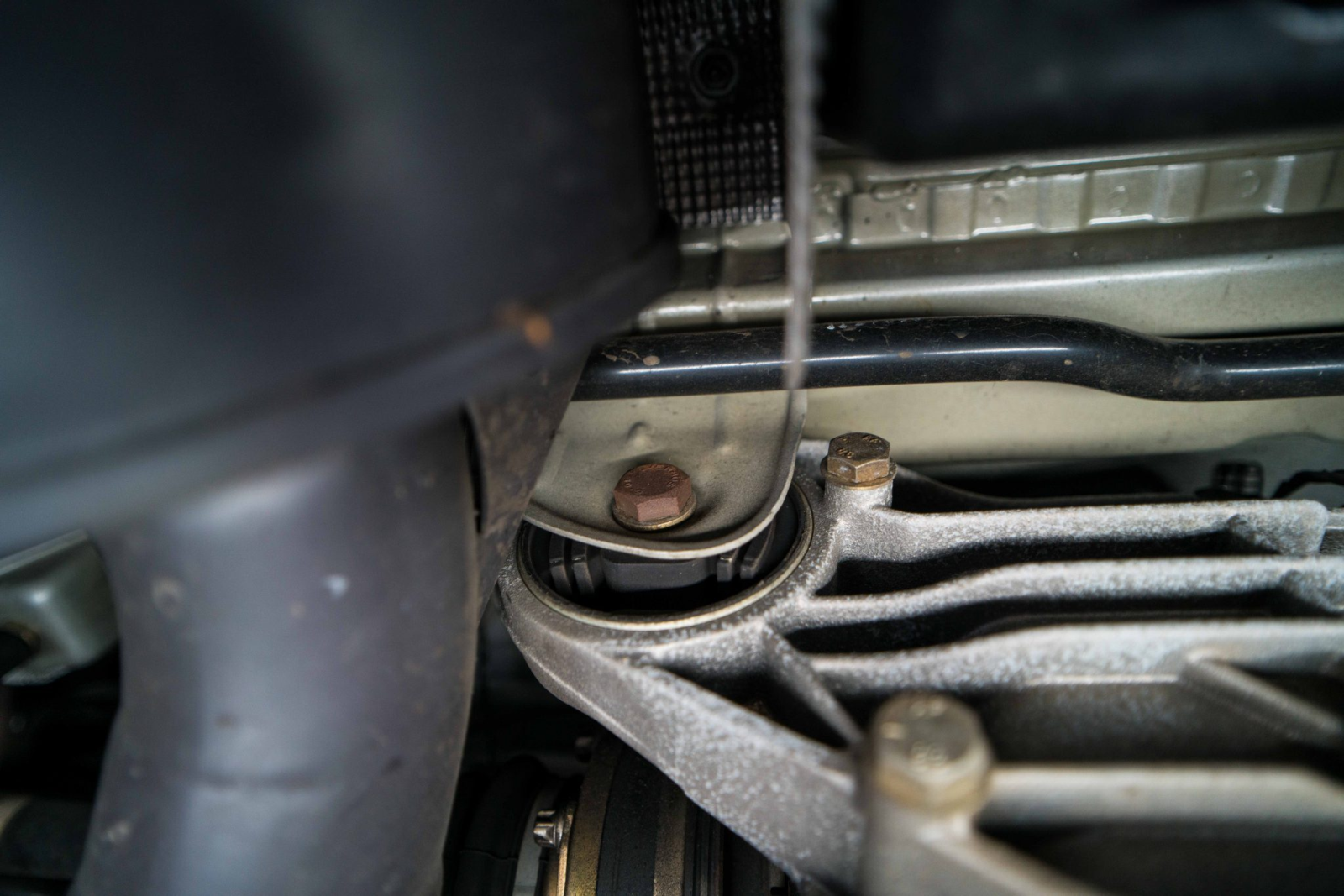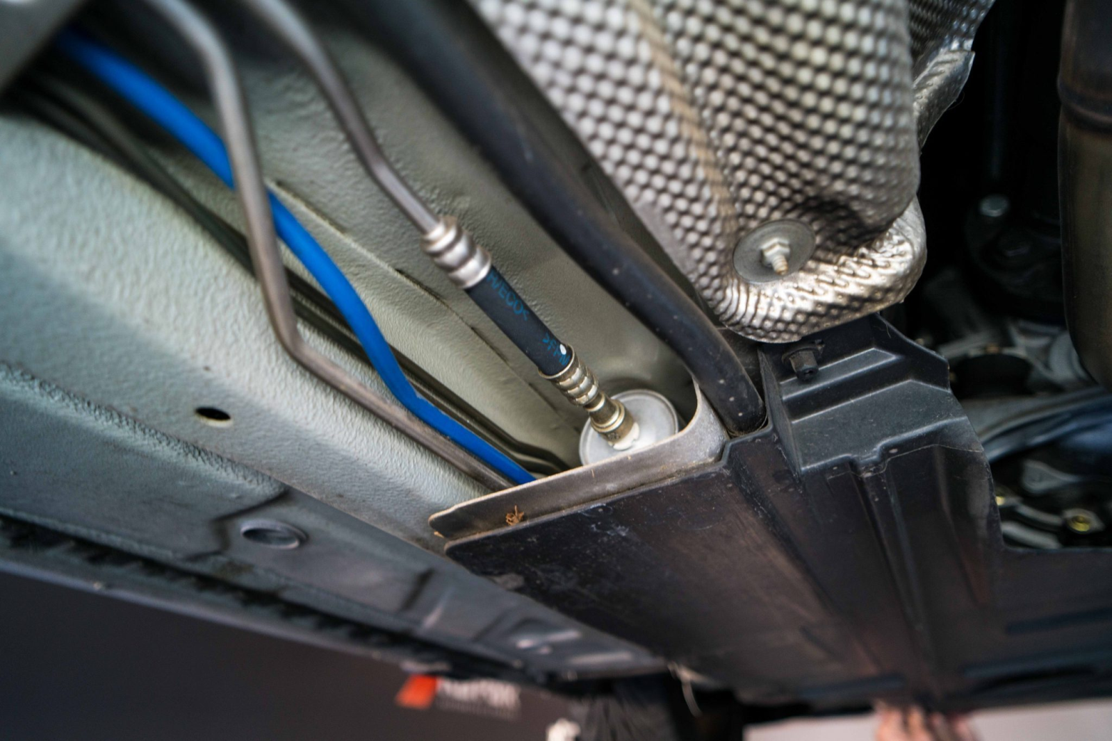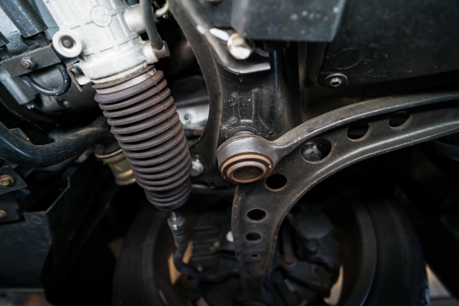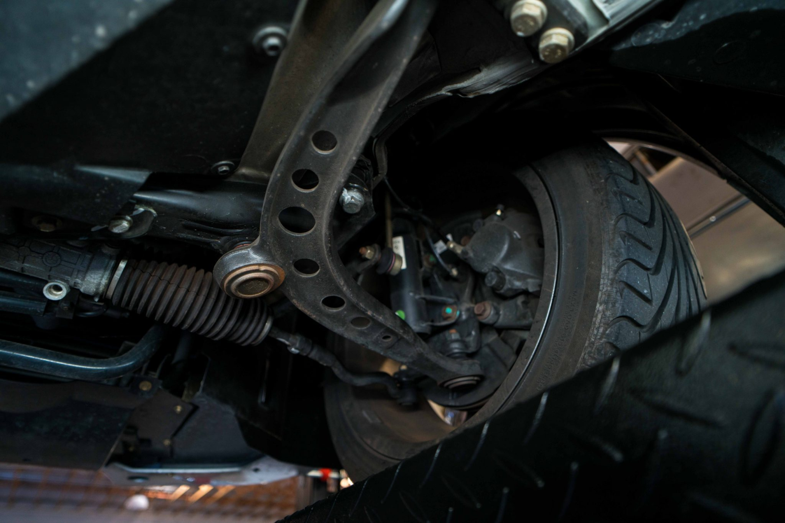 Power is sent to the rear wheels through a five-speed manual transmission and a limited-slip differential. Additional photos of the underside, suspension, and exhaust are viewable in the gallery.