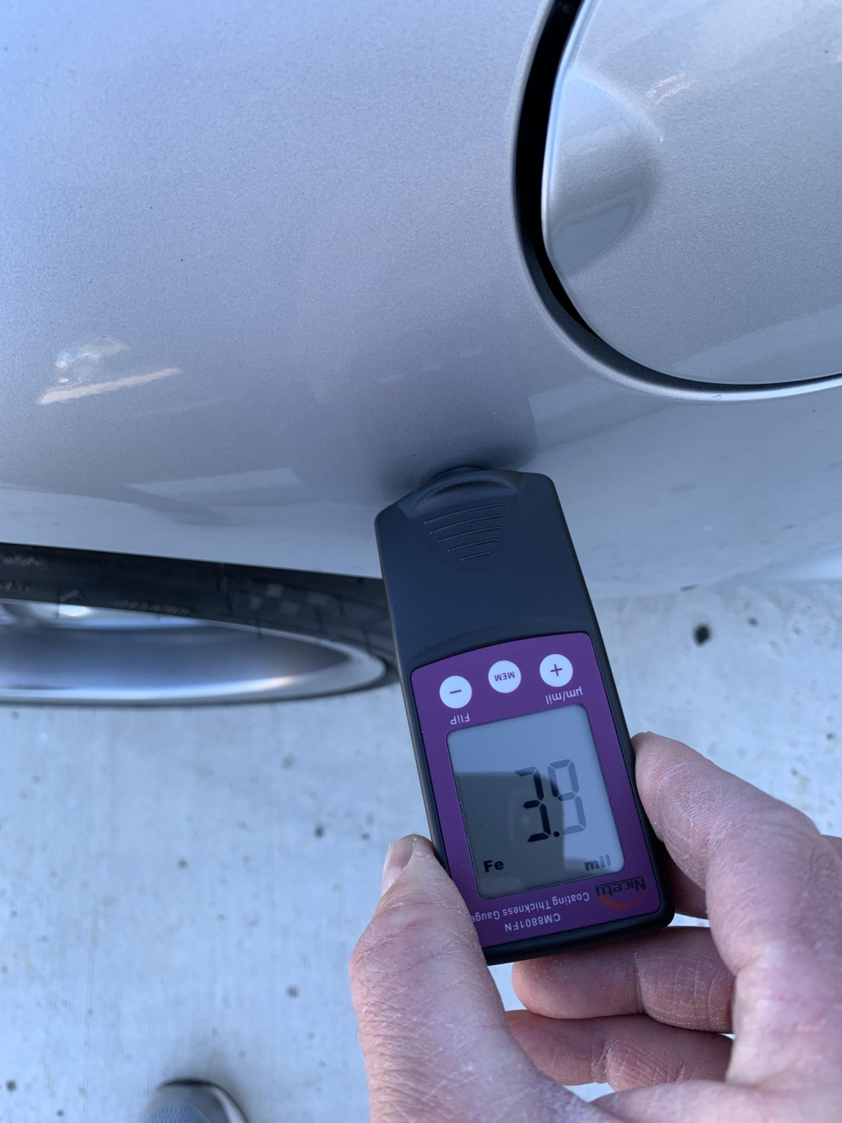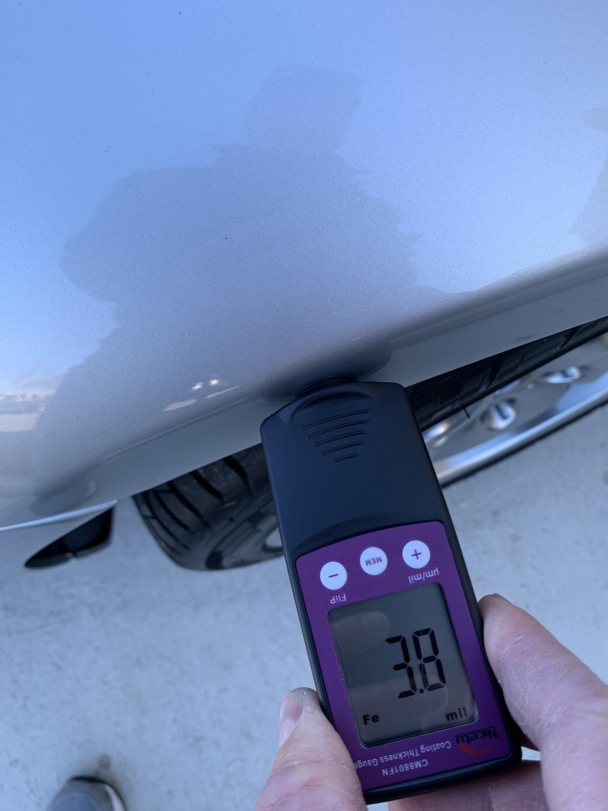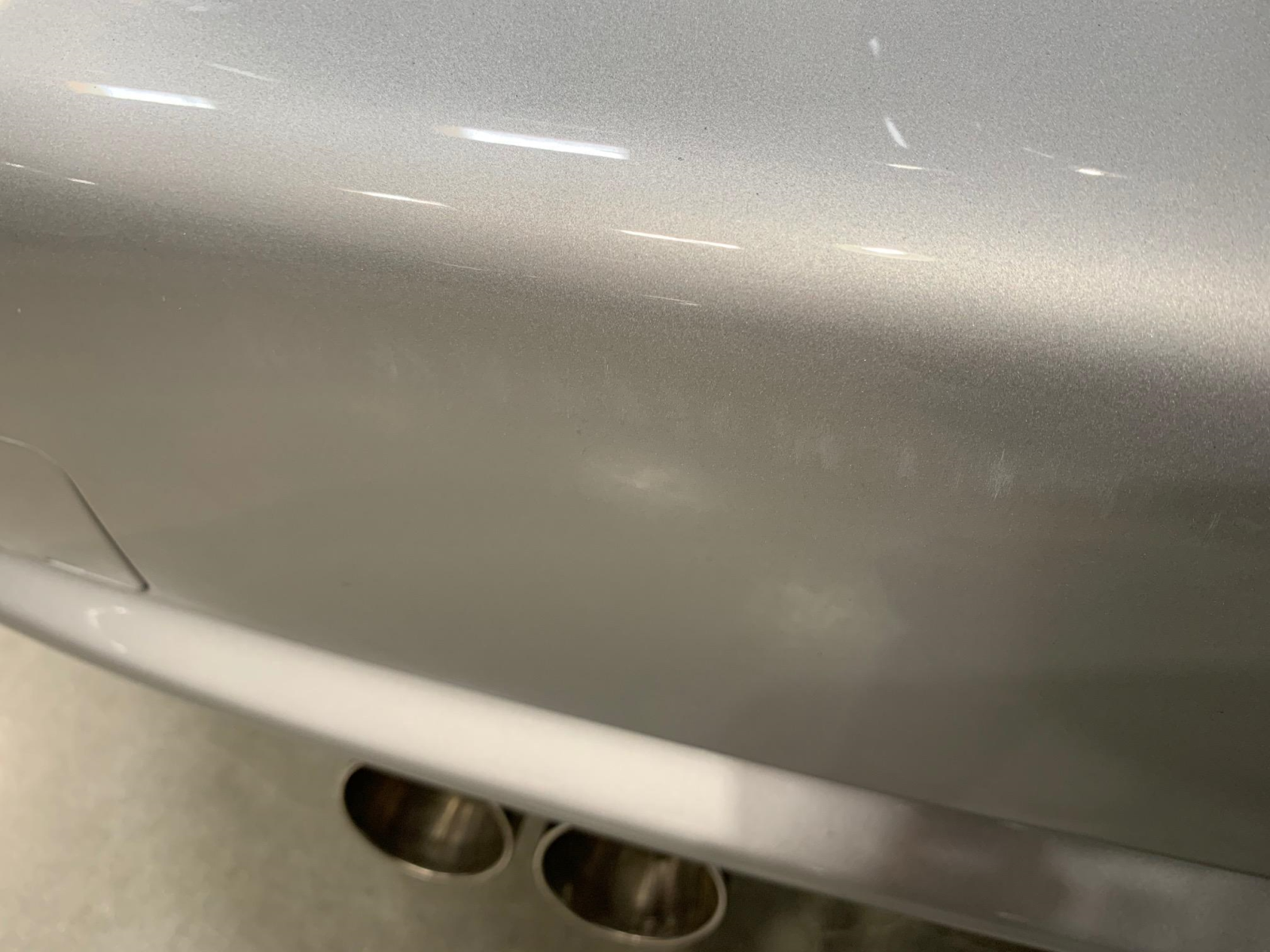 The car is finished Titanium Silver Metallic with a sunroof, a rear wiper, and quad exhaust outlets. The seller notes scuffs on the lower portion of the left side of the front bumper cover and abrasion on the rear bumper cover. Paint meter readings are provided in the gallery below.