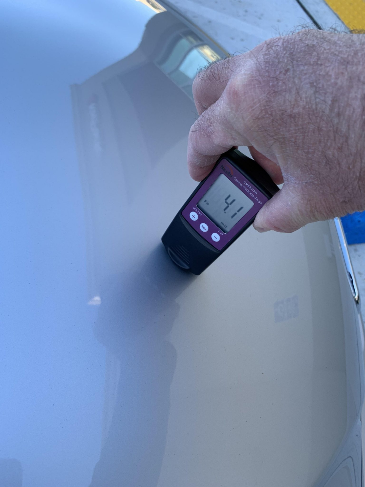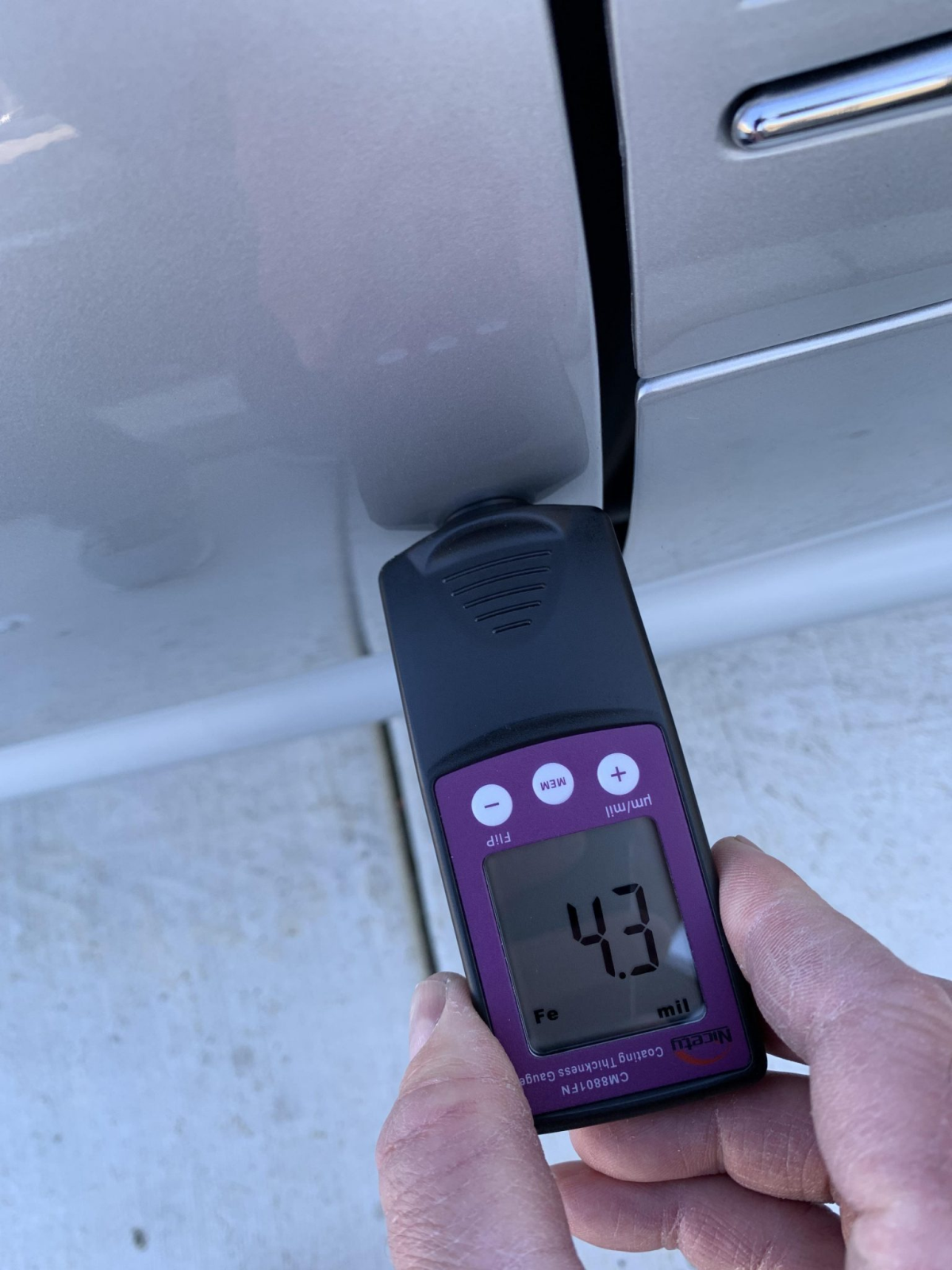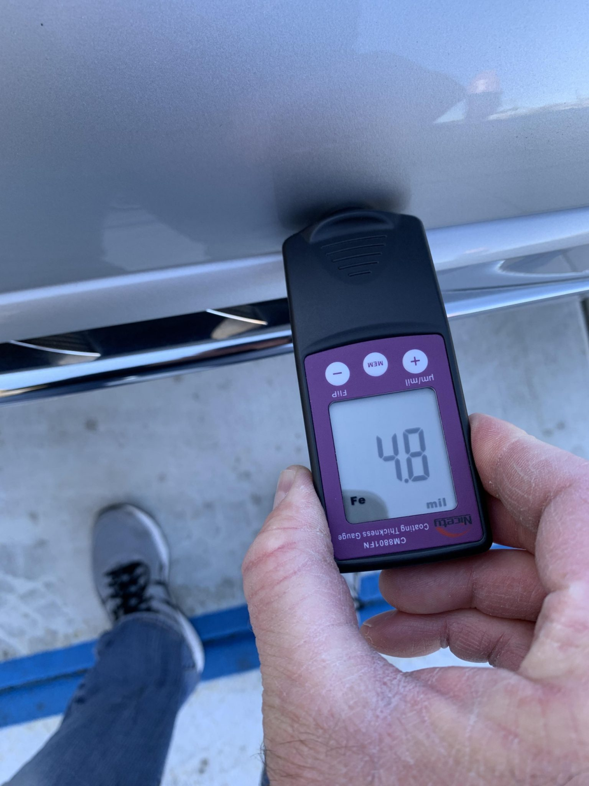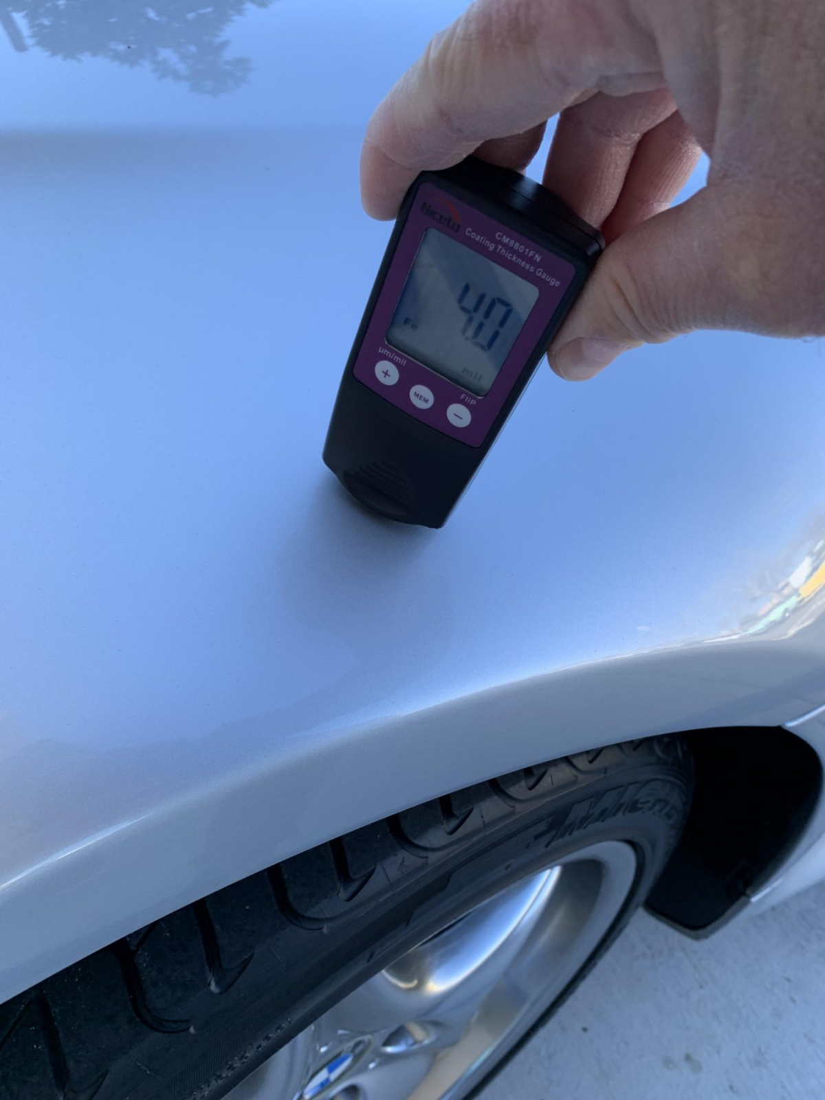 The car is finished Titanium Silver Metallic with a sunroof, a rear wiper, and quad exhaust outlets. The seller notes scuffs on the lower portion of the left side of the front bumper cover and abrasion on the rear bumper cover. Paint meter readings are provided in the gallery below.