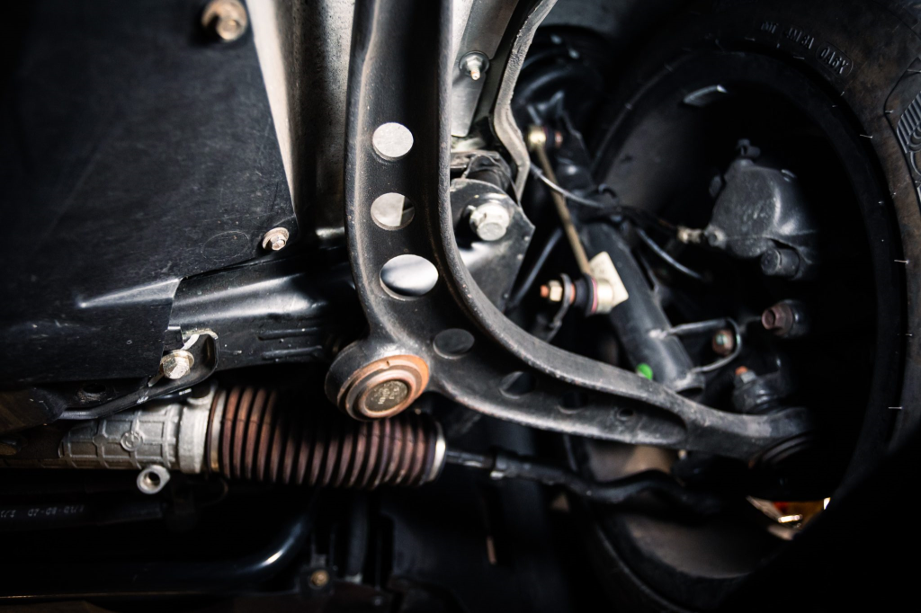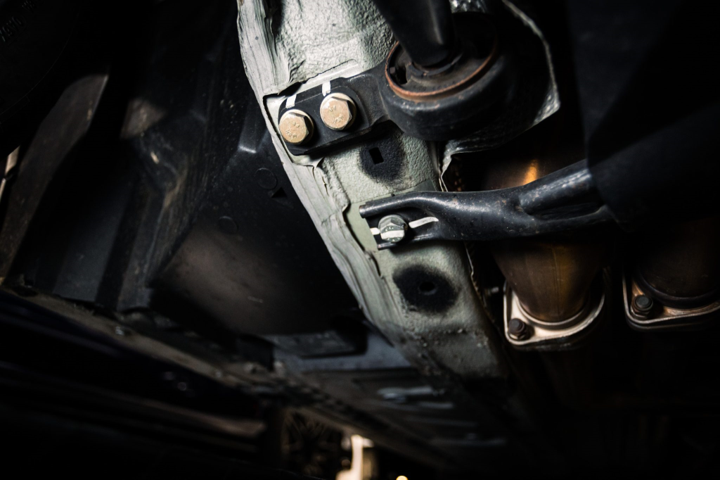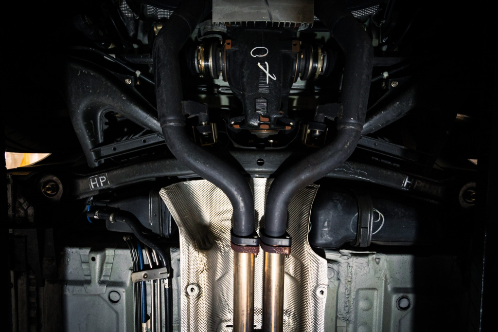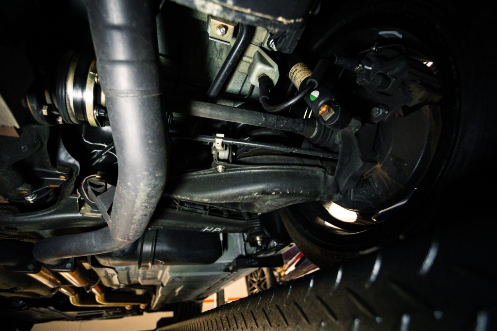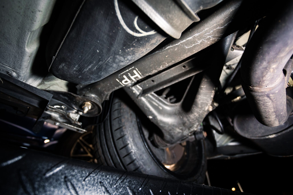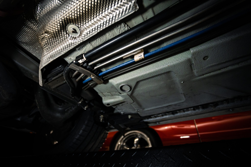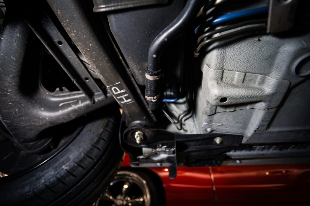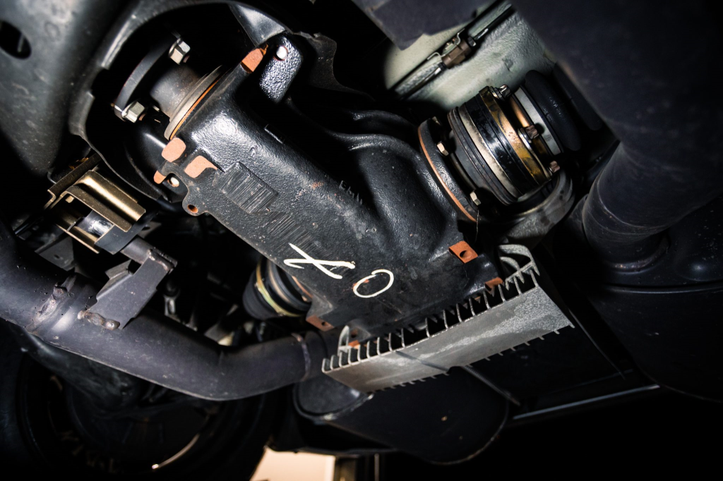 Power is sent to the rear wheels through a five-speed manual transmission and a limited-slip differential. Additional photos of the underside, suspension, and exhaust are viewable in the gallery.