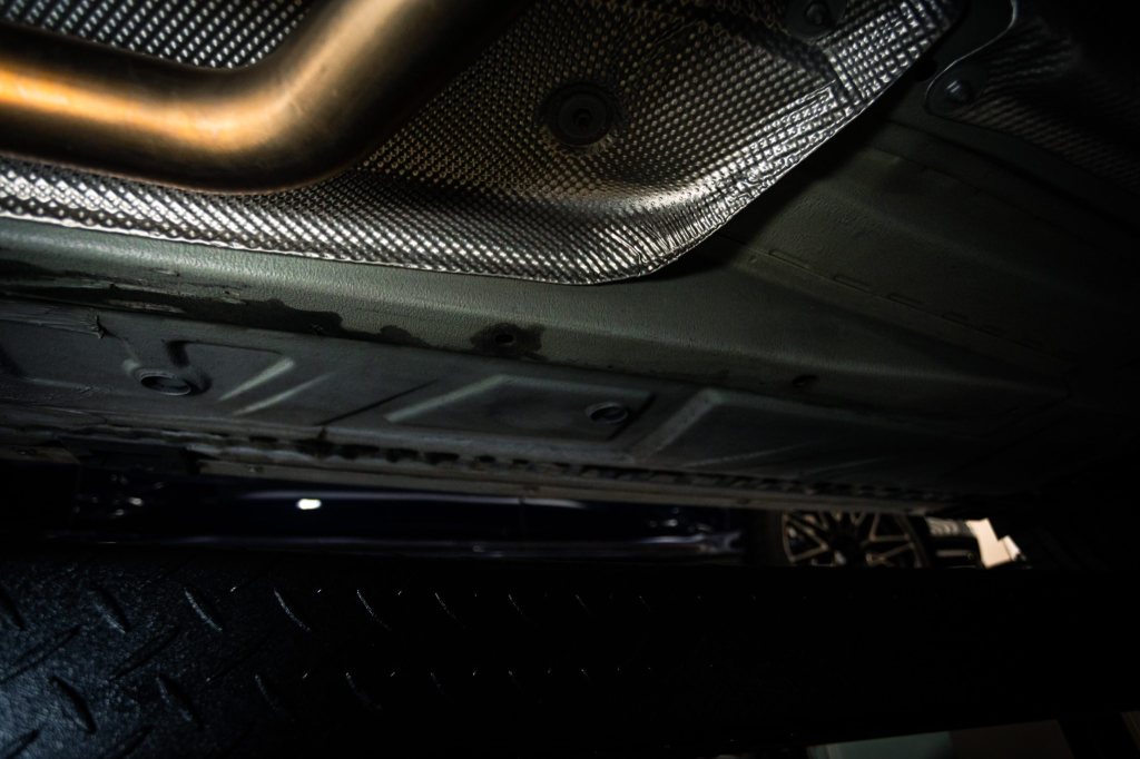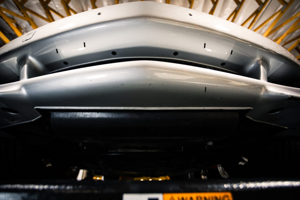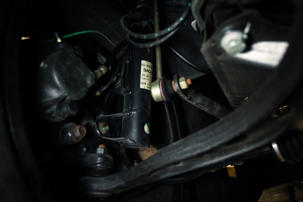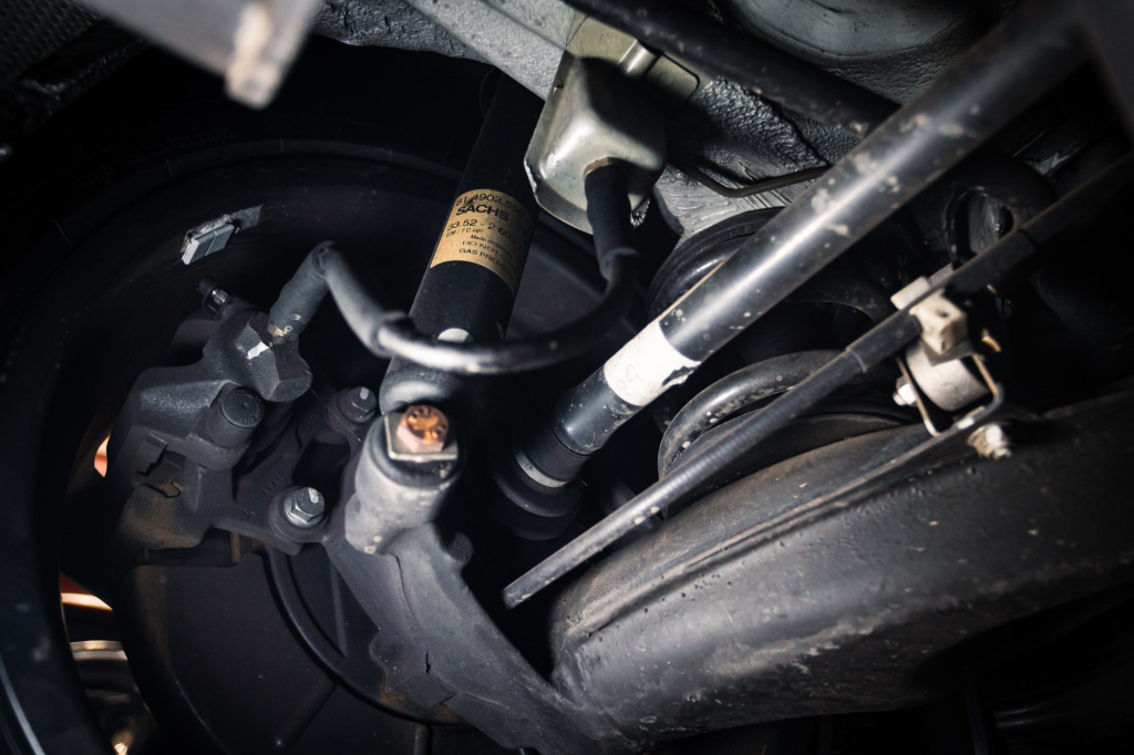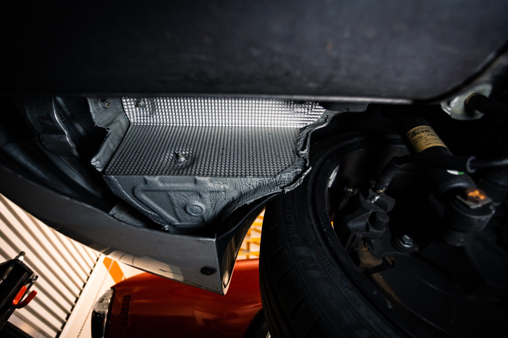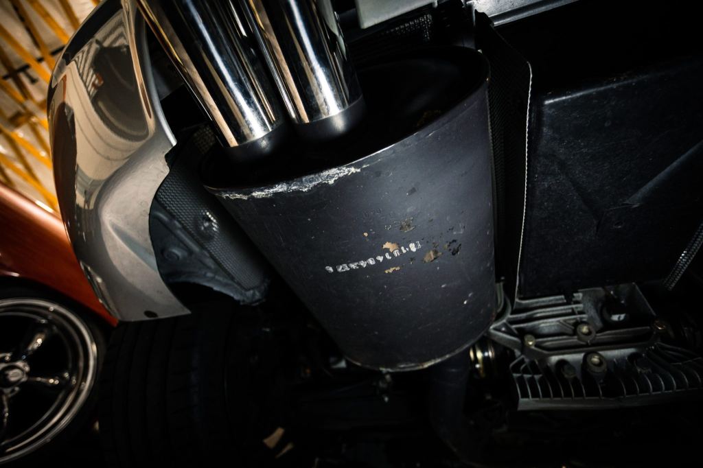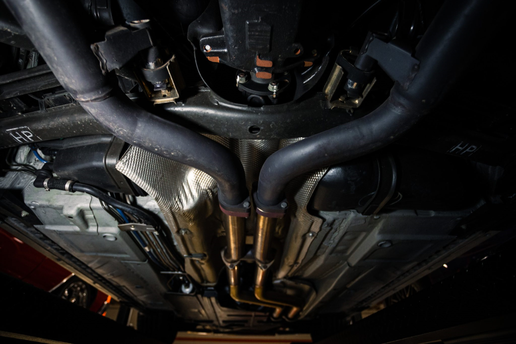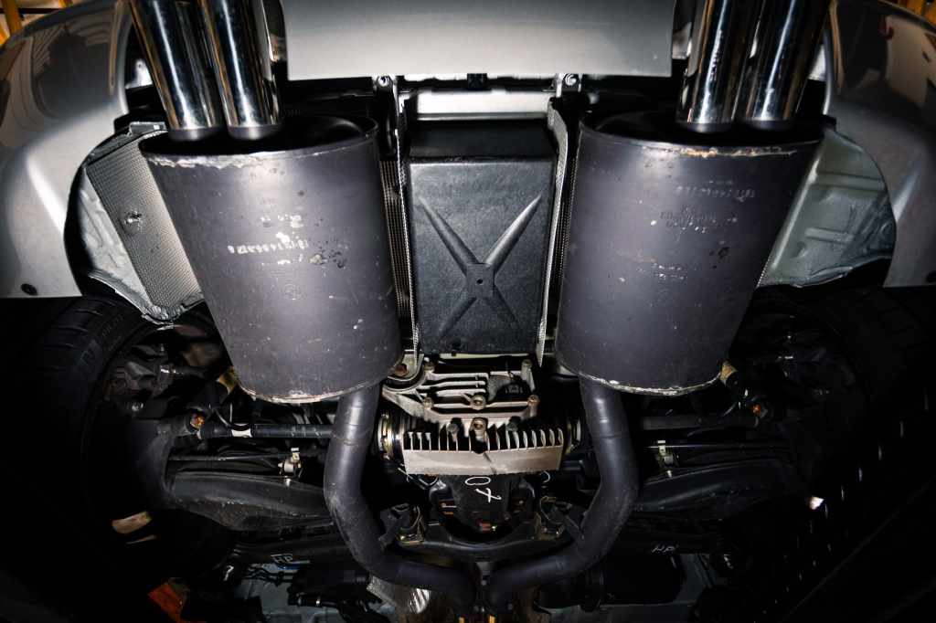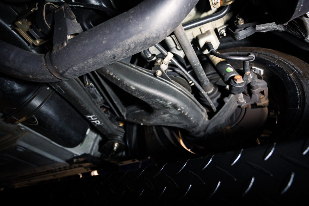 Power is sent to the rear wheels through a five-speed manual transmission and a limited-slip differential. Additional photos of the underside, suspension, and exhaust are viewable in the gallery.