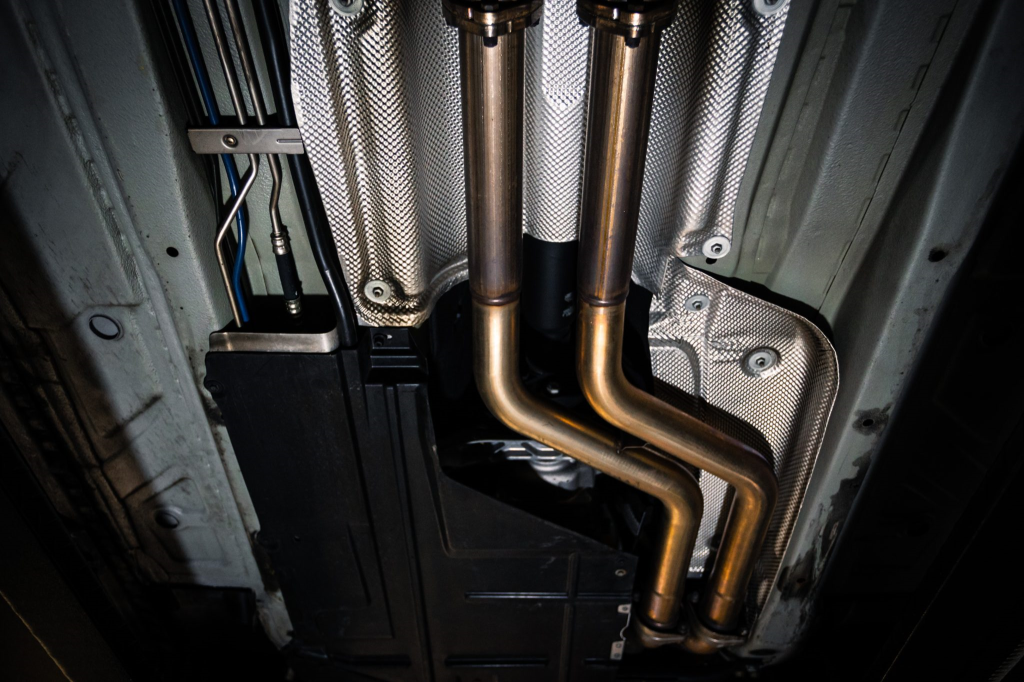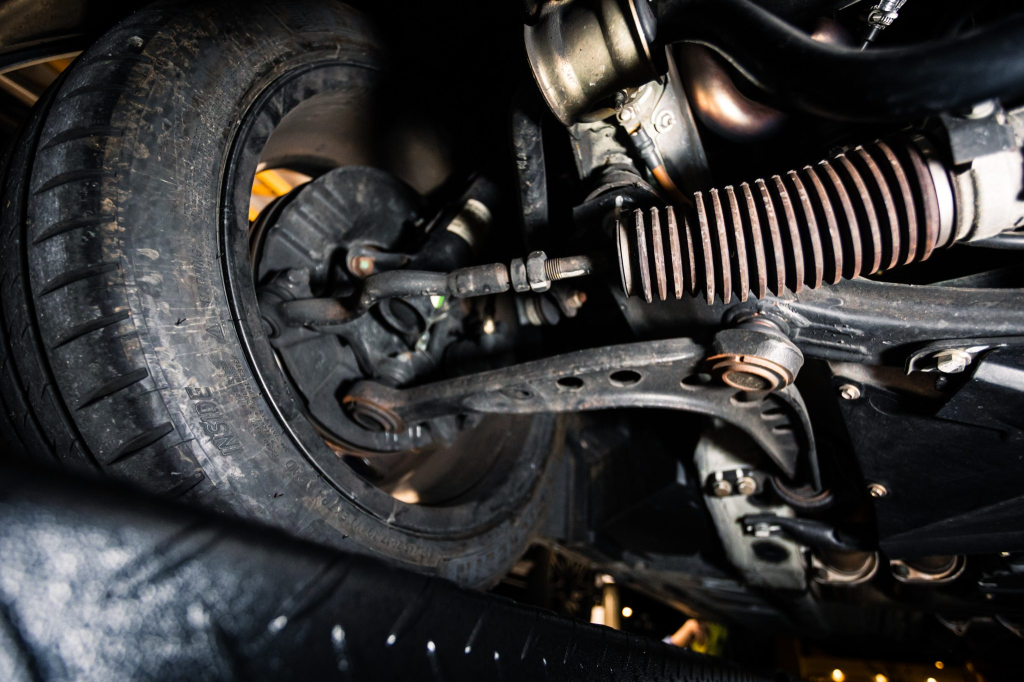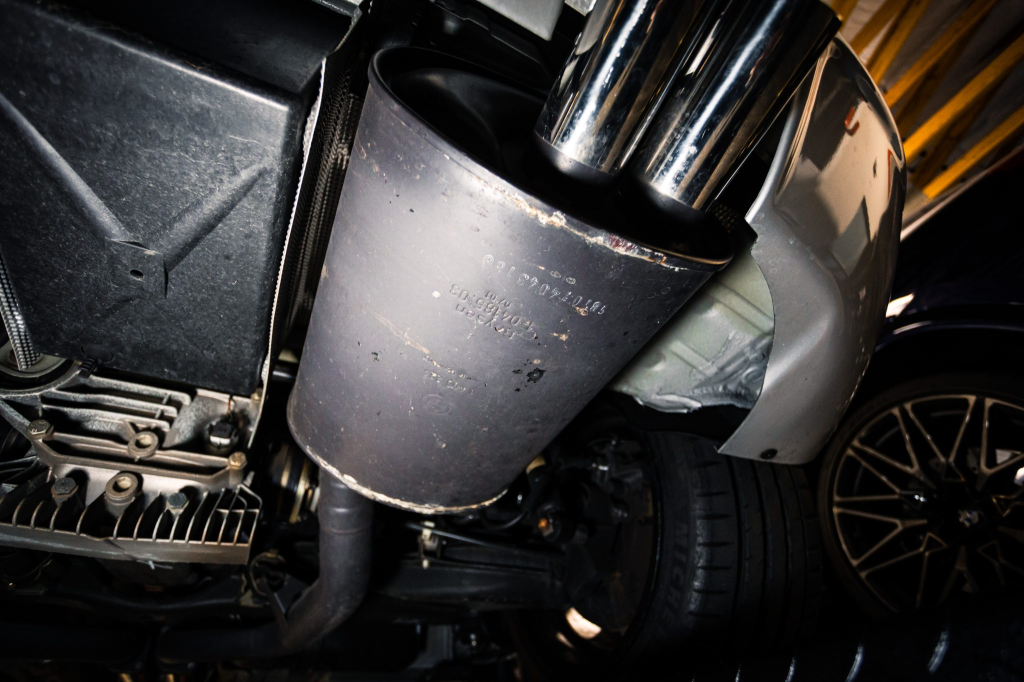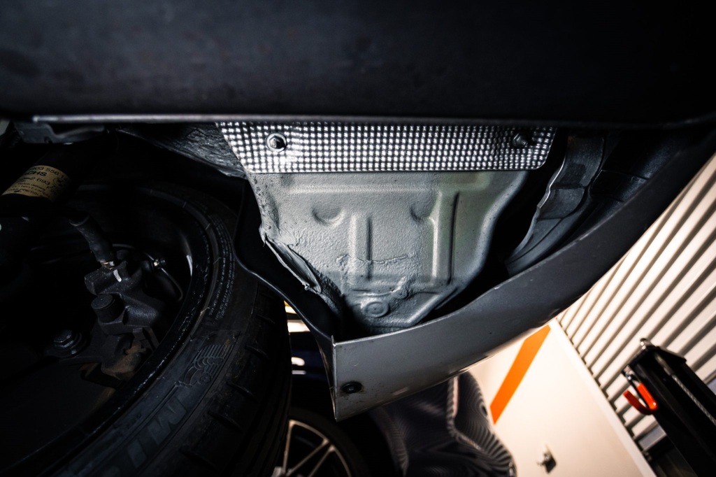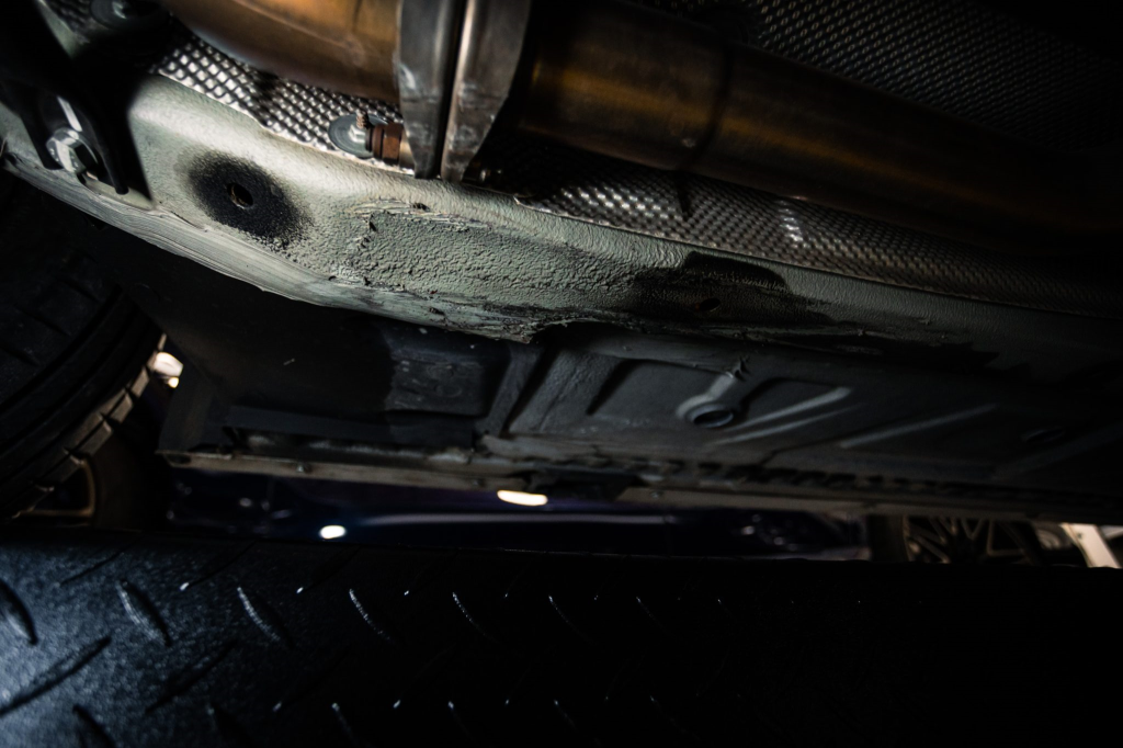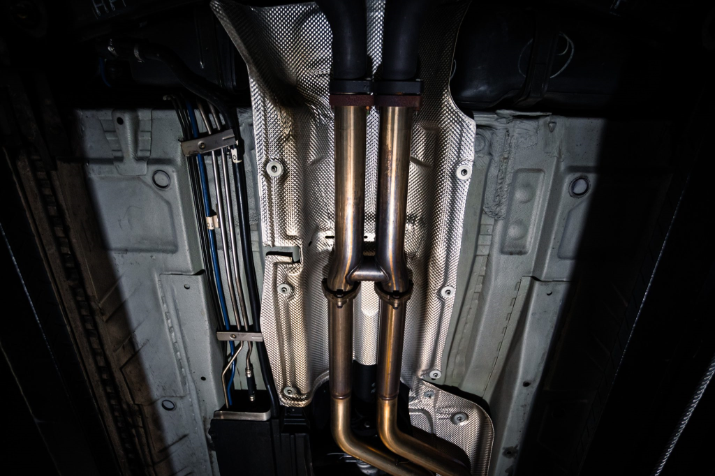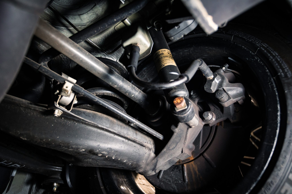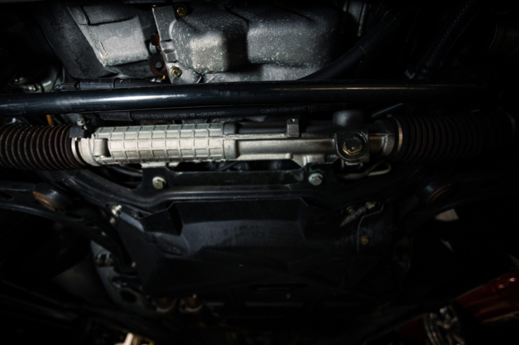 Power is sent to the rear wheels through a five-speed manual transmission and a limited-slip differential. Additional photos of the underside, suspension, and exhaust are viewable in the gallery.