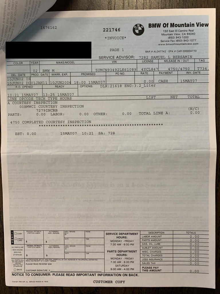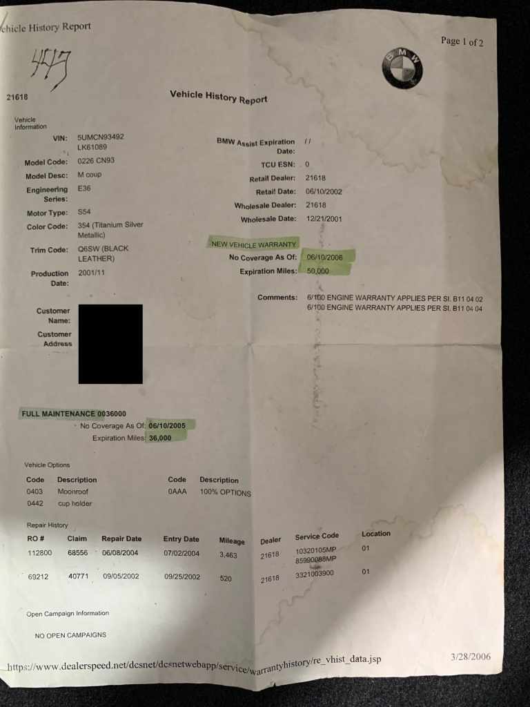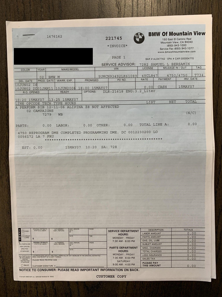 The 3.2-liter S54 inline-six was factory rated at 315 horsepower and 251 lb-ft of torque. An oil change and a coolant flush were performed in March 2021 and the battery was reportedly replaced under current ownership.