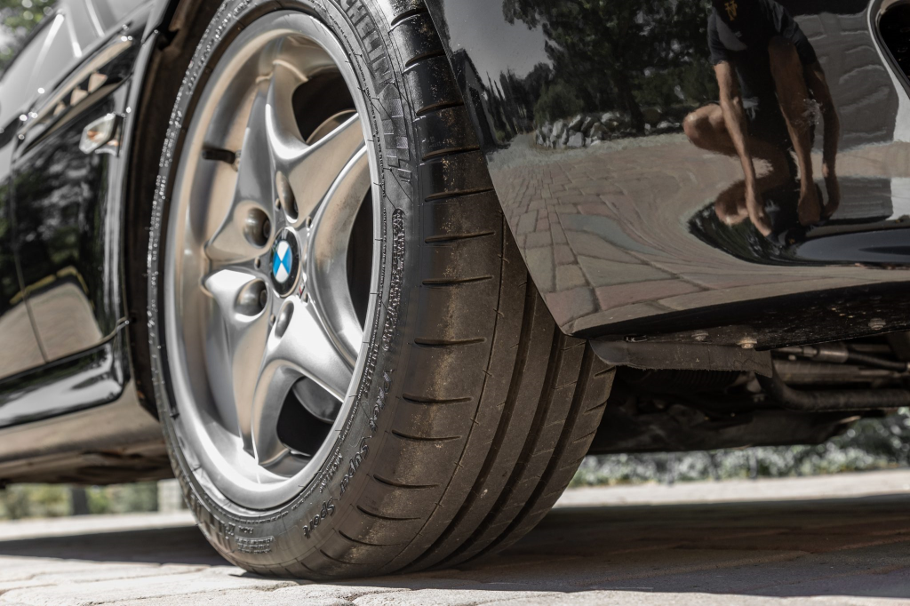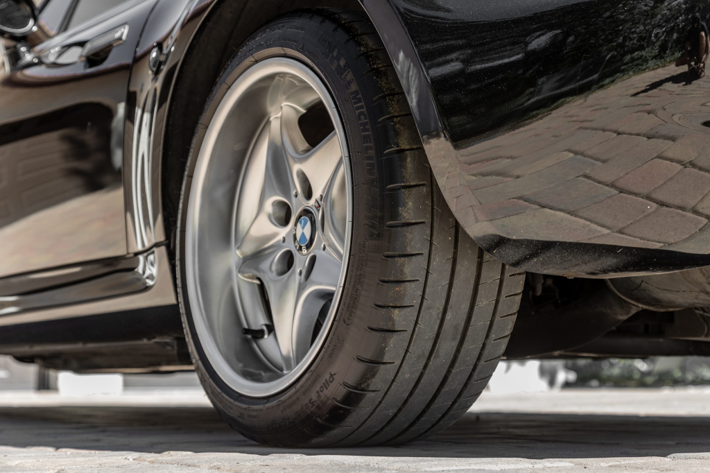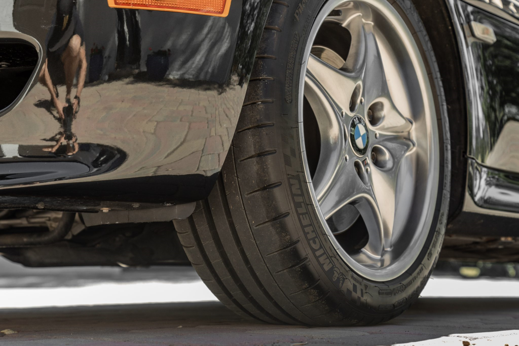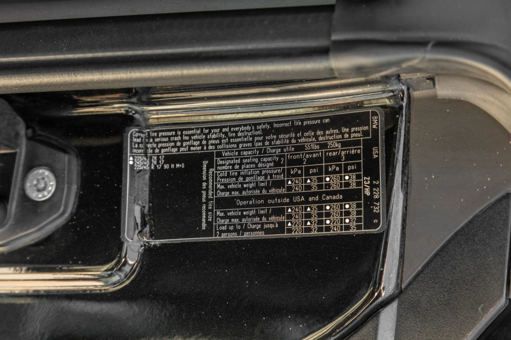 Shadow-finished 17″ Style 40 wheels are mounted with Michelin Pilot Super Sport tires measuring 225/45 up front and 245/40 out back. The car is equipped with Dynamic Stability Control (DSC) and All-Season Traction (AST), and braking is handled by four-wheel ventilated discs.