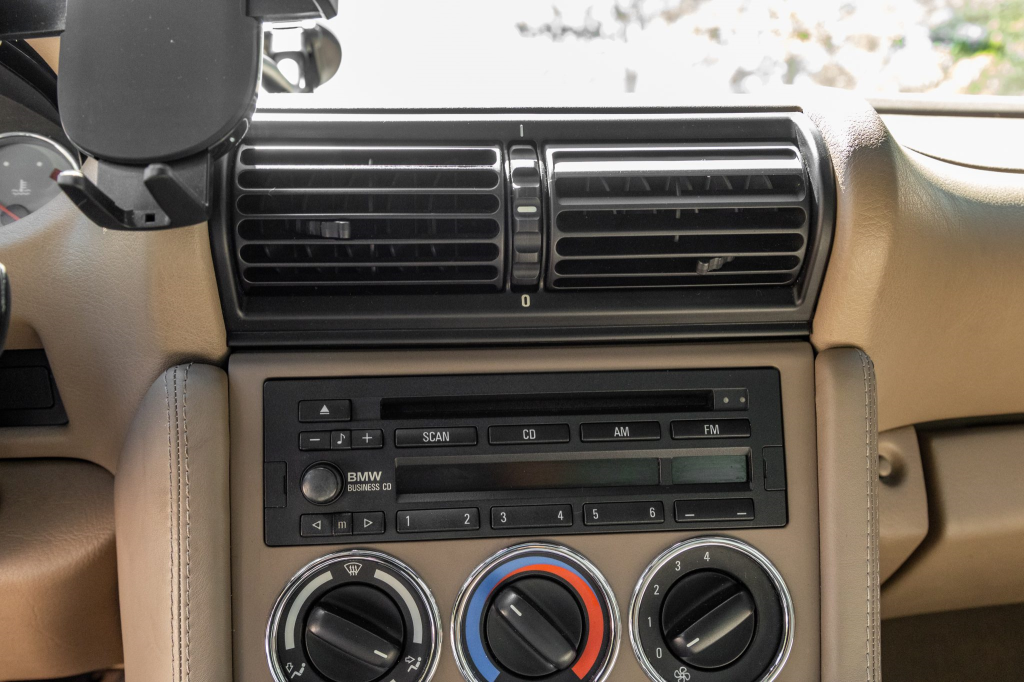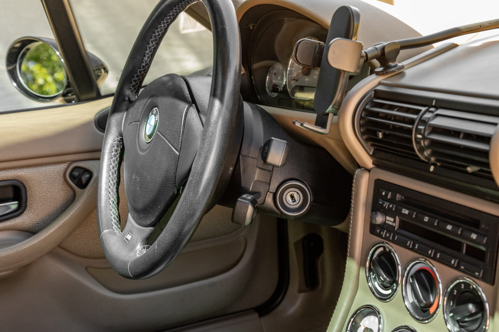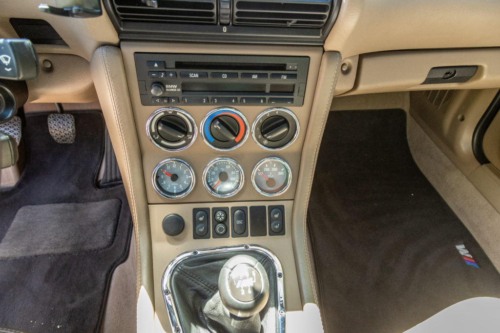 This 2002 BMW M Coupe is powered by a 3.2-liter S54 inline-six paired with a five-speed manual transmission and is finished in Black Sapphire Metallic over Dark Beige Oregon leather. Equipment includes a limited-slip differential, Shadow-finished 17″ Style 40 wheels, a power sunroof, a Harman Kardon sound system, air conditioning, and cruise control. The seller acquired the car in September 2017 and has since added approximately 700 of the 53k indicated miles. Work completed in March 2022 included reprogramming the DME control module and replacing the water pump, thermostat, drive belts, and fan blades. This M Coupe is now offered with a car cover, recent service records, an accident-free Carfax report, and a clean Nevada title in the seller’s name.