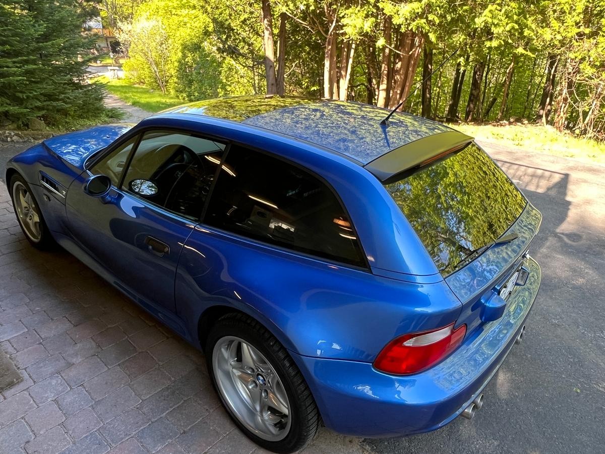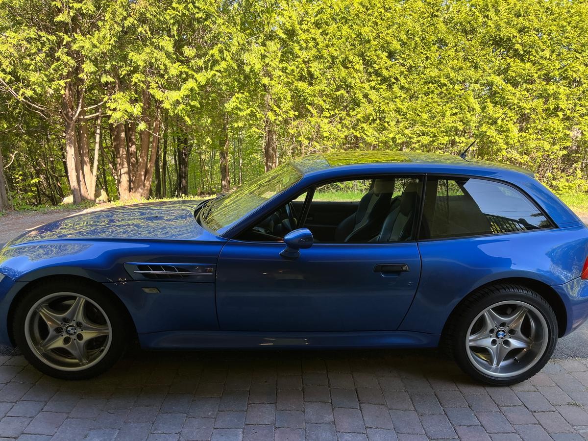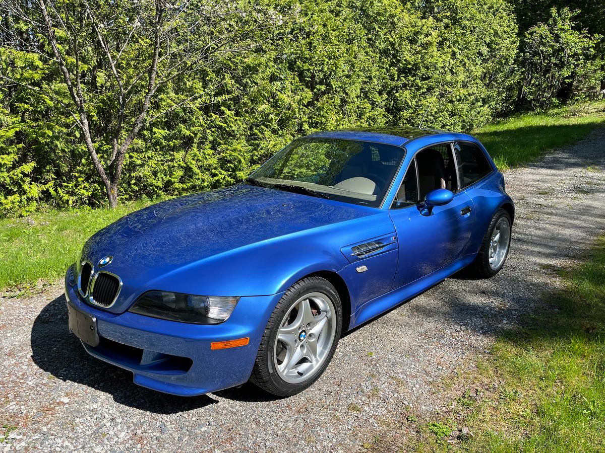 This 1999 BMW M Coupe is finished in Estoril Blue Metallic over a Sand Beige leather interior.