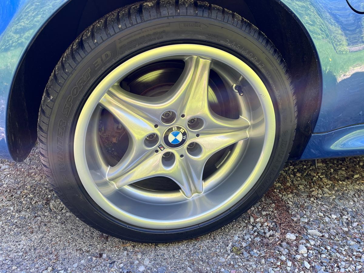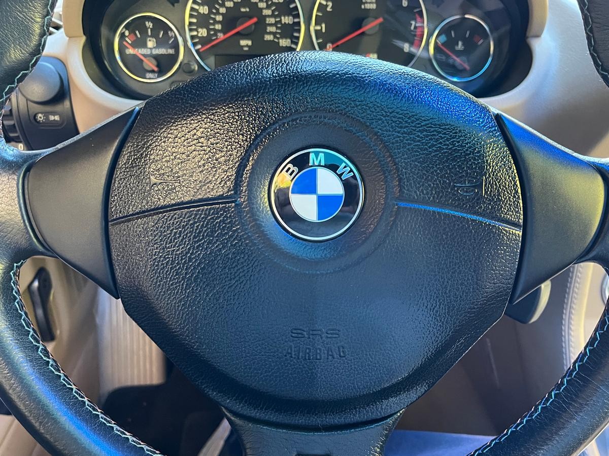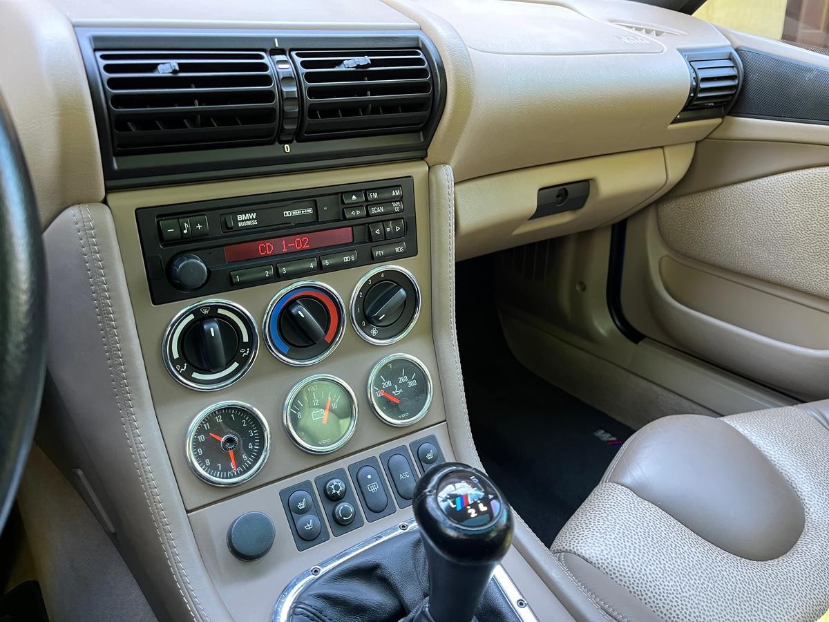 This 1999 BMW M Coupe is finished in Estoril Blue Metallic over a Sand Beige leather interior.