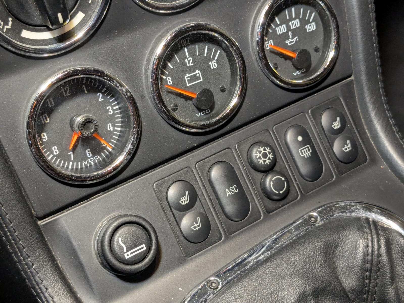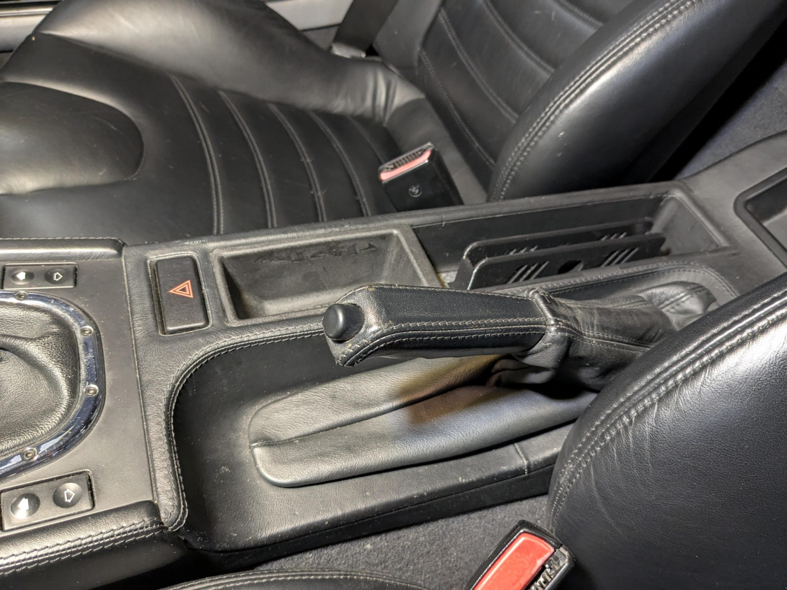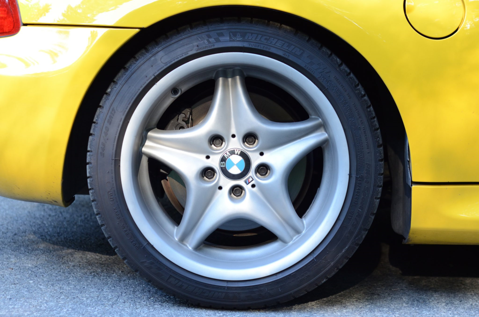 The 17″ Style 40 wheels are mounted with Michelin tires. The car is equipped with Automatic Stability Control, and TCKline coilover suspension, Garagistic trailing arm bushings, and Condor Speed Shop front control arm bushings were installed under current ownership. Braking is handled by four-wheel ventilated discs with stainless steel brake hoses. The tie rods were replaced in 2022, and the brake master cylinder, pads, and rotors were replaced in 2024.