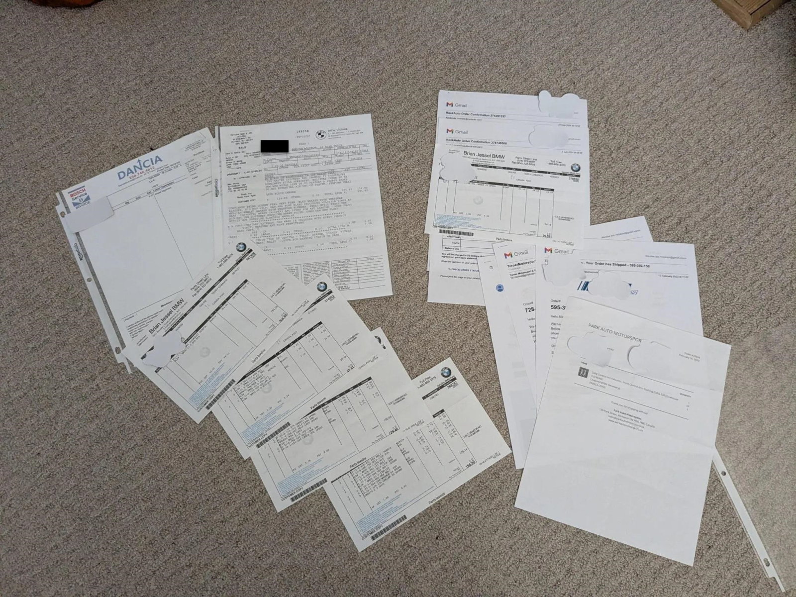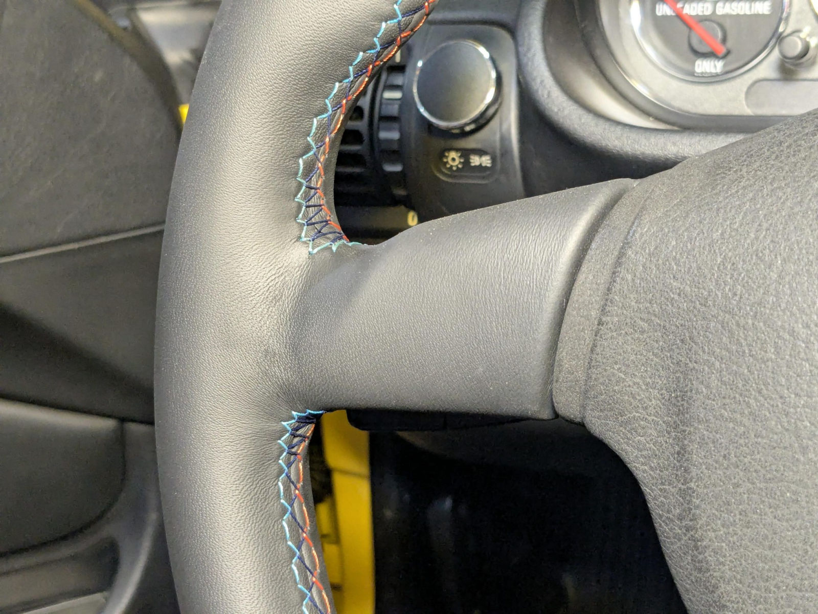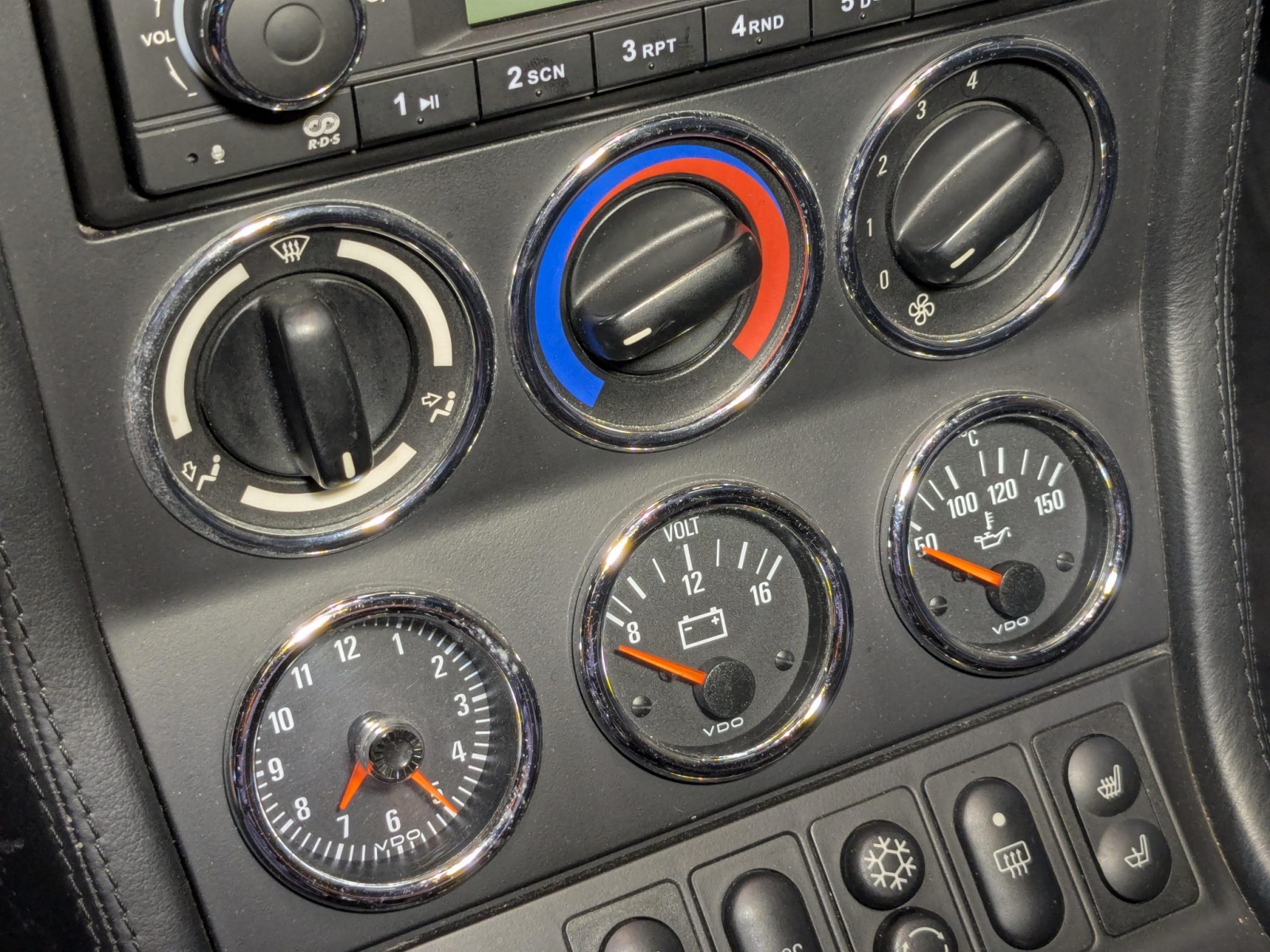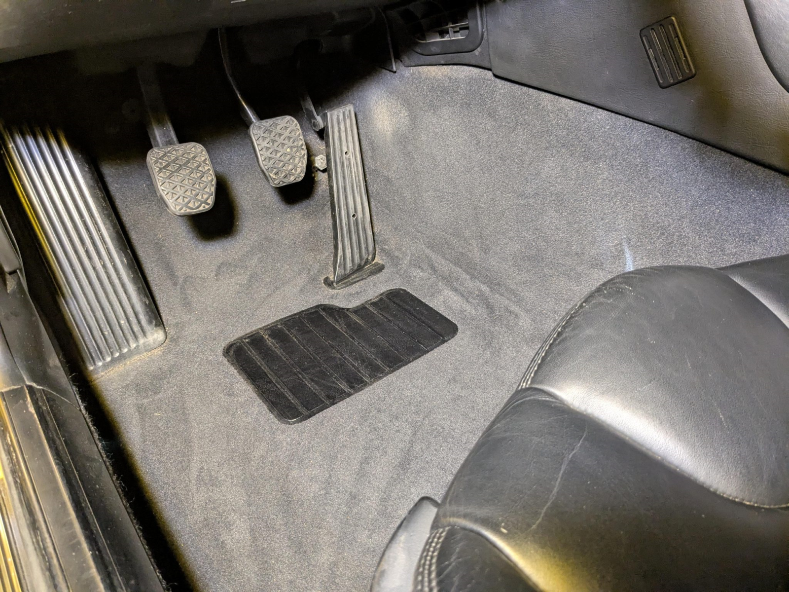 The 17″ Style 40 wheels are mounted with Michelin tires. The car is equipped with Automatic Stability Control, and TCKline coilover suspension, Garagistic trailing arm bushings, and Condor Speed Shop front control arm bushings were installed under current ownership. Braking is handled by four-wheel ventilated discs with stainless steel brake hoses. The tie rods were replaced in 2022, and the brake master cylinder, pads, and rotors were replaced in 2024.