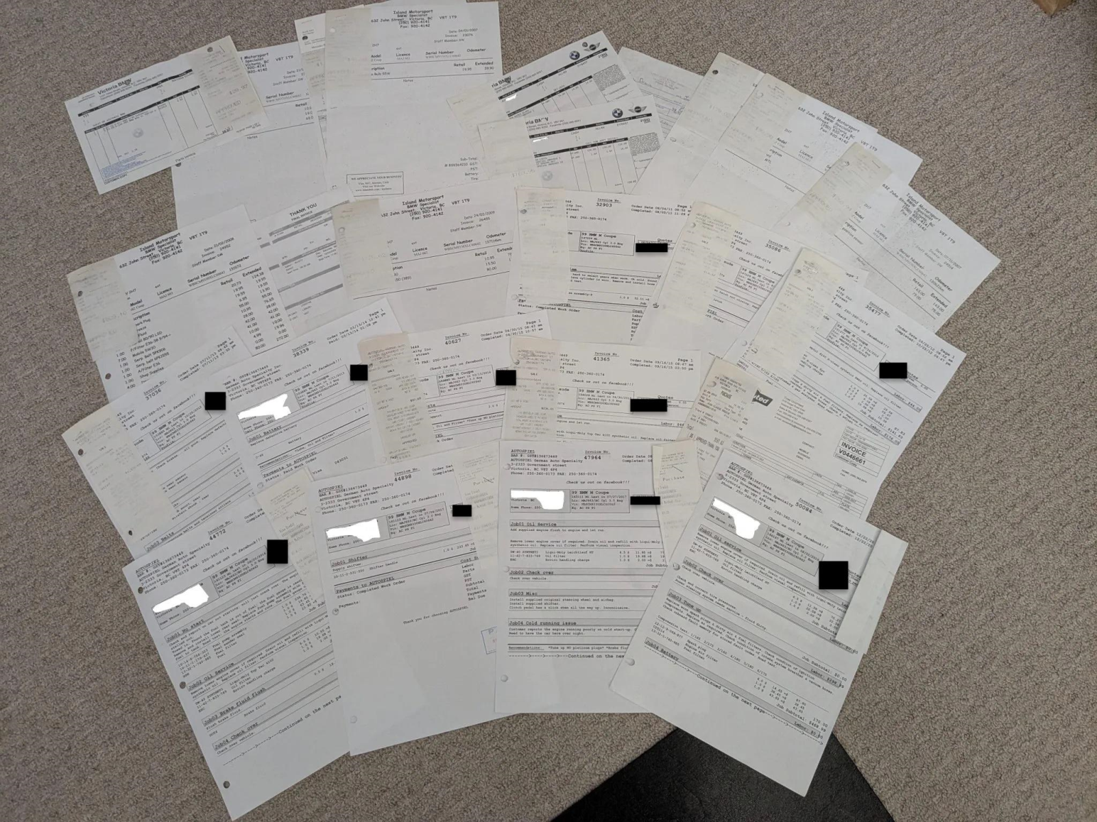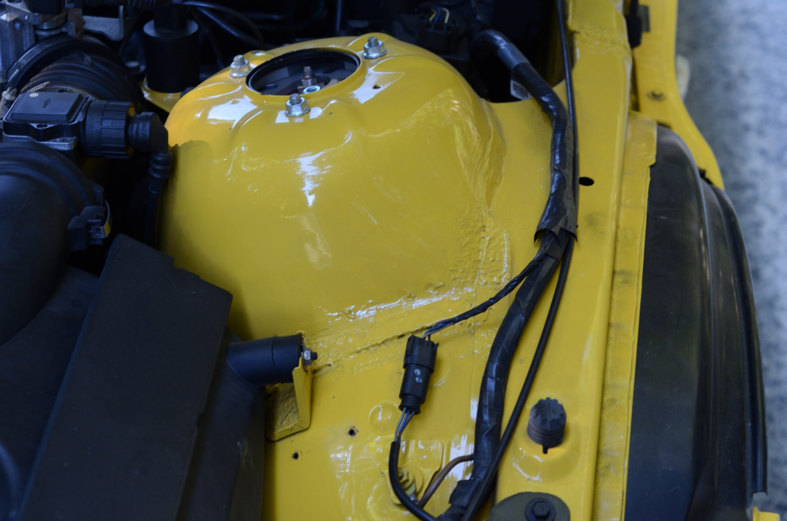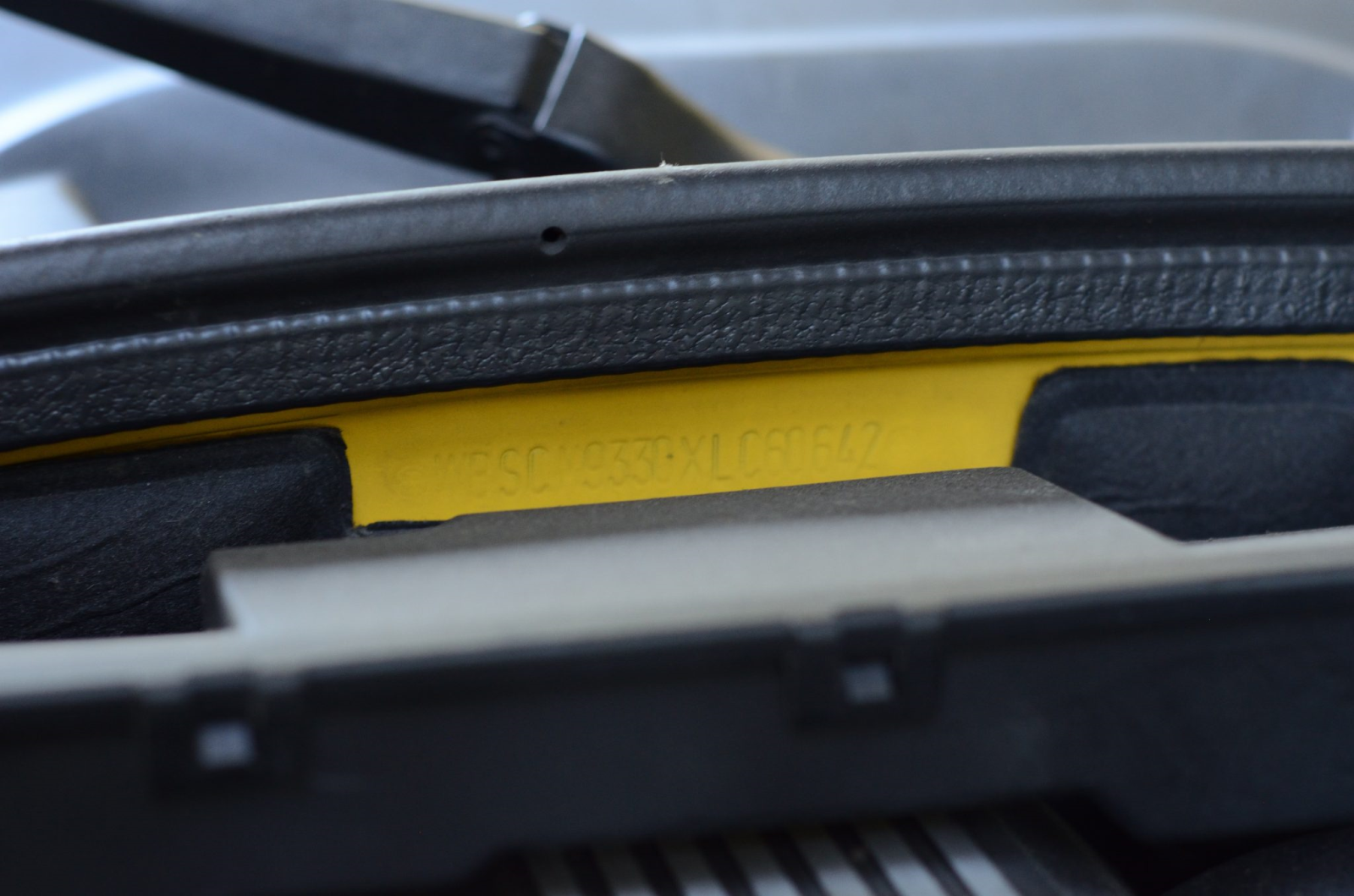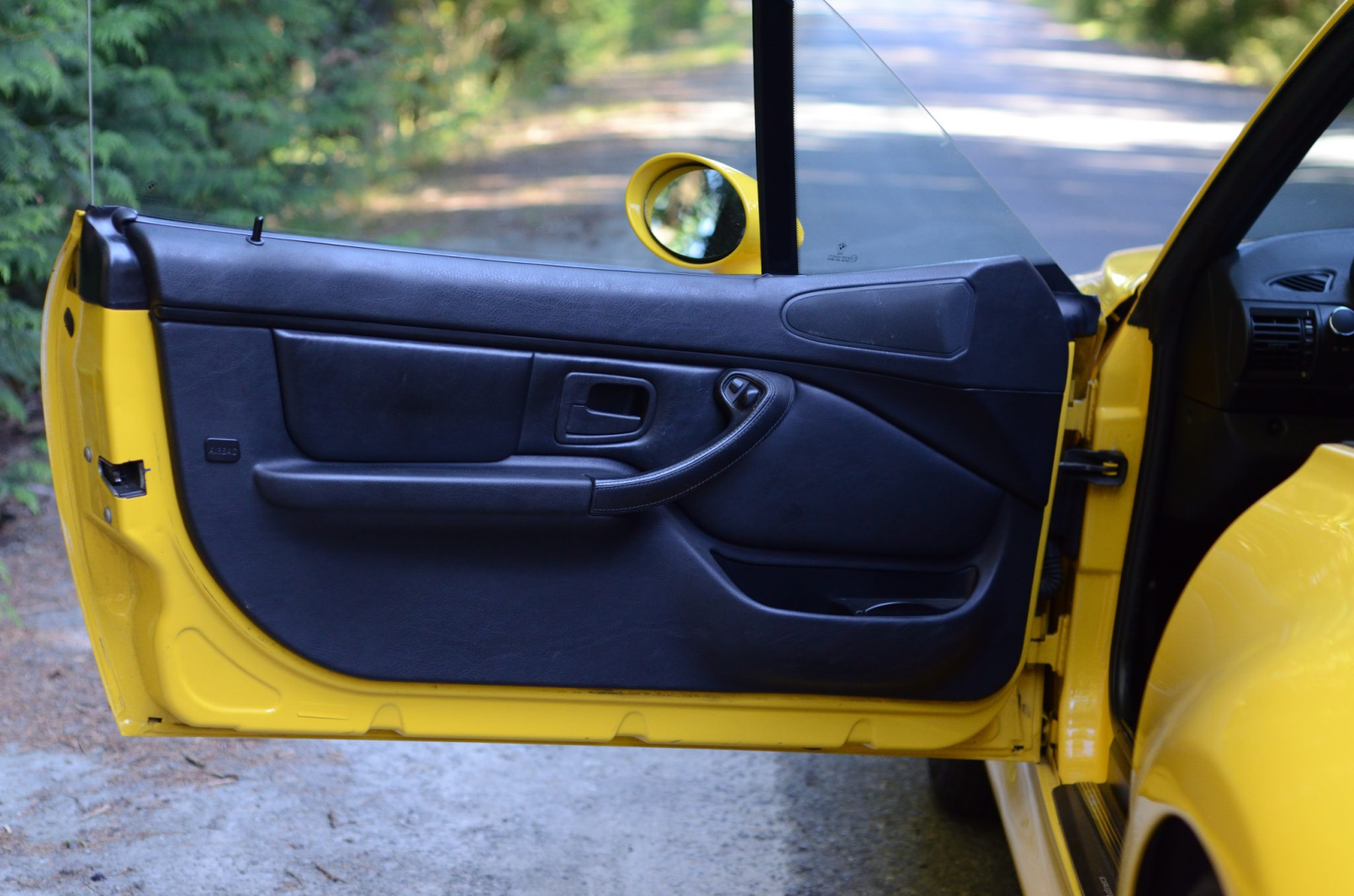 The car has a clean title but does have prior claims from the first owner. It was repainted in ~2000, likely during one of them. This changed the car from the original Estoril Blue to a variant of Dakar Yellow. Extremely comprehensive coverage of the engine-bay, door jambs, etc. While I wish the car was still the original Estoril Blue, the yellow shows very well.