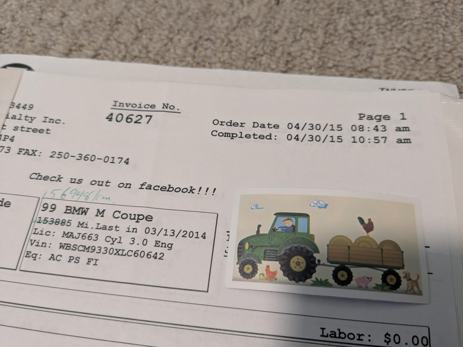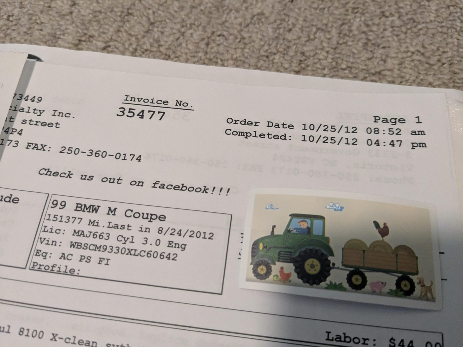 1999 BMW M Coupe. Local BC car, on Collector plates since January 2024