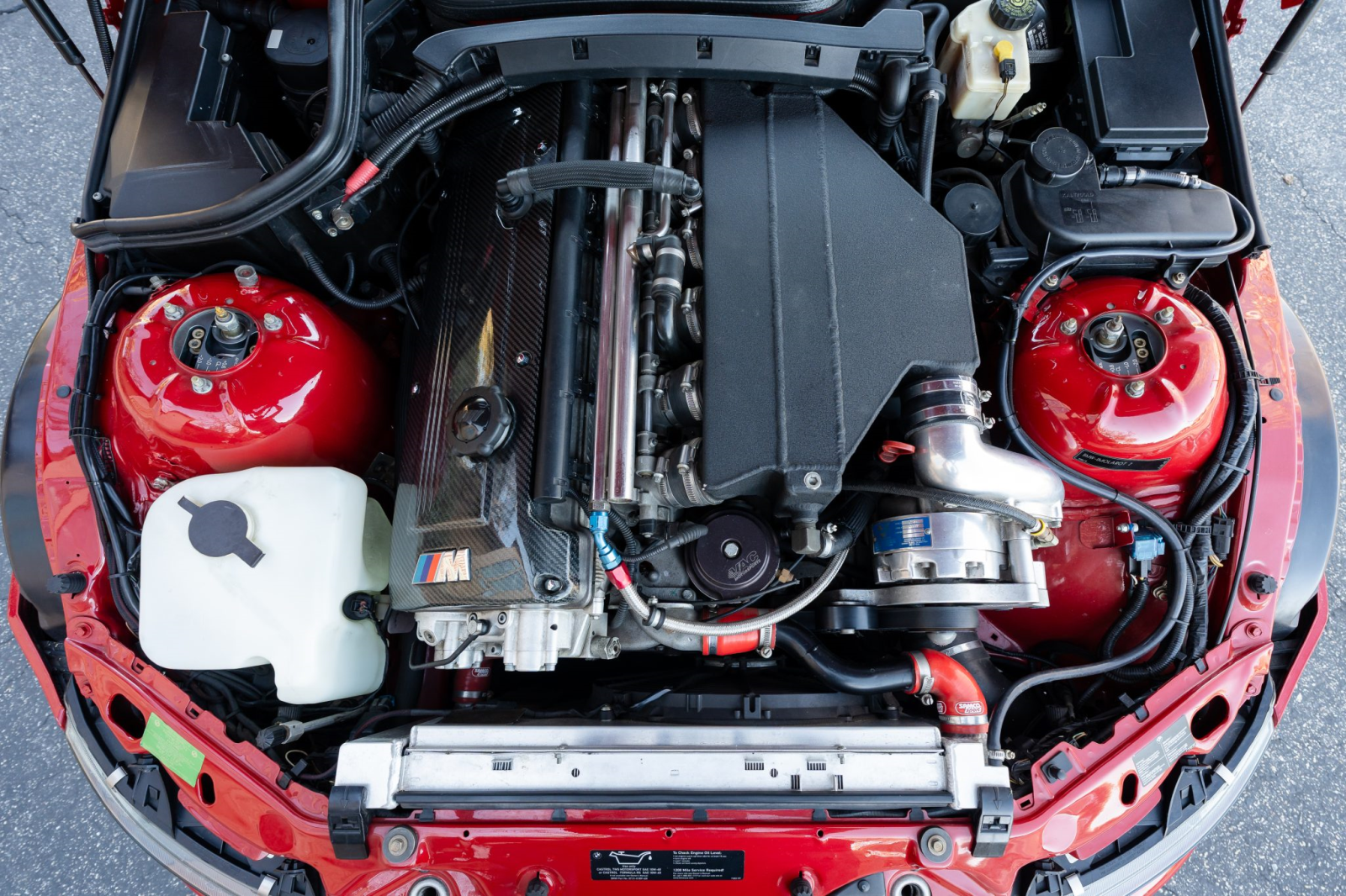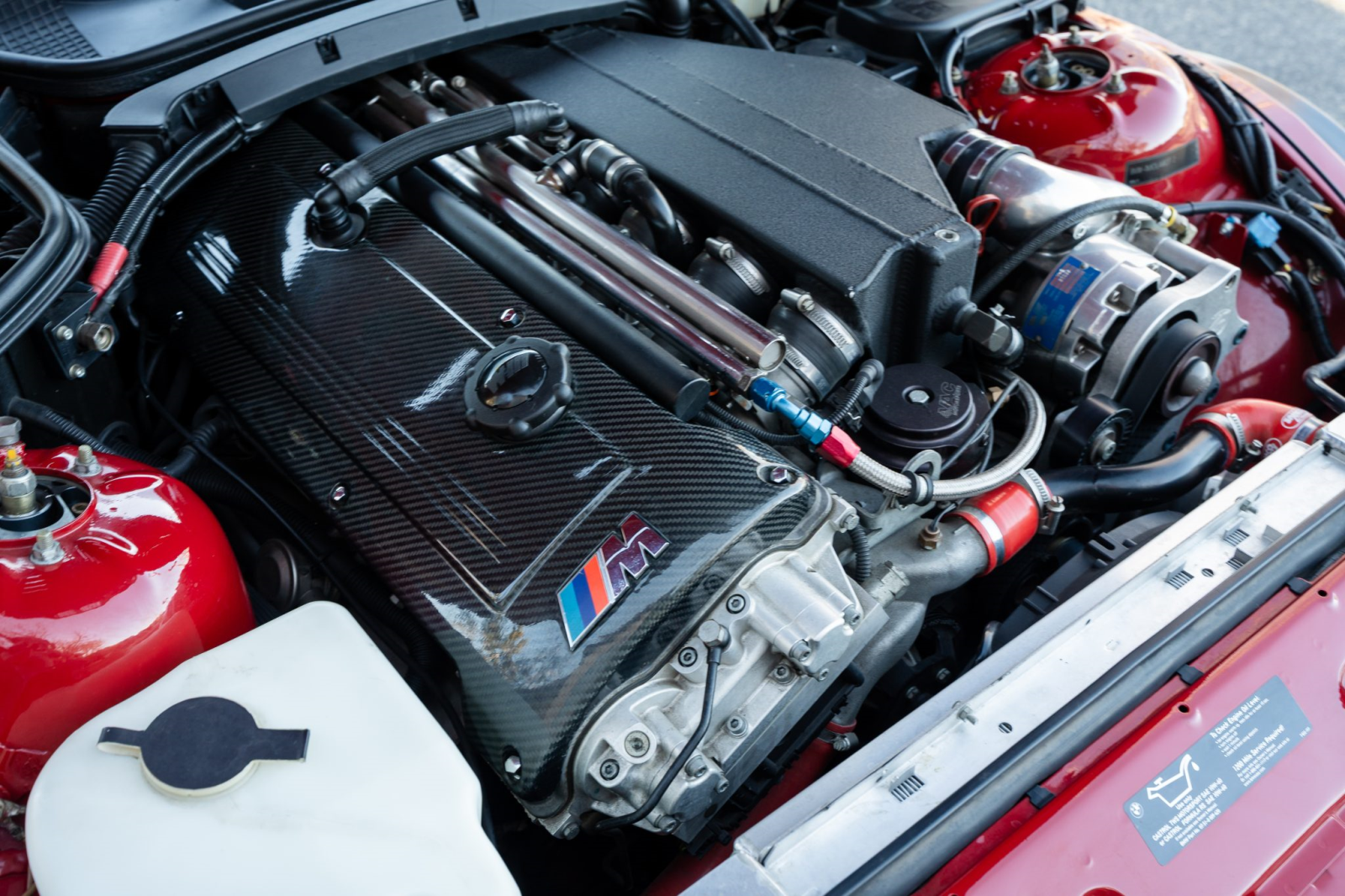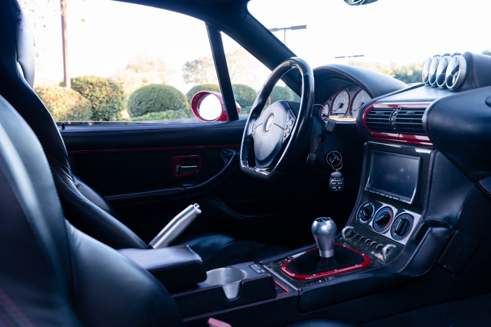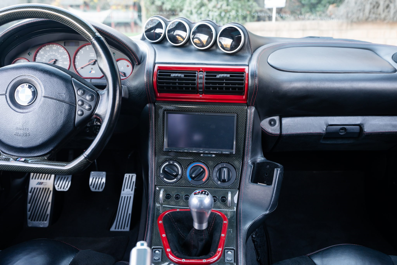 This 2002 BMW M Coupe was modified between 2010 and 2012 by VAC Motorsports, who built its 700+ horsepower S54 inline-six with their Stage 3 cylinder head, camshafts, coated bearings, throttle bodies, oil pump, injectors, and pulleys. The engine also uses Arrow connecting rods, CP forged pistons, and a VFEngineering Stage 2 supercharger kit along with Supersprint headers, high-flow catalytic converters, and uprated cooling components, and it is linked to a five-speed manual transmission and a limited-slip differential. Supporting modifications include KW V3 coilovers, Brembo brakes, HRE wheels, and a five-point roll bar, which was mounted in the reupholstered interior along with a custom sound system and more as described below. The body was fitted with a Hartge carbon-fiber hood and Hamann front and rear spoilers before it was refinished in its factory shade of Imola Red. Since completion of the build, the car has been featured in multiple BMW-centric magazines and was awarded “Best Modified BMW” in the 2012 Bimmerfest Battle of the Bimmers. The car was purchased by the seller’s brother in 2004, and ownership later passed to the seller. Dubbed “EVIL BMR”, this M Coupe now has 81k miles and is offered in California with a clean Carfax report, a magazine feature and award, and an Arizona title.