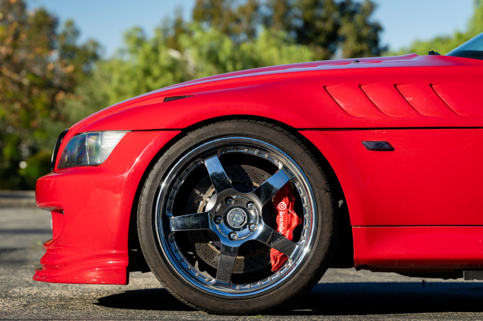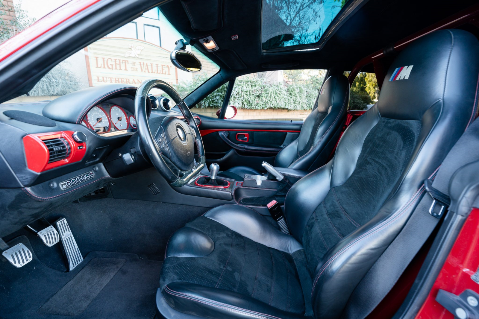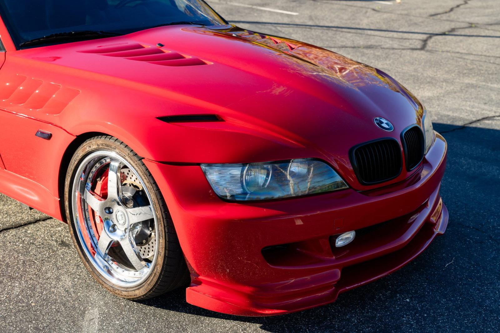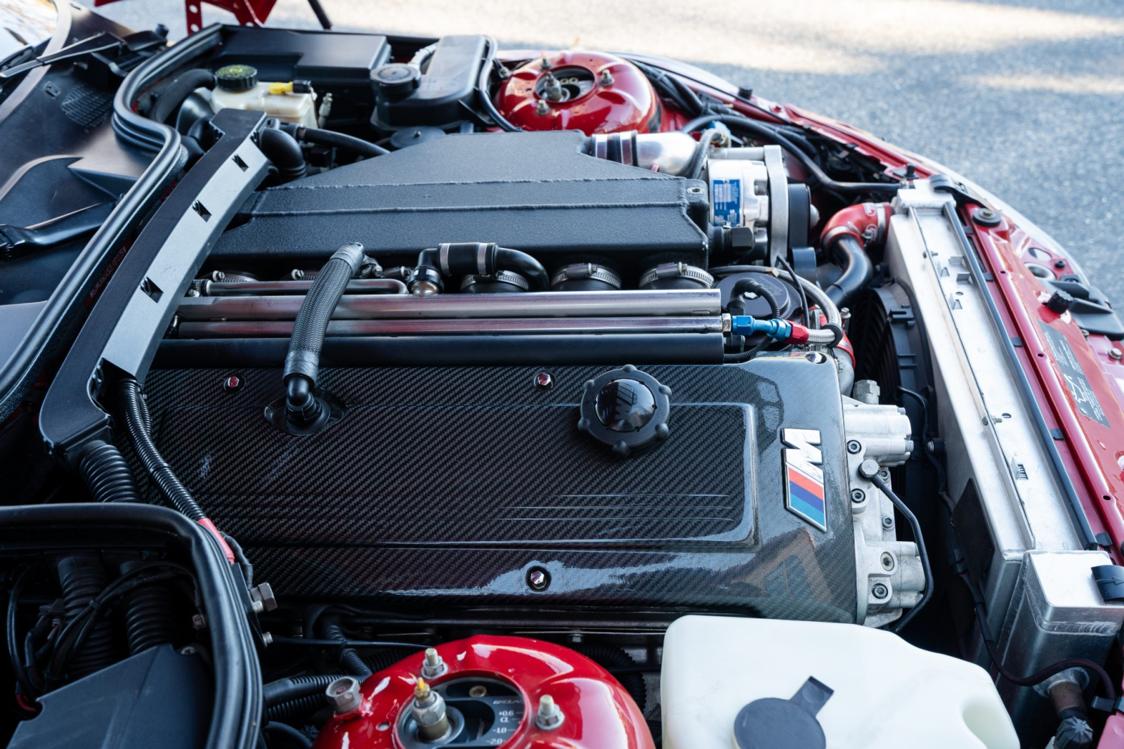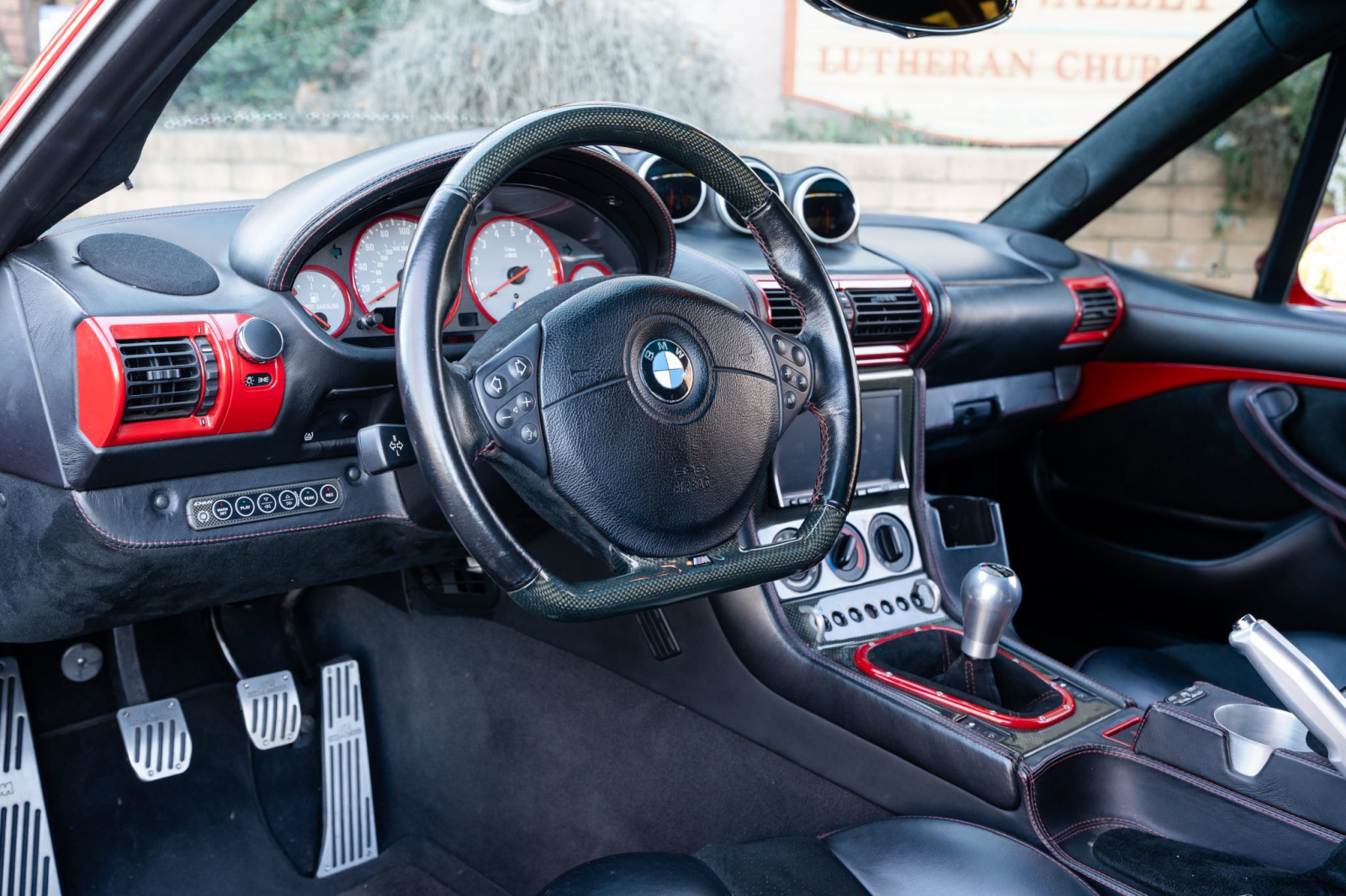 This 2002 BMW M Coupe was modified between 2010 and 2012 by VAC Motorsports, who built its 700+ horsepower S54 inline-six with their Stage 3 cylinder head, camshafts, coated bearings, throttle bodies, oil pump, injectors, and pulleys. The engine also uses Arrow connecting rods, CP forged pistons, and a VFEngineering Stage 2 supercharger kit along with Supersprint headers, high-flow catalytic converters, and uprated cooling components, and it is linked to a five-speed manual transmission and a limited-slip differential. Supporting modifications include KW V3 coilovers, Brembo brakes, HRE wheels, and a five-point roll bar, which was mounted in the reupholstered interior along with a custom sound system and more as described below. The body was fitted with a Hartge carbon-fiber hood and Hamann front and rear spoilers before it was refinished in its factory shade of Imola Red. Since completion of the build, the car has been featured in multiple BMW-centric magazines and was awarded “Best Modified BMW” in the 2012 Bimmerfest Battle of the Bimmers. The car was purchased by the seller’s brother in 2004, and ownership later passed to the seller. Dubbed “EVIL BMR”, this M Coupe now has 81k miles and is offered in California with a clean Carfax report, a magazine feature and award, and an Arizona title.