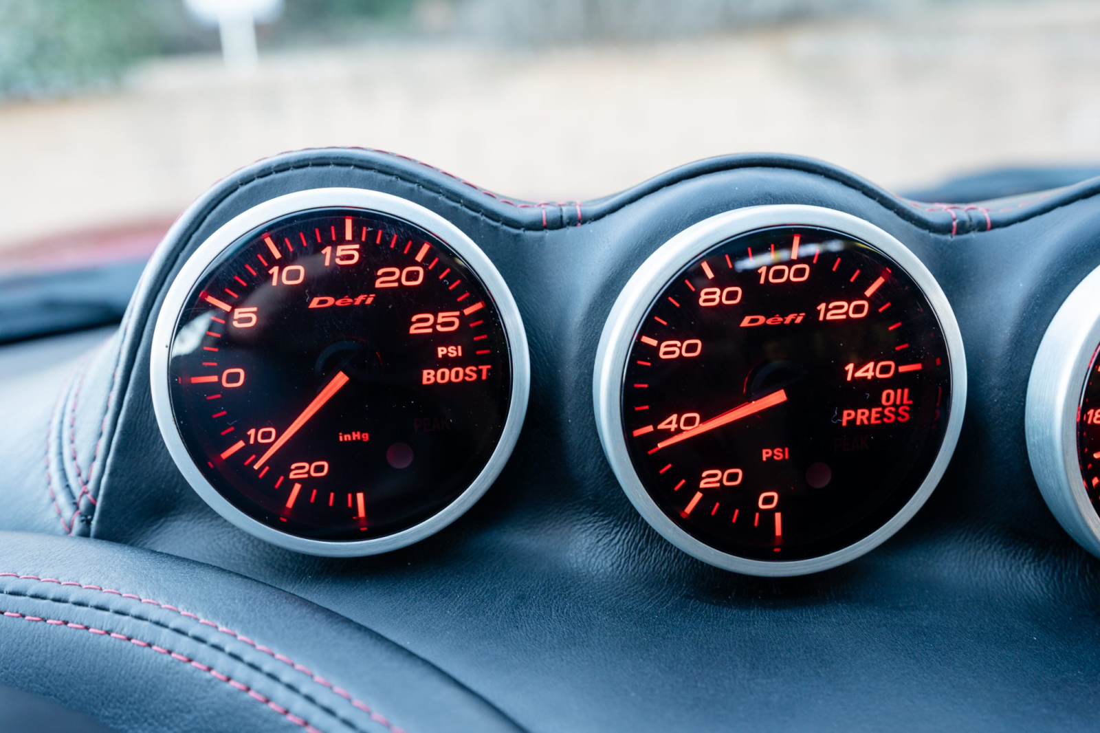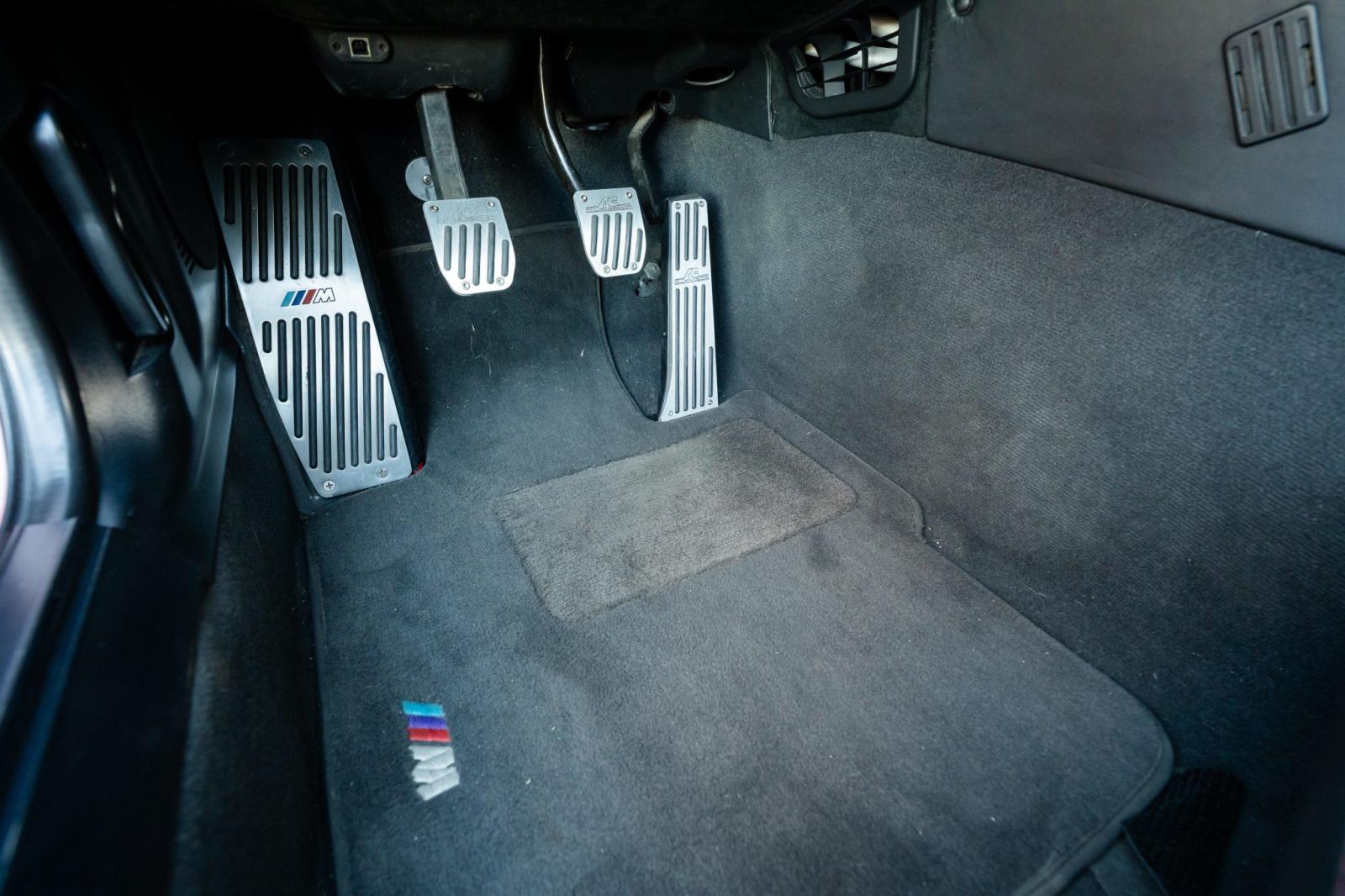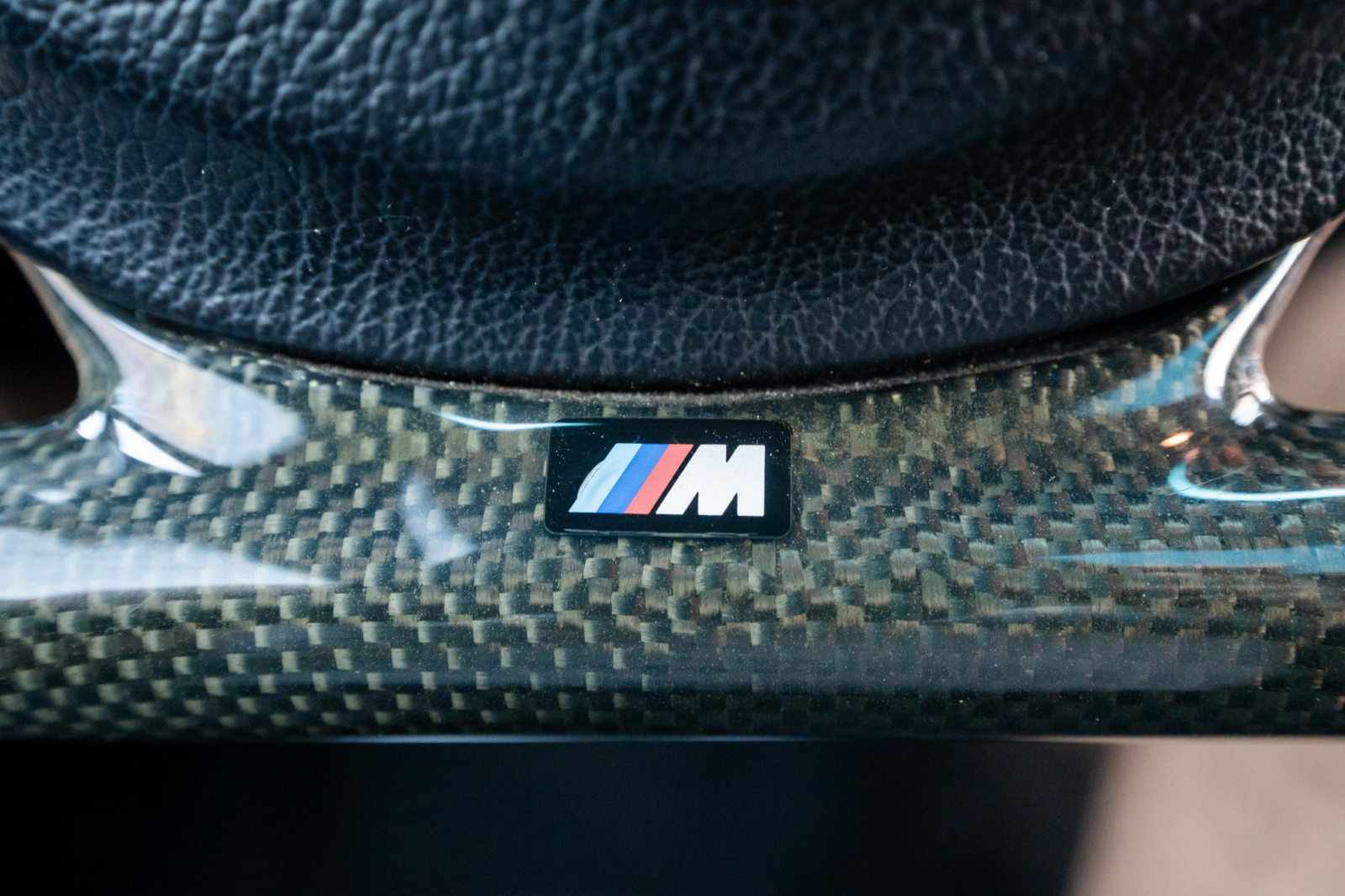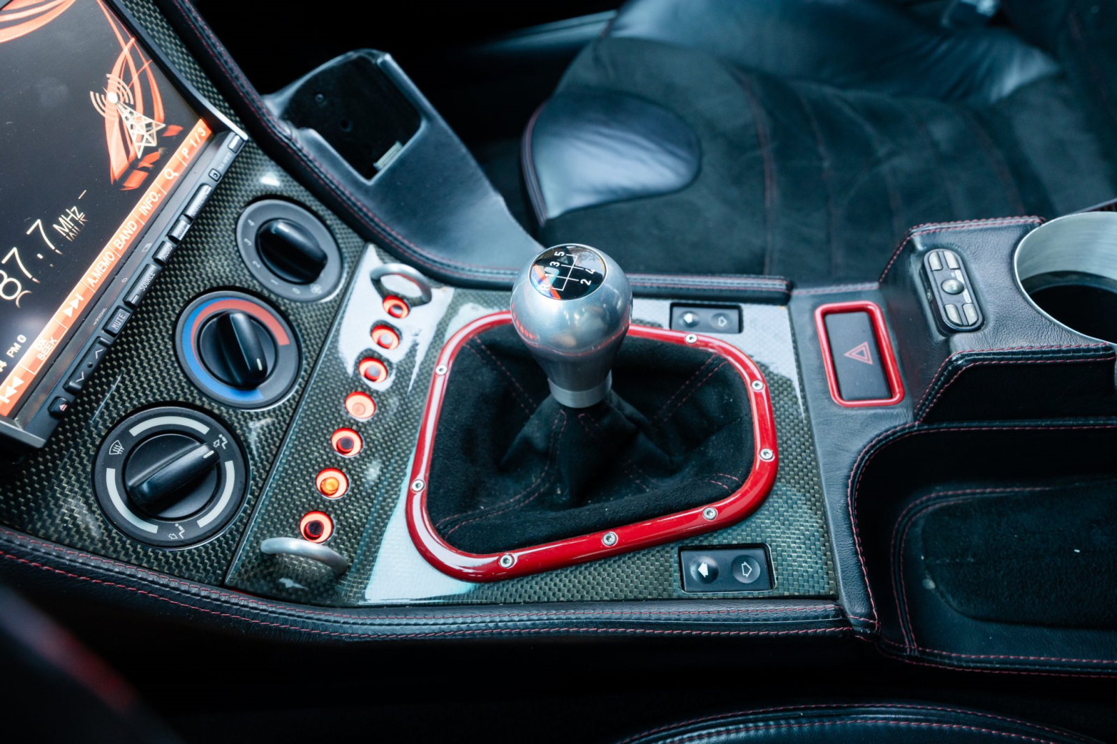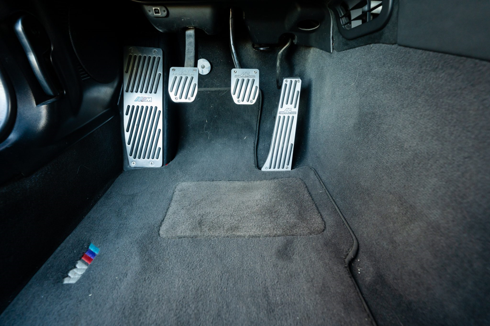 The flat-bottom carbon/leather wheel was added along with Defi gauges, a polished shift knob and handbrake lever, and AC Schnitzer pedals. The digital odometer indicates 81k miles.