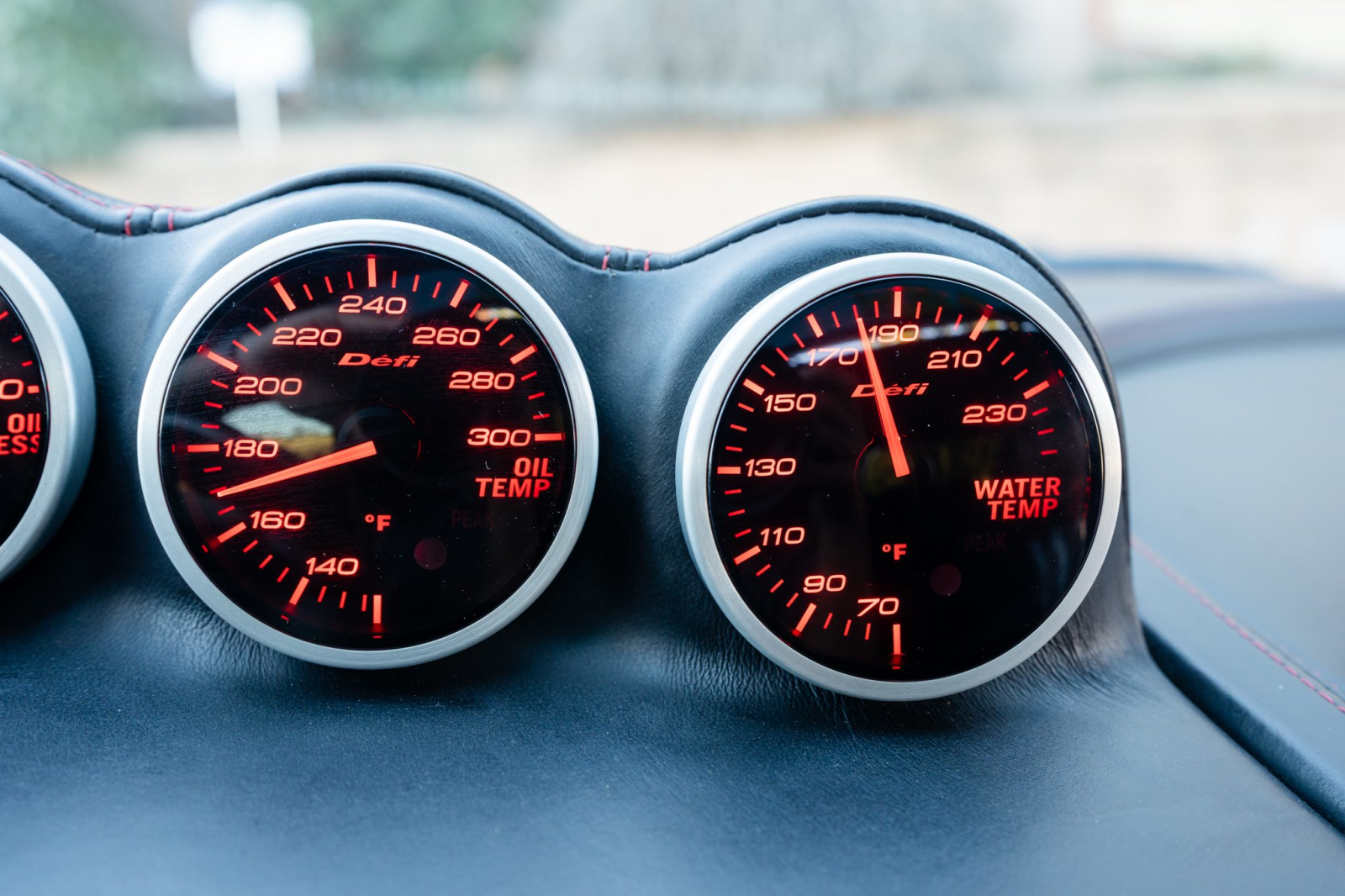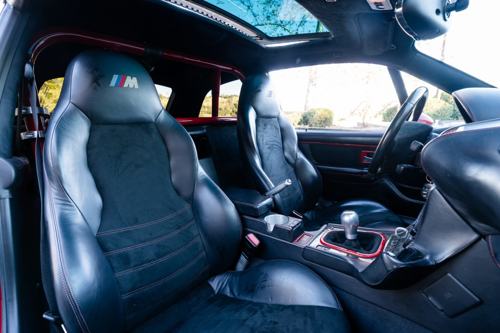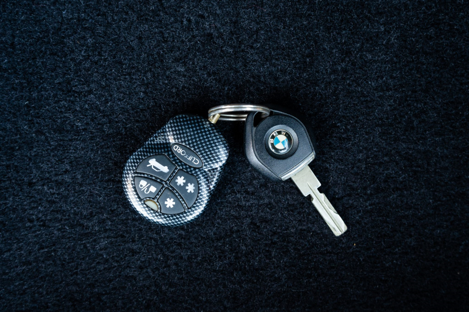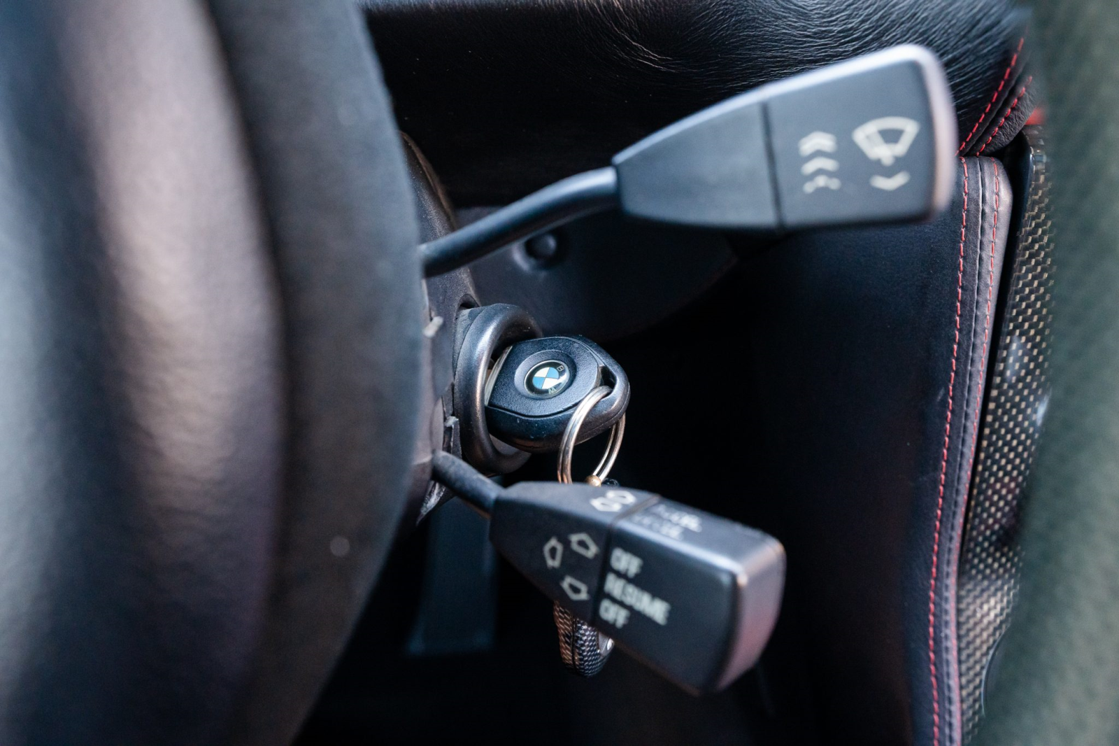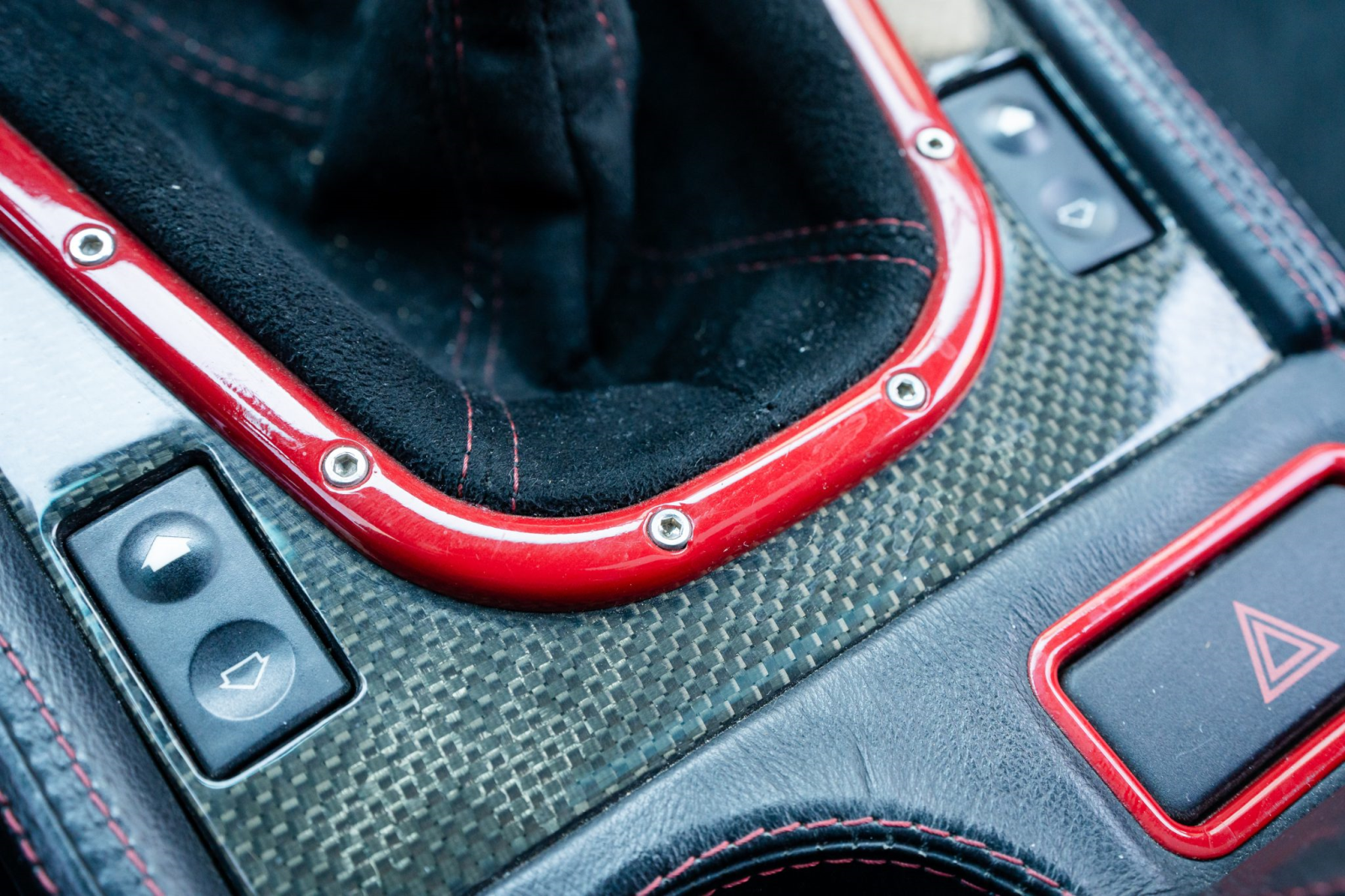 The flat-bottom carbon/leather wheel was added along with Defi gauges, a polished shift knob and handbrake lever, and AC Schnitzer pedals. The digital odometer indicates 81k miles.