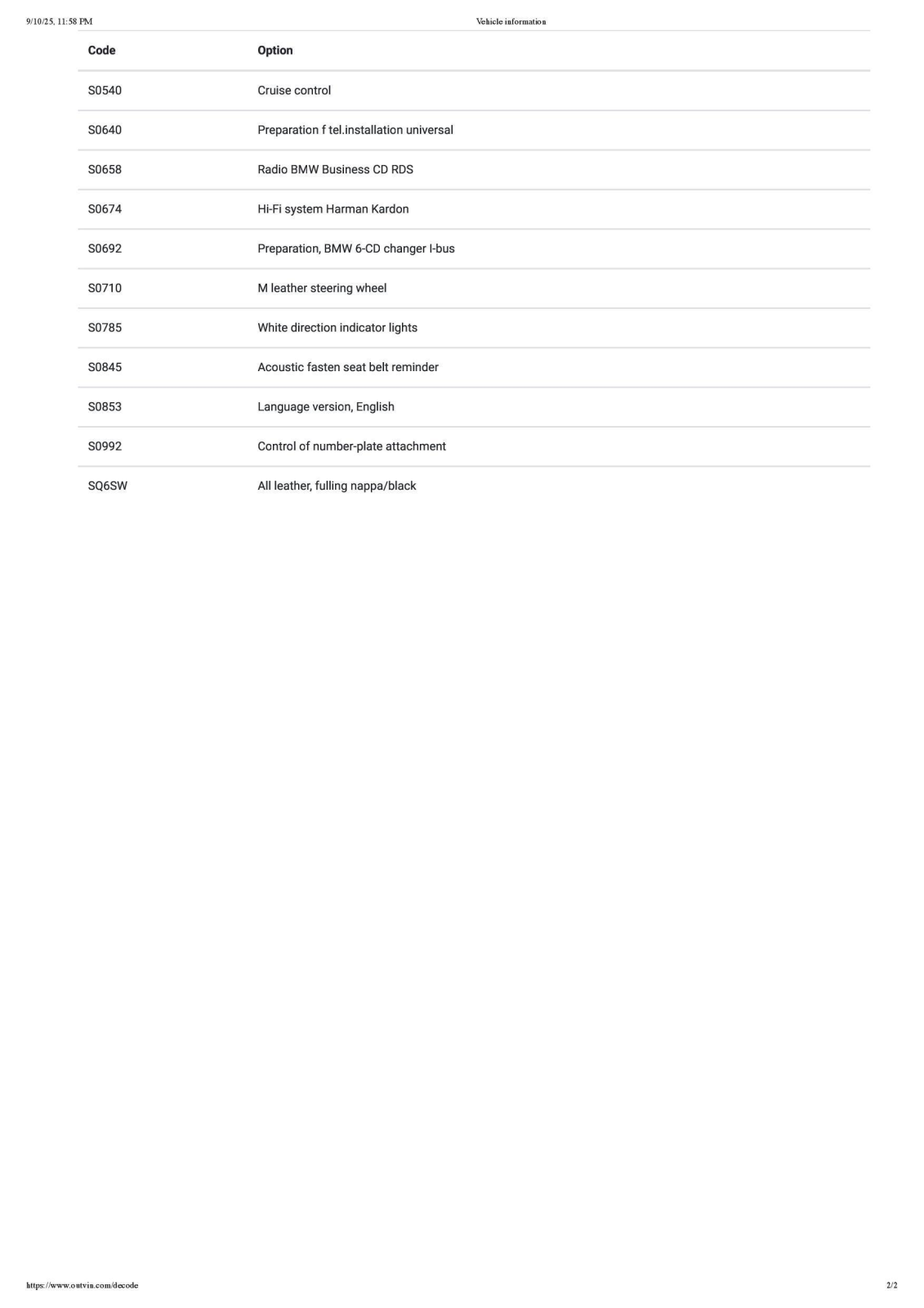 - According to the build sheet provided in the gallery, notable factory equipment includes 17-inch Style 40 wheels, a limited-slip differential, a power sunroof, Nappa leather upholstery, heated seats, and a Harman/Kardon sound system.