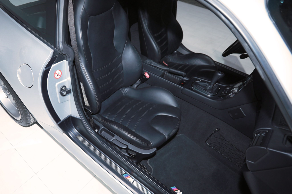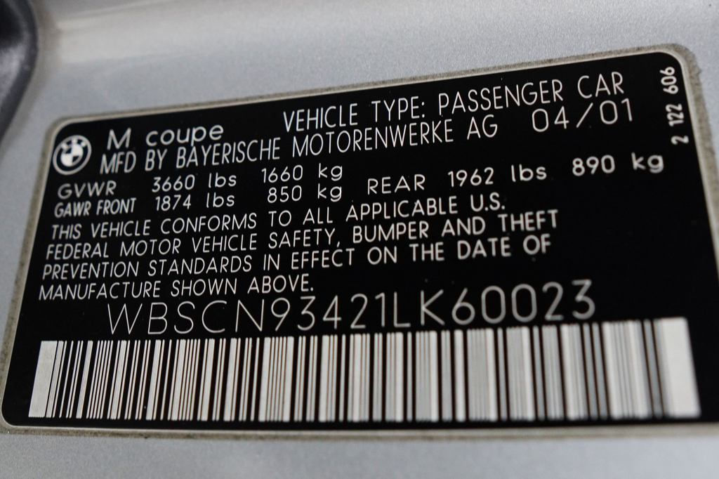 This M Coupe is one of 74 finished in Titanium Silver Metallic (354) over Black Nappa leather for the North American market for the model year. It is outfitted with a sunroof, front fender vents, a rear window wiper, and quad exhaust outlets.