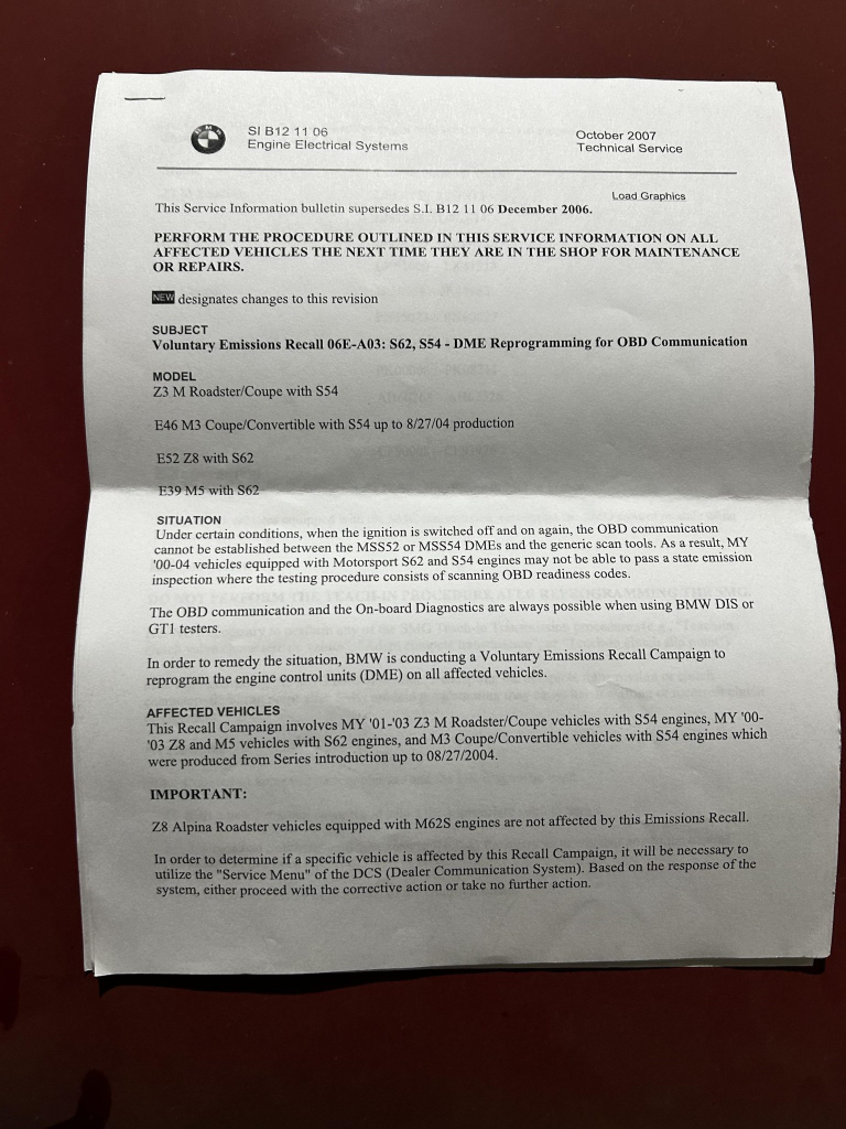The 3.2-liter S54B32 inline-six features double-VANOS variable valve timing and a Siemens MSS 54 engine management control system. Output was factory rated at 315 horsepower and 258 lb-ft of torque.