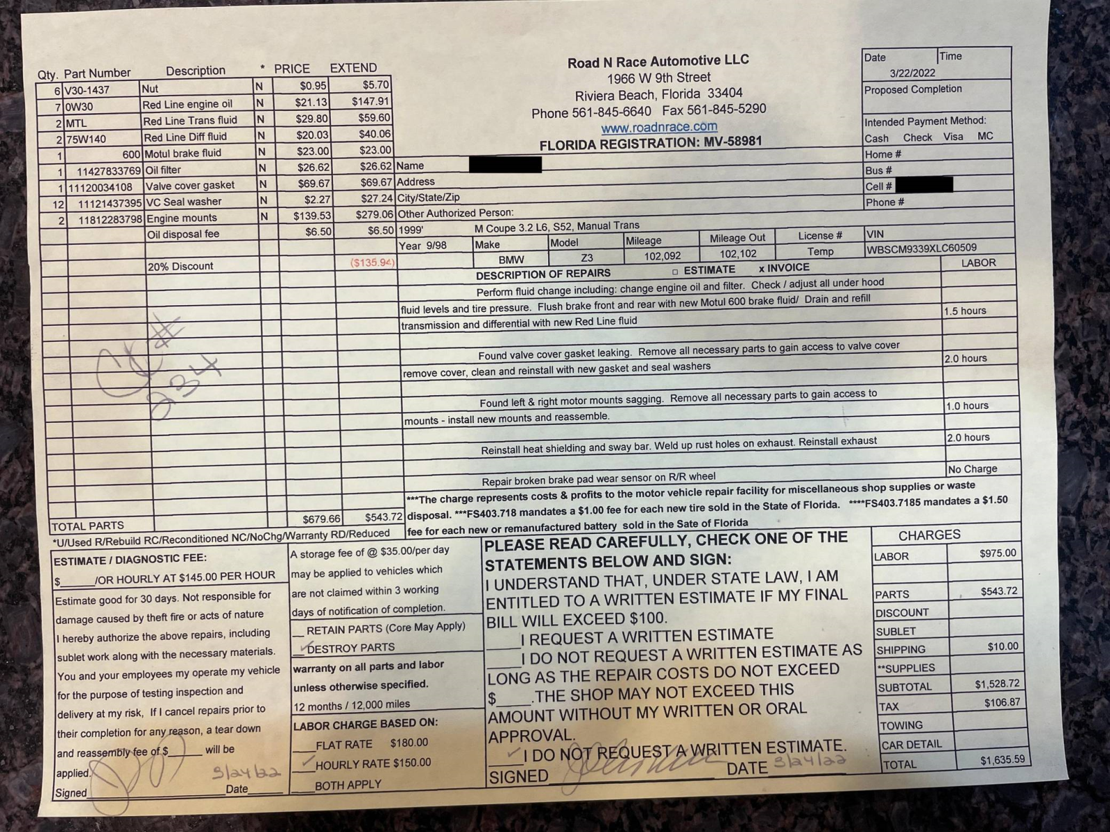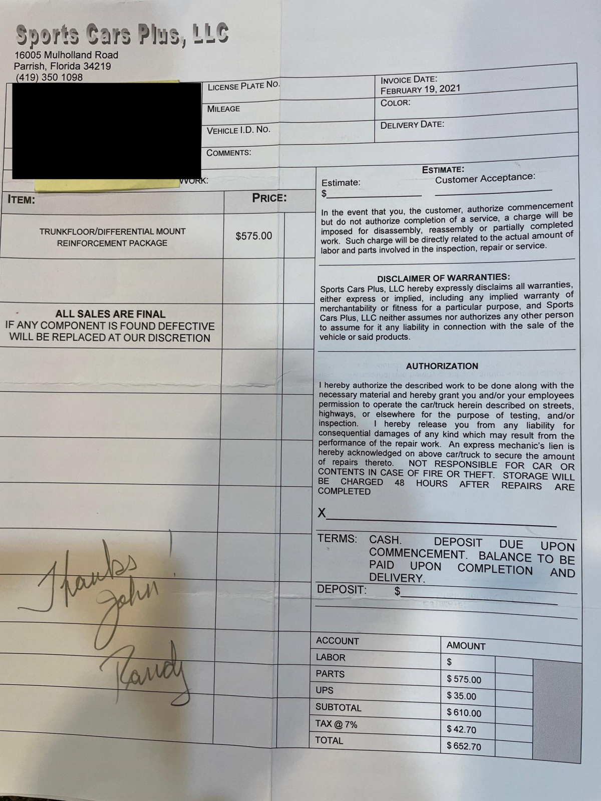 - March 2022: Engine oil and filter changed, brake fluid flushed, transmission fluid and differential fluid changed, valve cover gasket and engine mounts replaced, exhaust repaired