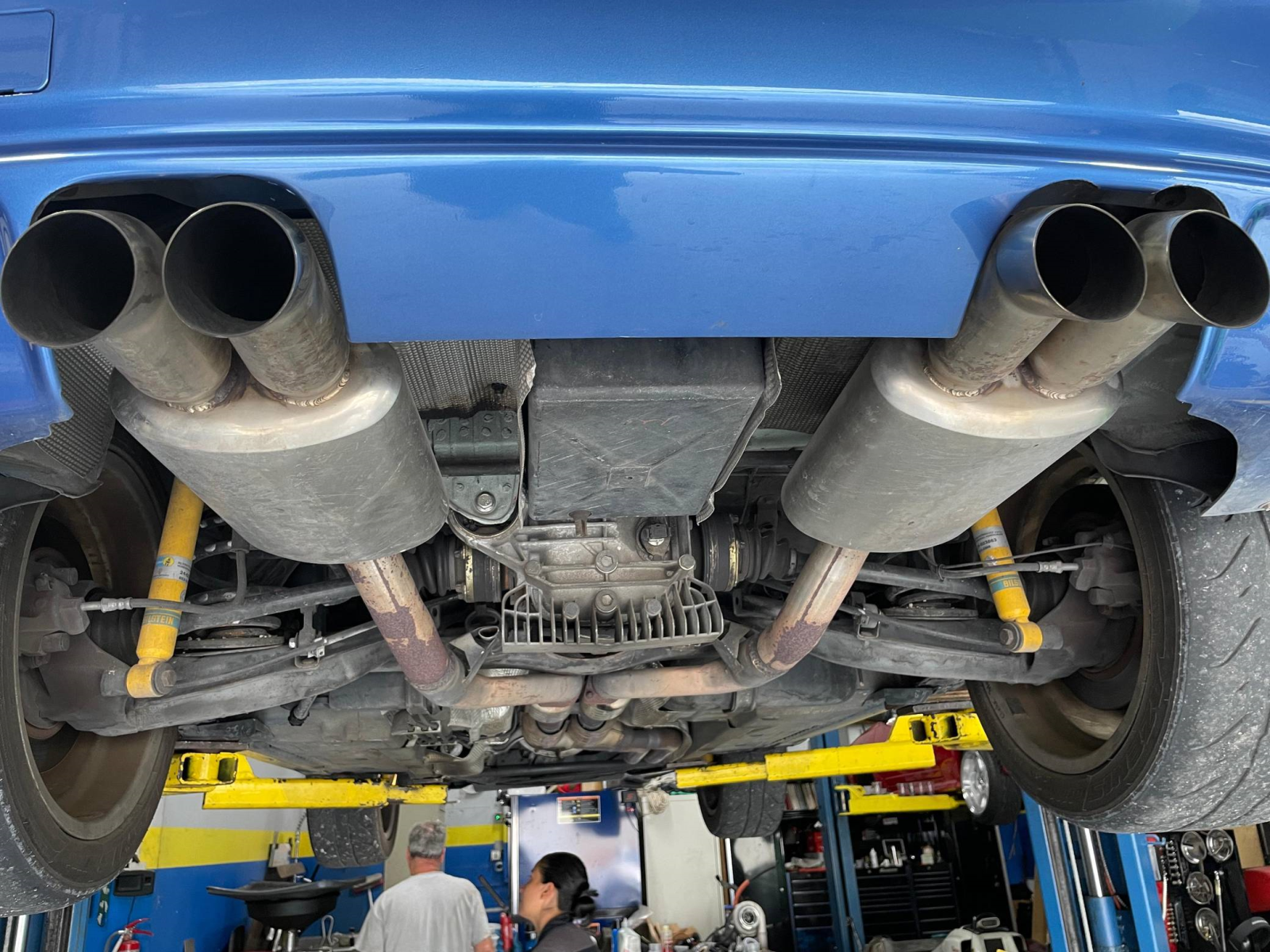 - Notable modifications reported by the seller include a Randy Forbes rear subframe reinforcement kit, Bilstein shocks and struts, a Dinan cold air intake, and an aftermarket cat-back exhaust.