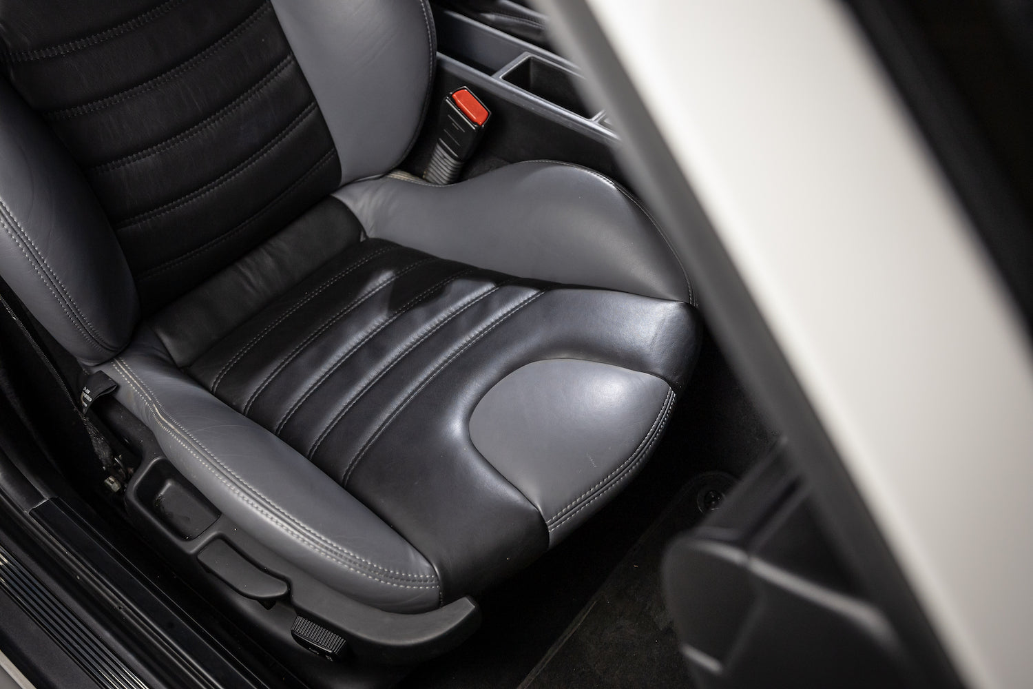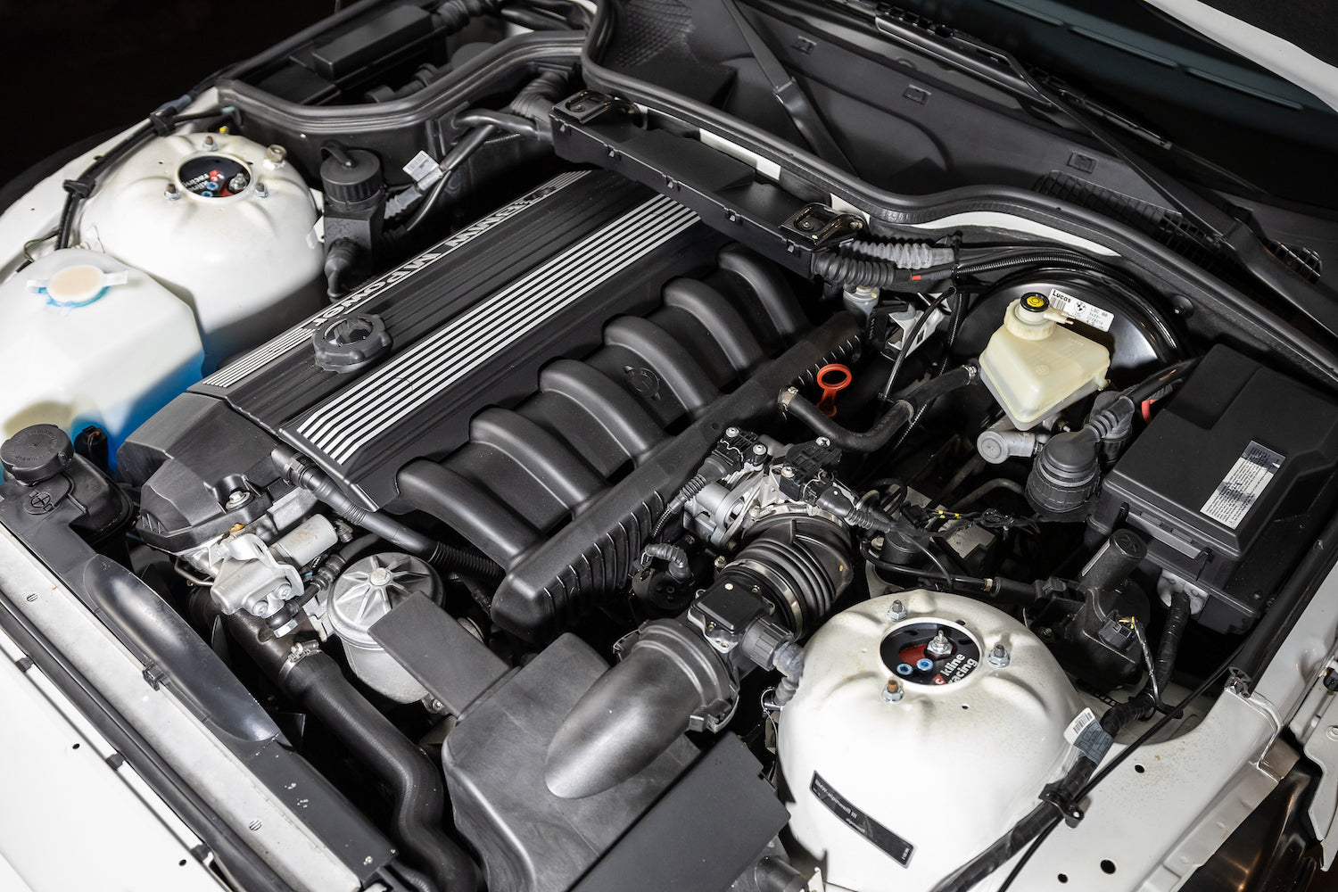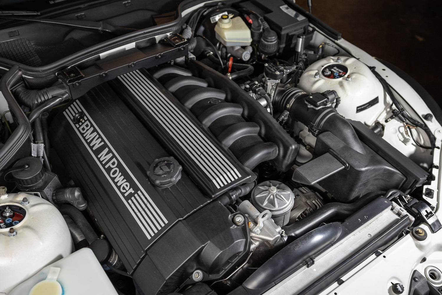 This particular example has been meticulously well-kept and remained with its original owner until last year. Finished in Alpine White over a Black & Grey leather interior, it is one of only three Clownshoes to come in this specification. It is also sports an incredibly rare option, Sunroof Delete, earning it another nickname, a “Slick-Top". Having gone only 57k miles since new, both the exterior & interior are exceptional. Under the second owner’s care, TC Kline double-adjustable coil-overs with adjustable camber plates and H&R front & rear sway bars were installed. The subframe was professionally dropped, cleaned and coated—addressing a common concern amongst the model. Cross-drilled brake rotors were fitted along with a stud conversion allowing for easier wheel changes.