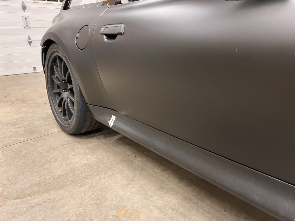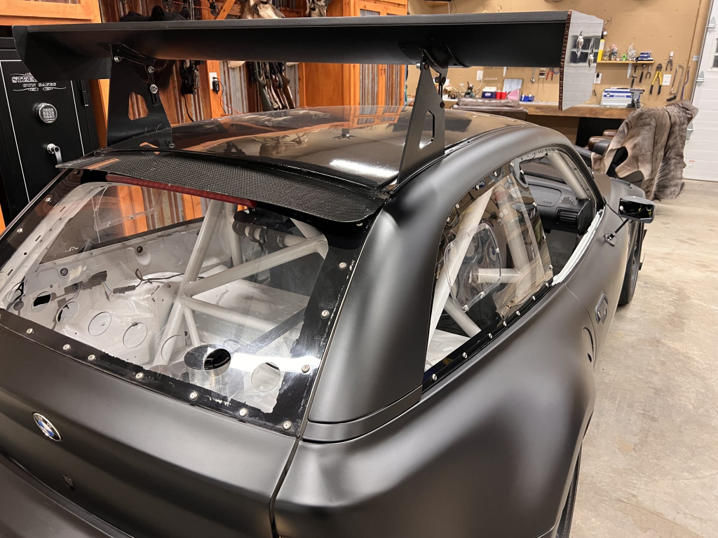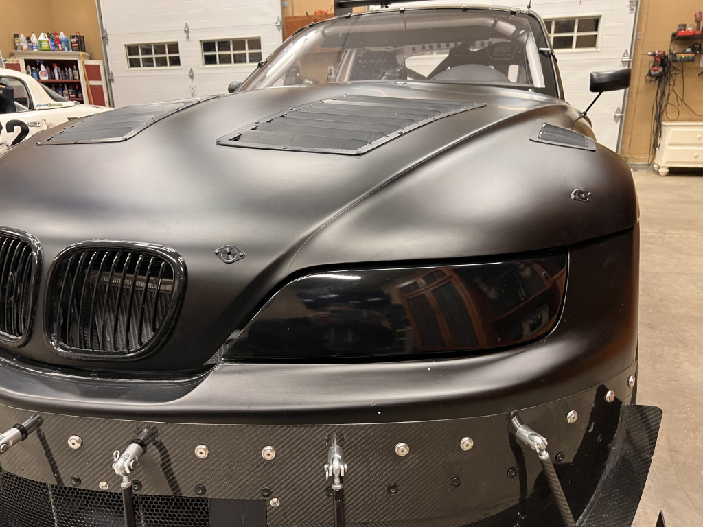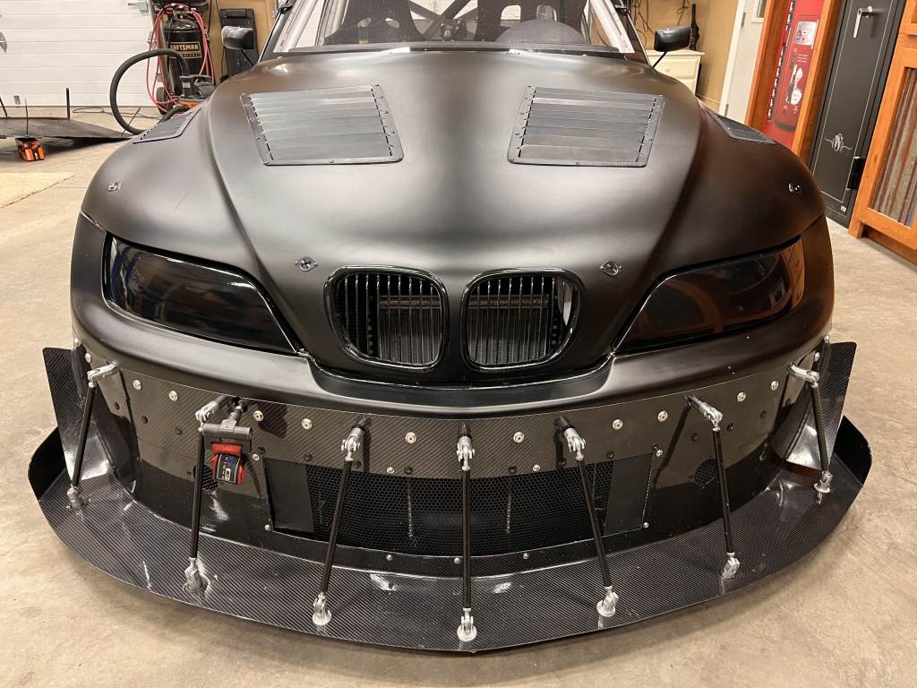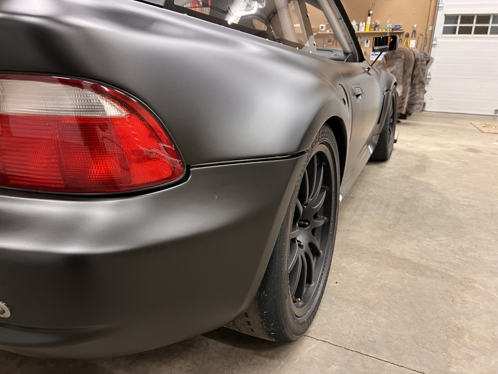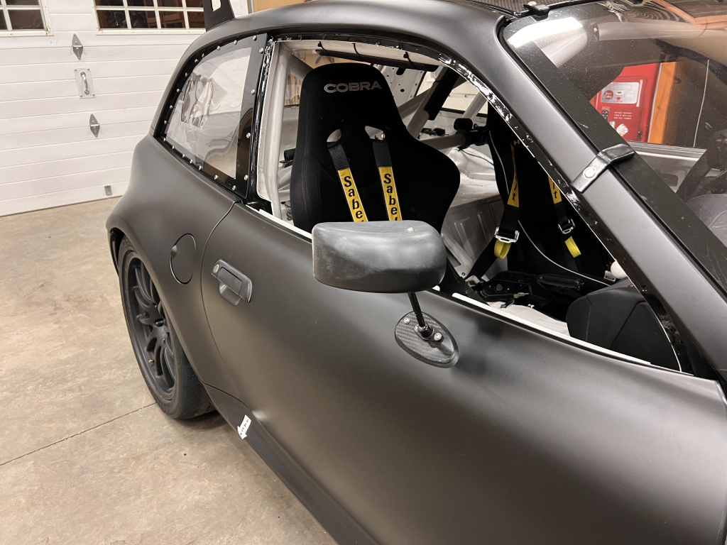 This 2001 BMW M Coupe was built into a track car by its previous owner. The chassis was stripped, stitch-welded, and fitted with carbon-fiber aerodynamic bodywork including a front splitter and rear wing in 2016. It rides on Team Dynamics Motorsport 18″ wheels and has Öhlins coilover suspension, AP Racing brake calipers, and a reinforced rear subframe. Race seats with harnesses are joined by a 12-point custom-fabricated roll cage, a Holley digital dashboard and ECU, and asteering wheel. The 427ci LS-based stroker V8 built by Horsepower Research of McKinney, Texas is fitted with a Dailey Engineering dry-sump oiling system along with a Callies CompStar crankshaft and connecting rods, and it was rebuilt following the seller’s acquisition. The car was also wrapped in matt-black vinyl, Hoosier tires were mounted, and a replacement clutch was fitted for the Tremec T56 six-speed manual transmission, along with a replacement steering wheel, 80 lb/hr injectors, starter, OMP race seat, and both harnesses. Acquired by the seller on BaT in January 2025, this track-prepared M Coupe is now offered at no reserve with spare components, records, and a Maryland title in the seller’s name.
