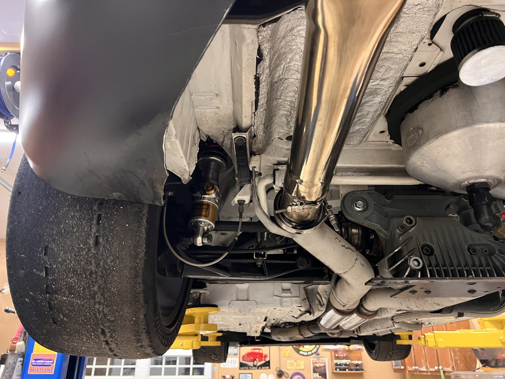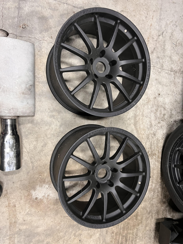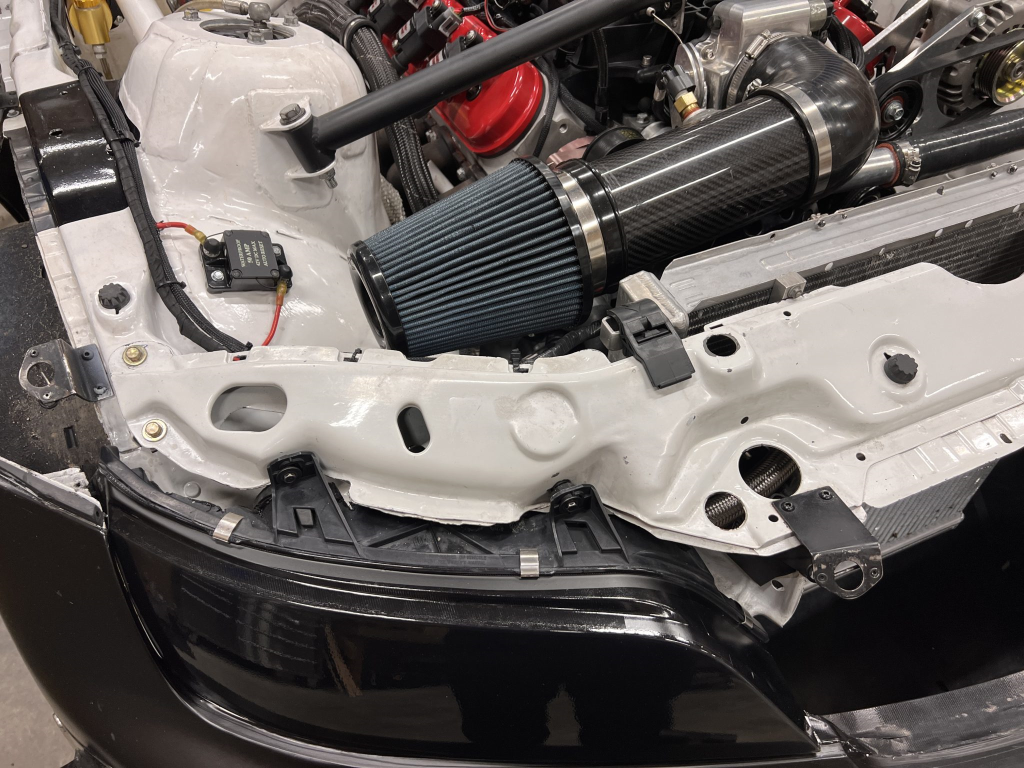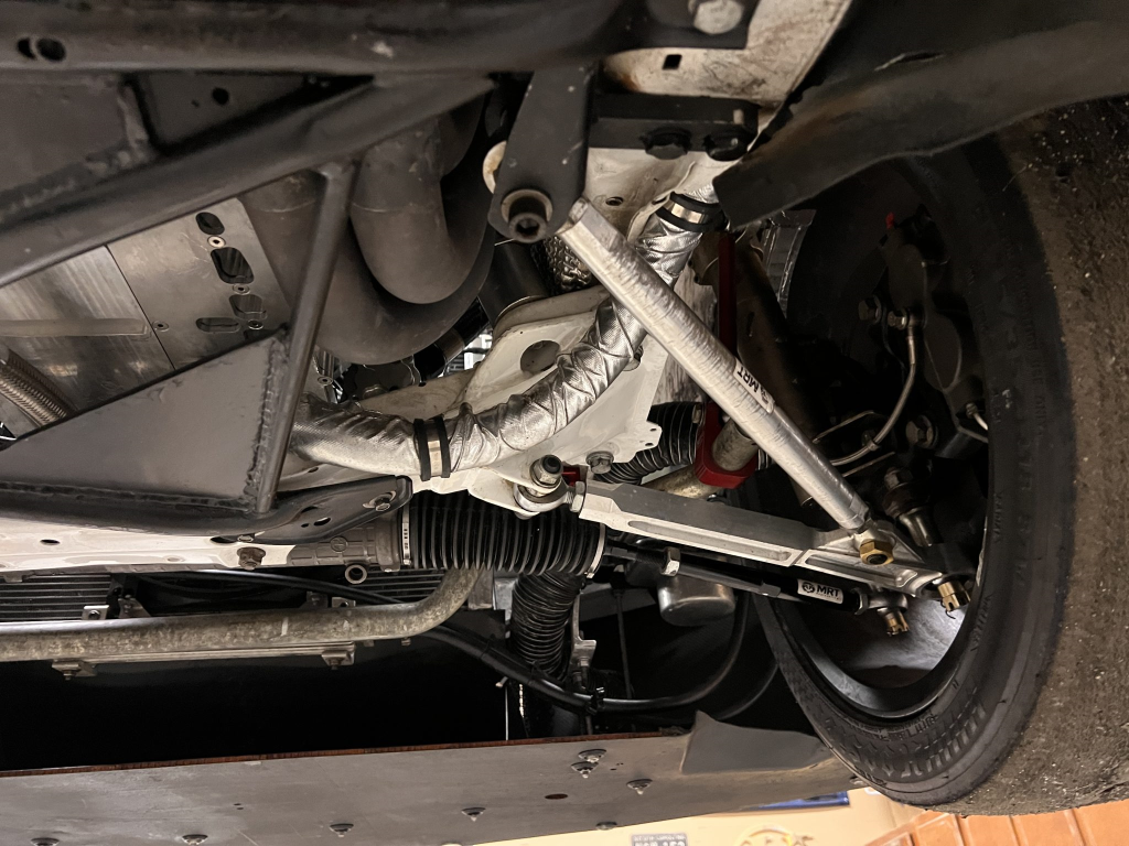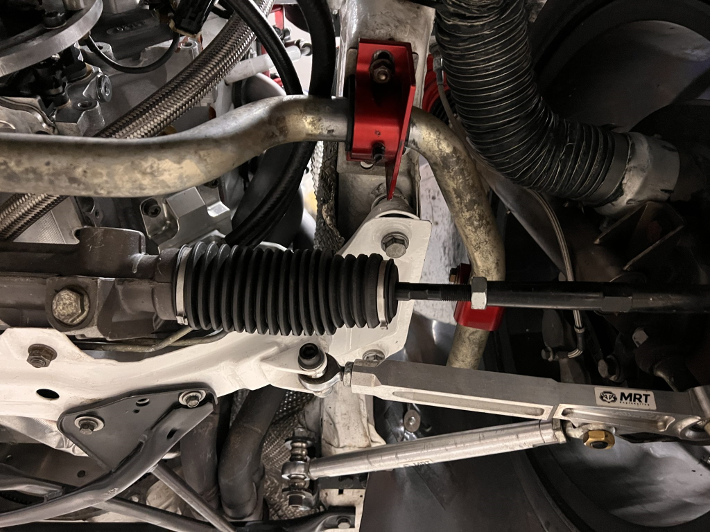 Team Dynamics Motorsport 18″ wheels are secured over Turner Motorsport 86mm studs and have Hoosier rubber mounted. Four-piston AP Racing calipers and 332x32mm rotors are mounted at each corner and utilize stainless-steel lines, a Chase Bays adjustable bias valve, TMS cooling plates, and Wilwood pads. The brake booster has been removed. Reinforements have been added to the front and rear sway bar mounts, the front and rear subframes, the front X-brace, and rear trailing arms. The rear trailing arms and subframe were modified to accommodate fully adjustable DTM-style spherical bushings, while the front subframe was revised to accommodate an MRT Engineering front suspension kit comprised of a solid mount control arm bushing with spherical bushings throughout and billet aluminum control arms and tie rods with bump steer correction. TMS solid aluminum rear subframe bushings have been installed along with a Rogue Engineering differential cover with TMS solid aluminum bushings.