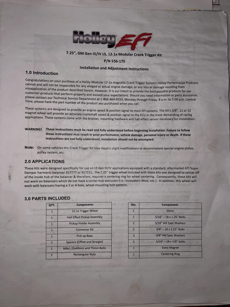 - Holley crank trigger kit with hall effect sensor