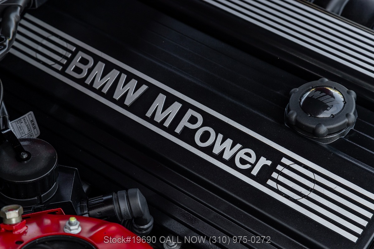 Inside, the cabin features heated M-Sport seats upholstered in Nappa leather, along with air conditioning, cruise control, and power amenities. The three-spoke M-Tech steering wheel provides a proper connection to the road, reflecting BMW’s performance-focused approach during this era. Additional features include four-wheel disc brakes, an AM/FM radio with Harman Kardon audio, center console, glove box, tool kit, and “M” badging throughout.
