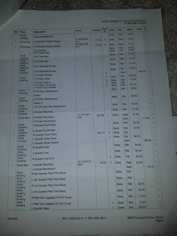 In doing so they messed up the Right floor/rails underside and left some dings in the rear right fender / left door. Insurance covered the damage and it was taken to BMW collision center for $8700 in work.